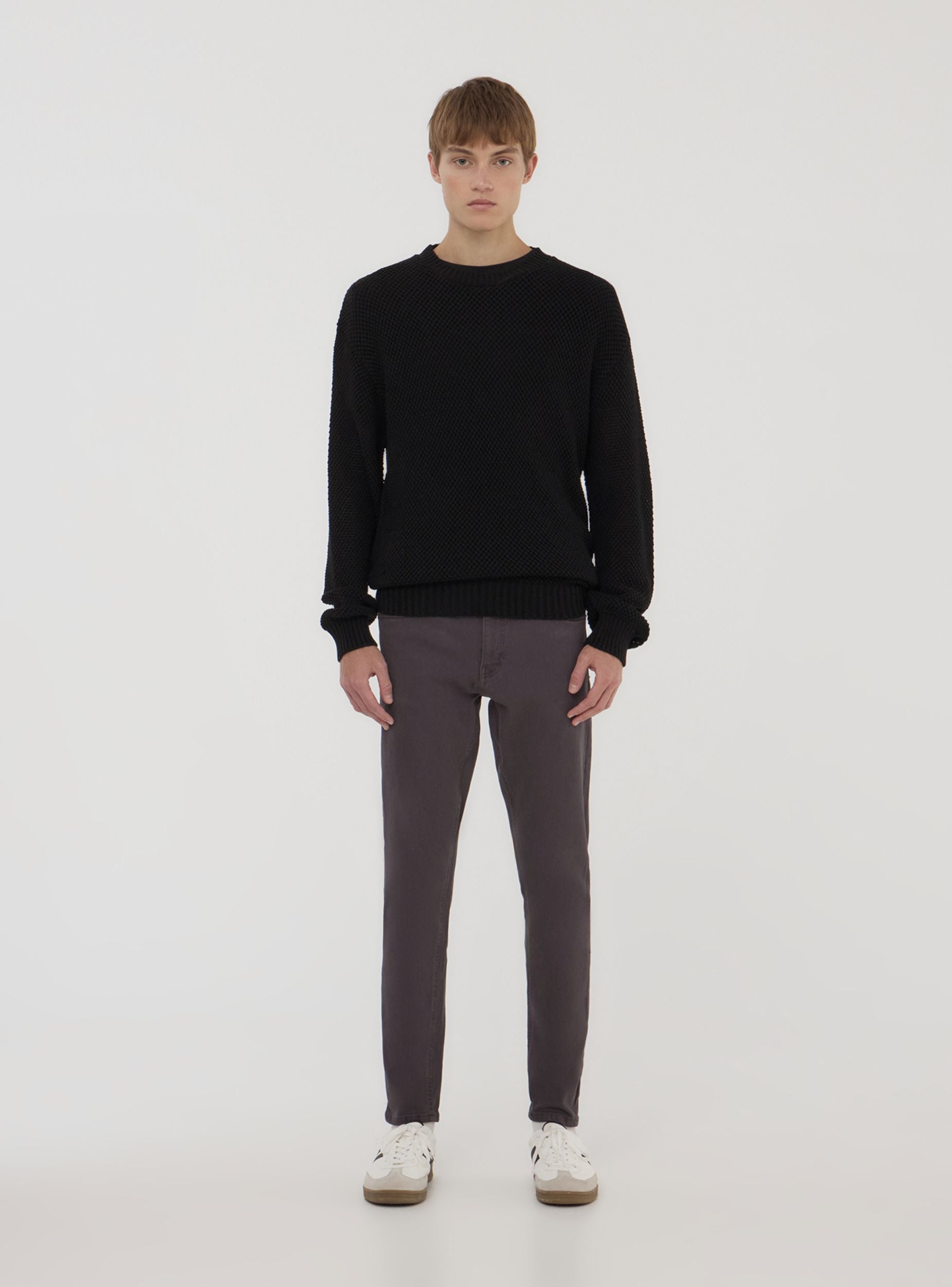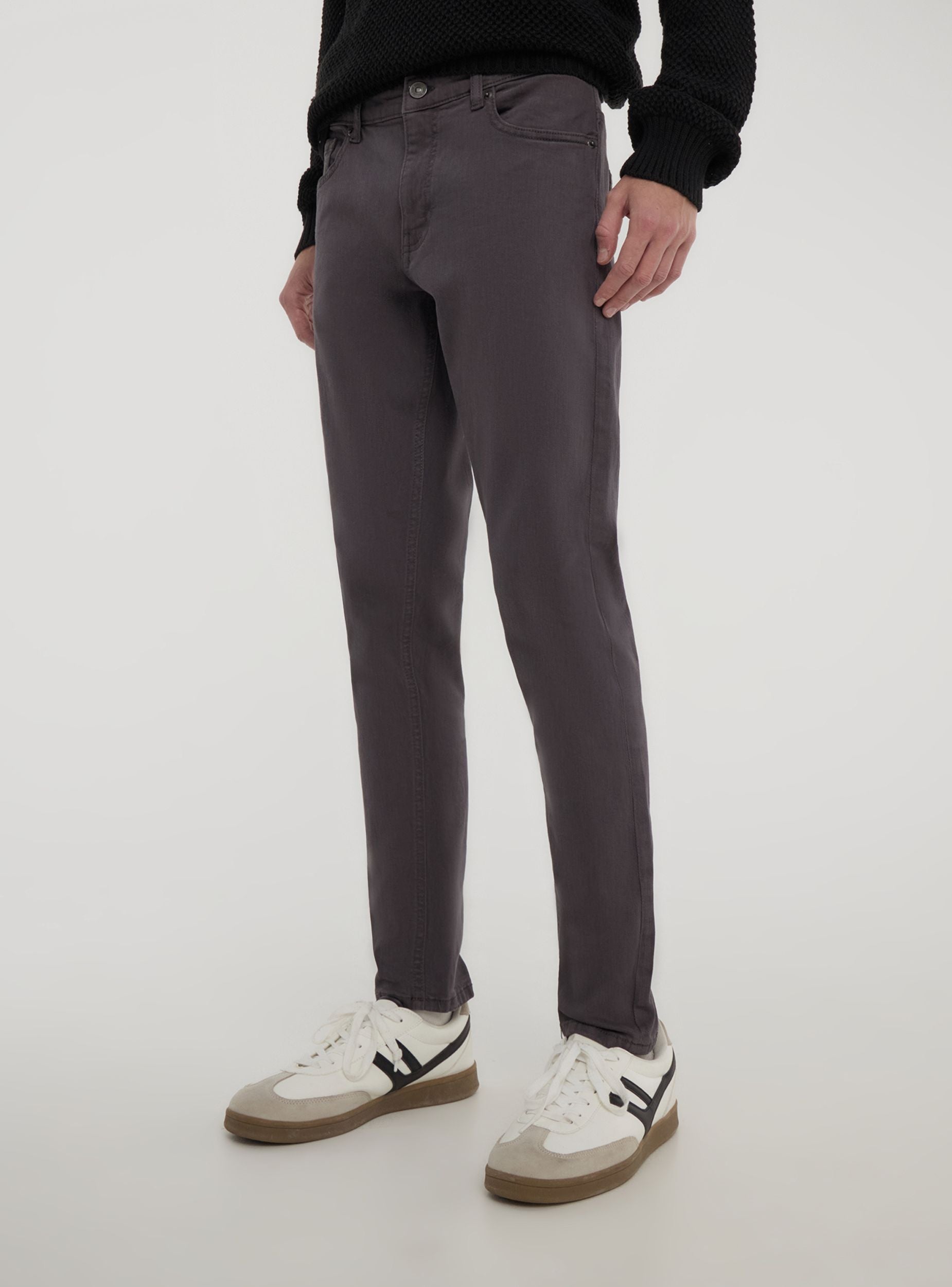 Pakiranje se sastoji od 2 muška hlača, model 5 džepova, zatvaranje na gumb i patentni zatvarač, petlje za remen. Tkanina jednobojna, elastična. Prilagodljiv kroj.
