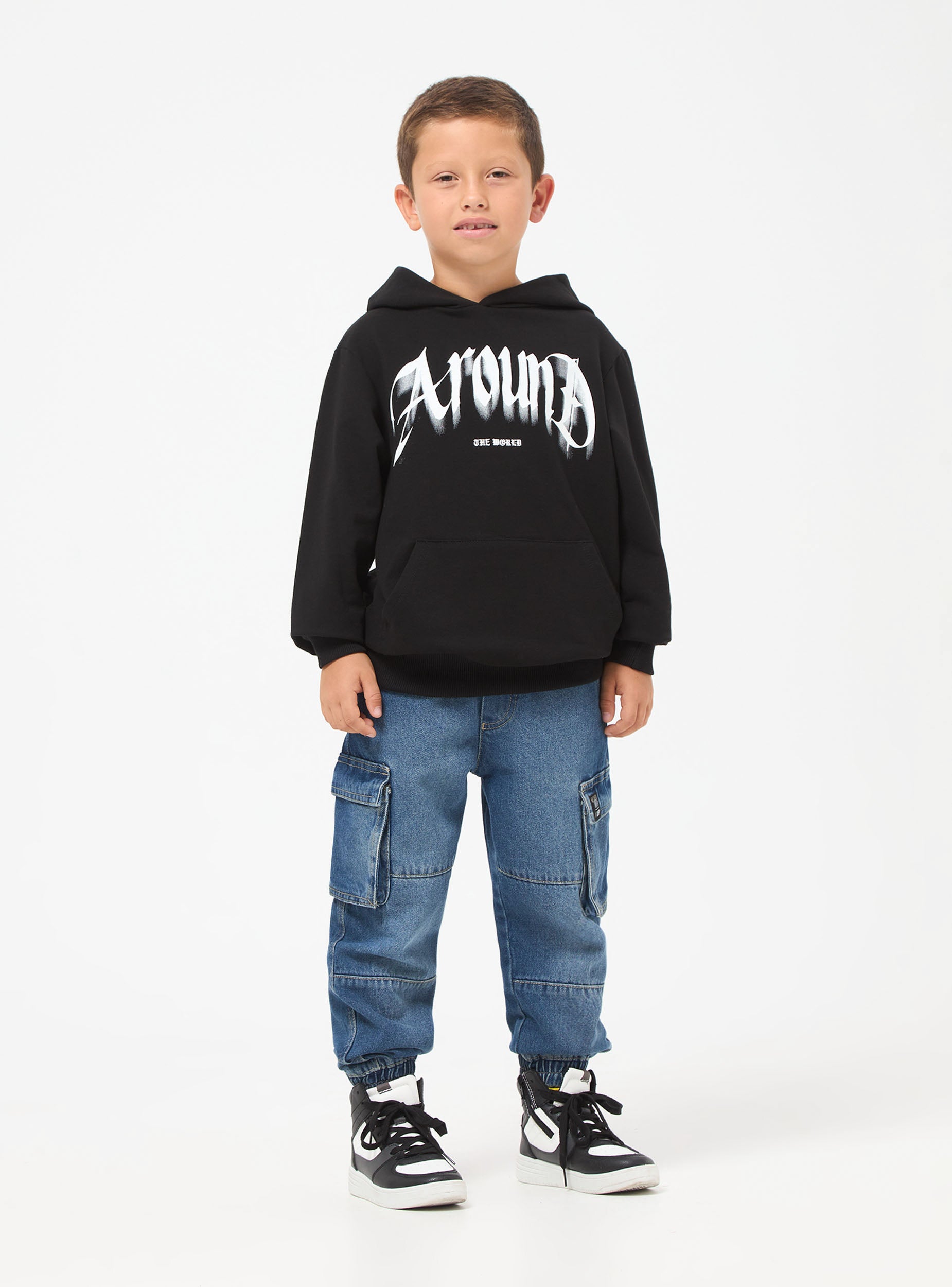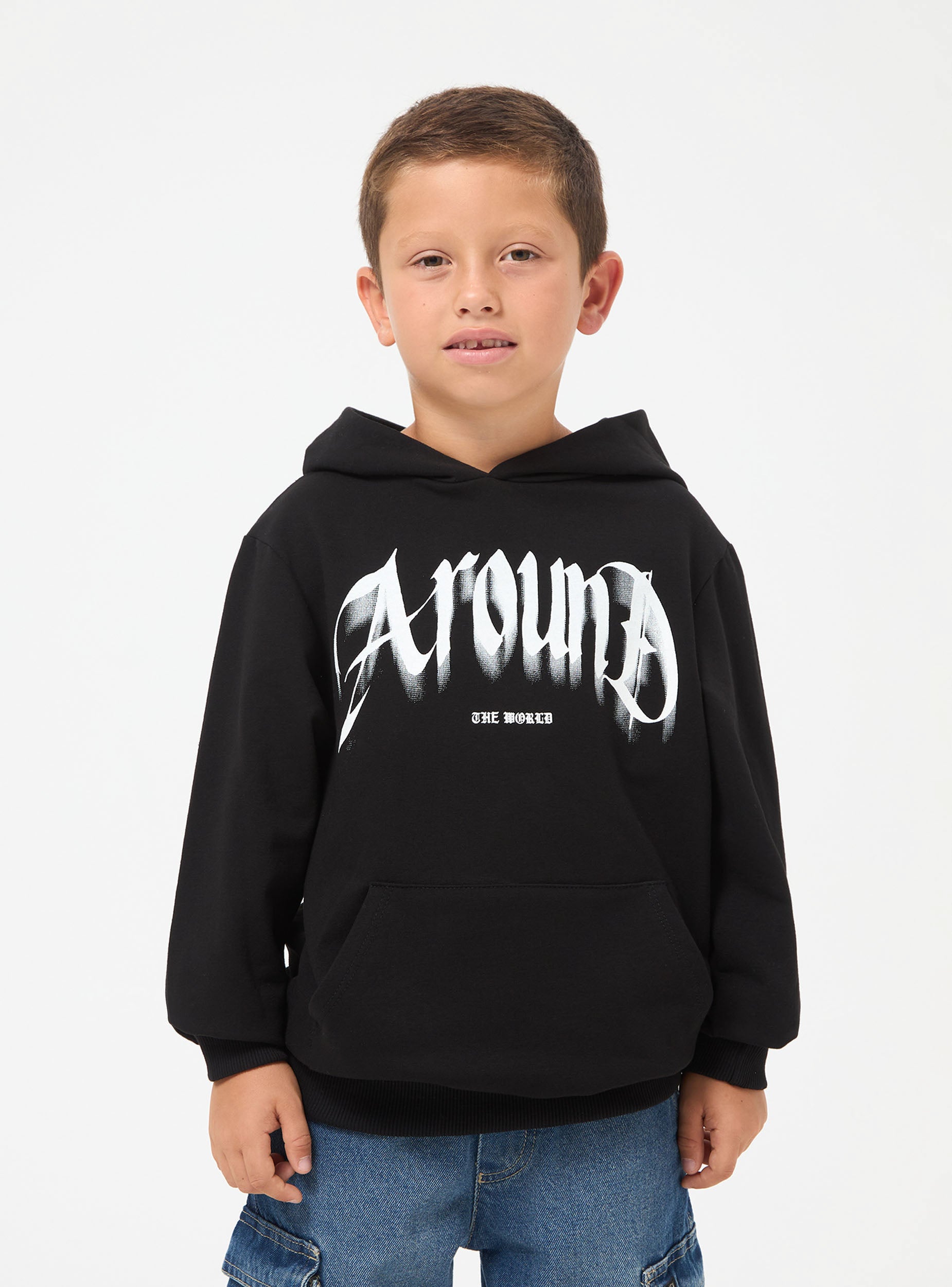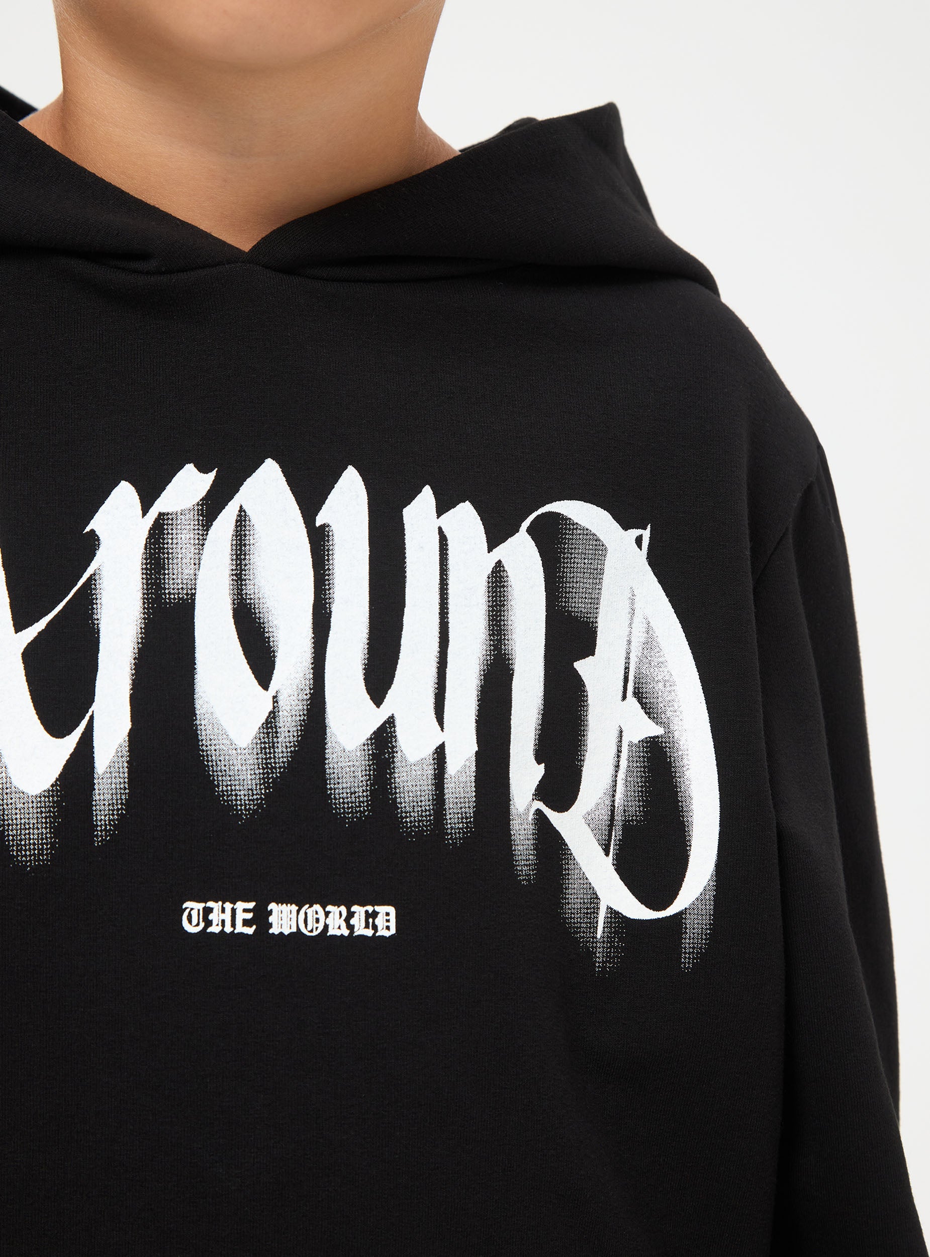 Felpa da bambino , modello chiuso con cappuccio con scritta gotica stampata sul petto
