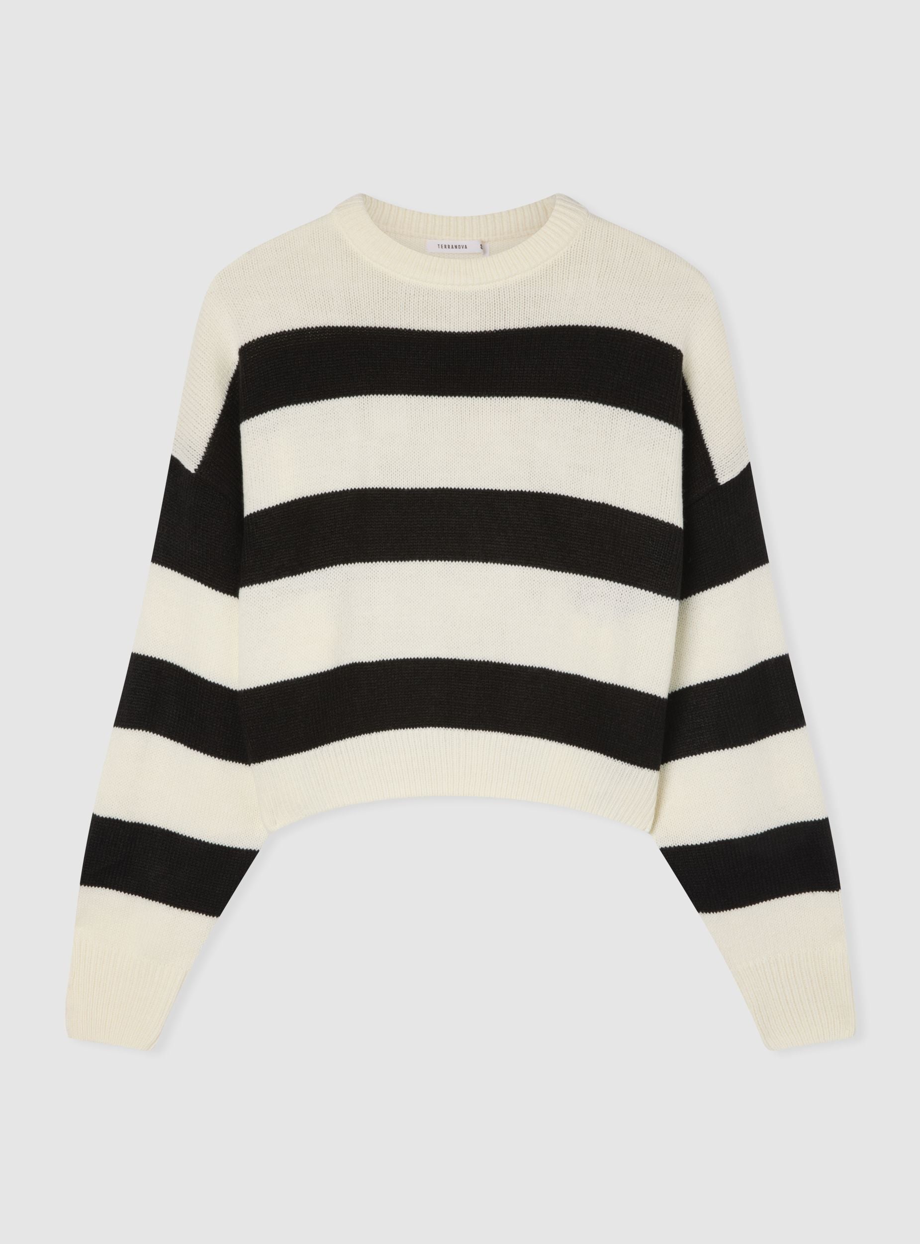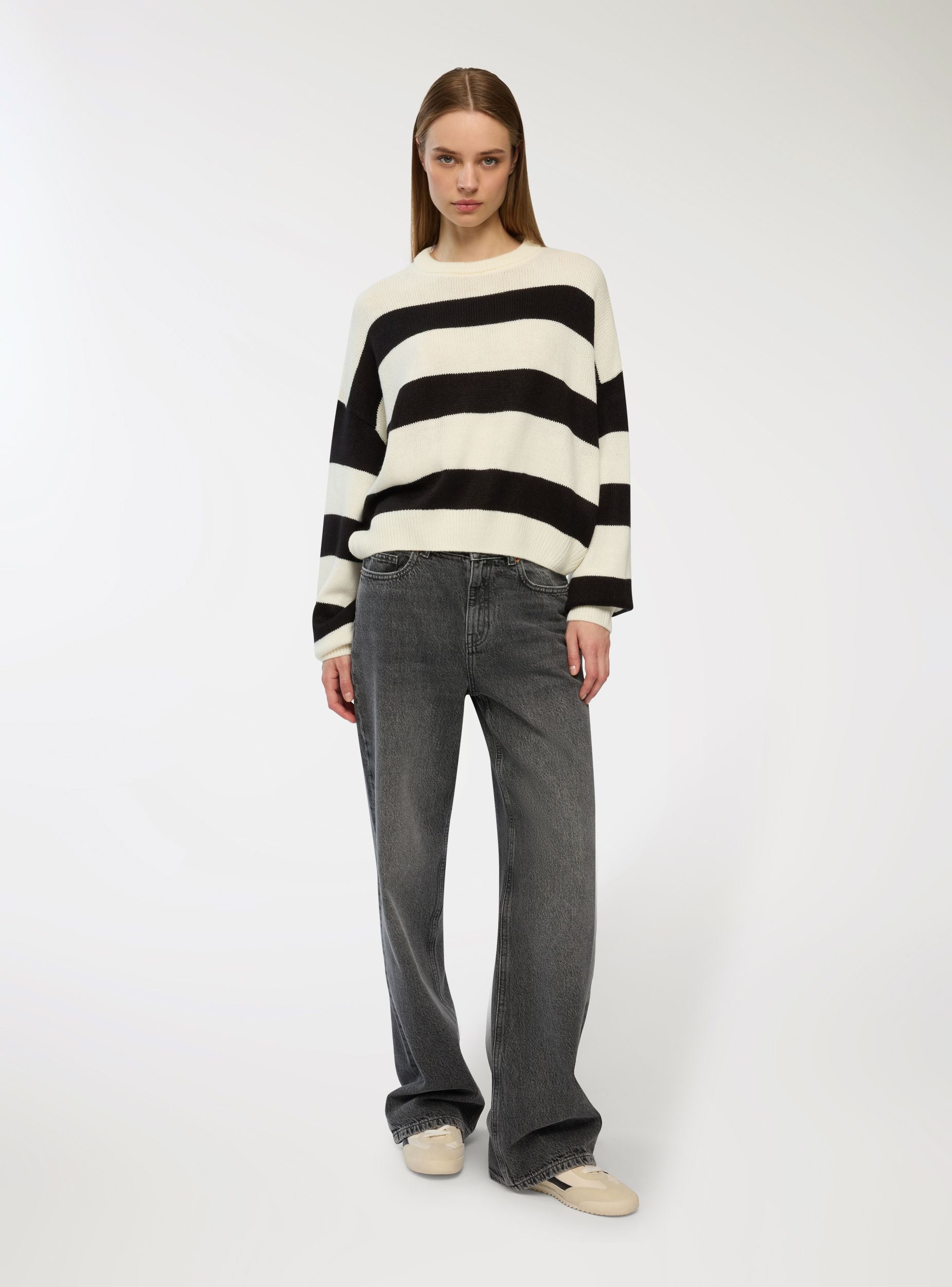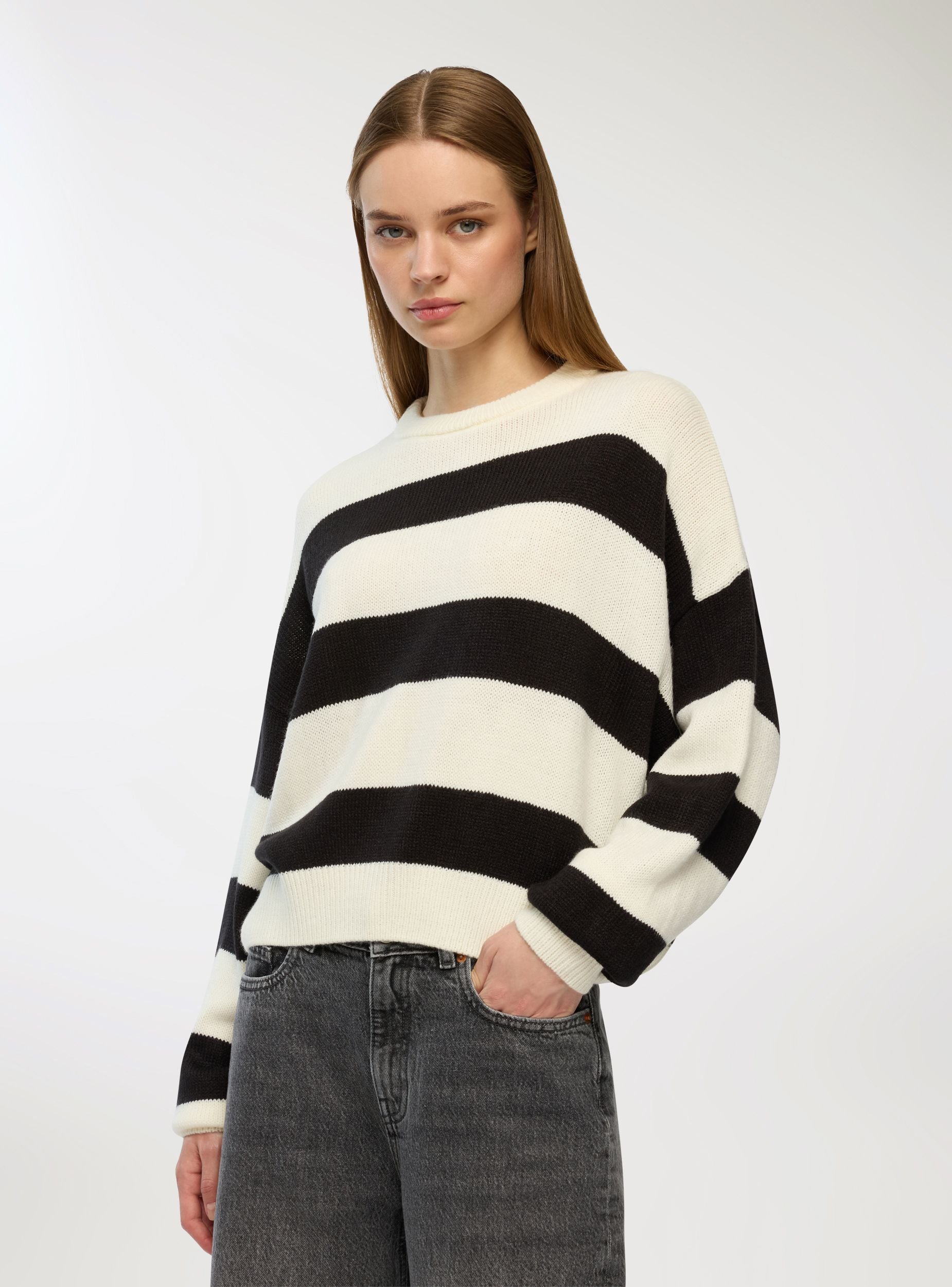 Ženska majica s prugastim dizajnom, idealna za ležeran i moderan izgled. Savršena za kombiniranje s trapericama ili hlačama u jednobojnoj boji, ova kratka majica nudi jedinstven dodir stila. Širok kroj osigurava udobnost i slobodu kretanja, čineći je pogodnom za opuštene dane ili neformalne izlaske. Svestran komad koji se ističe svojim privlačnim dizajnom.
