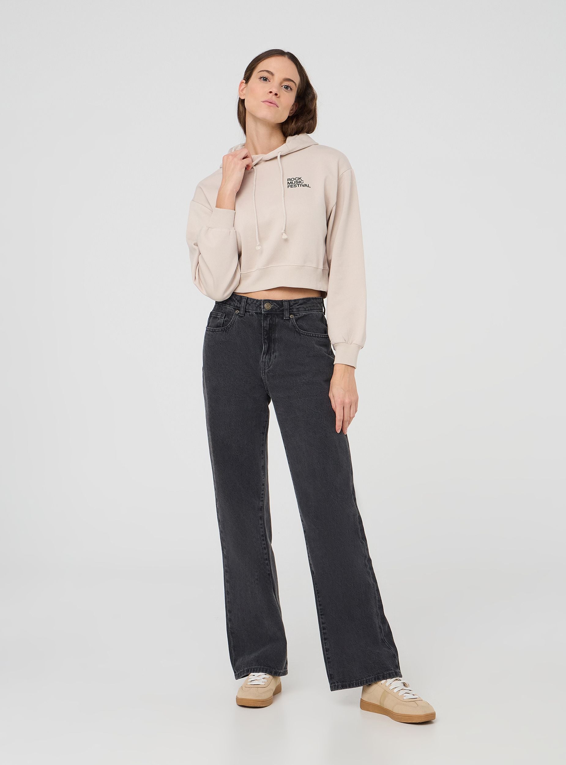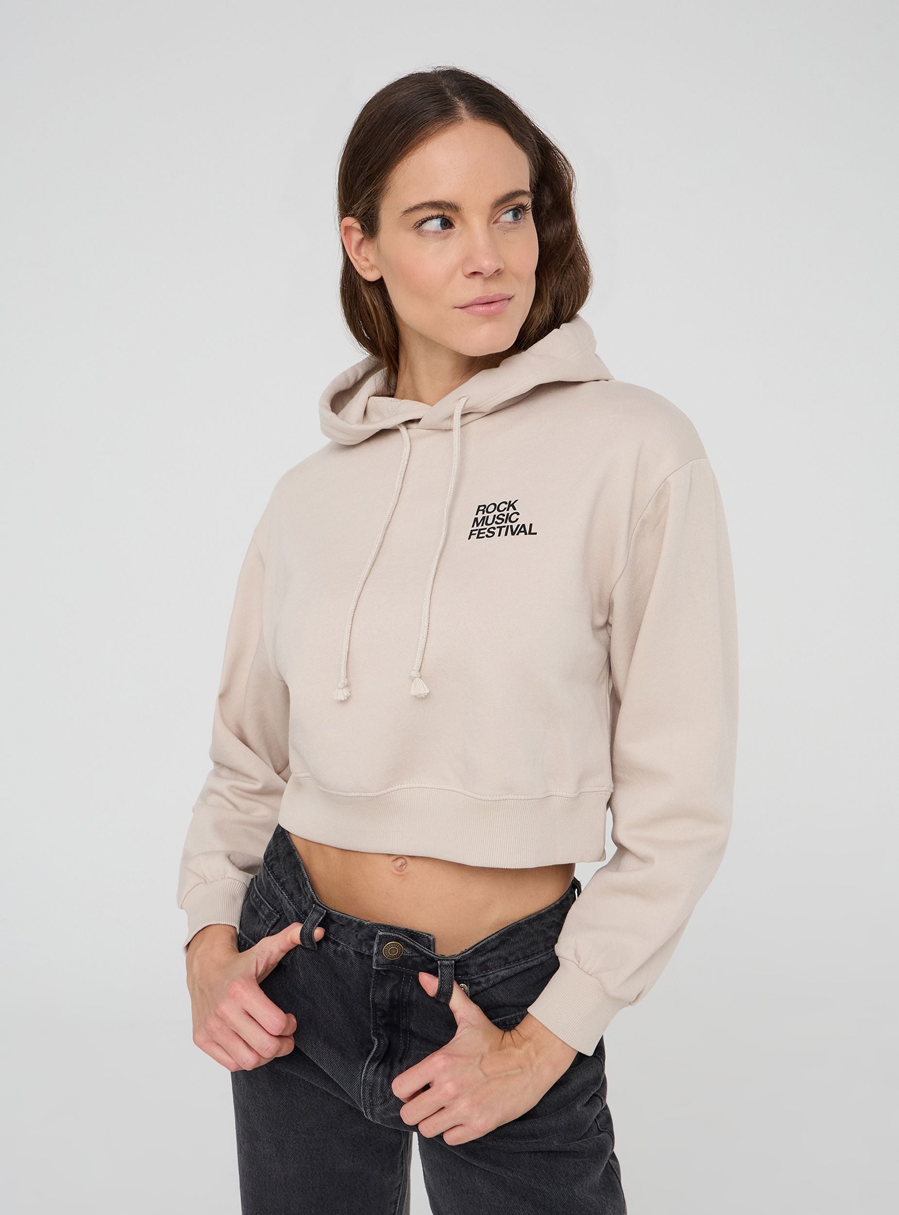 Ženska dukserica s kapuljačom i crop dizajnom, savršena za ležeran i moderan izgled. Karakterizirana je prednjim printom "Rock Music Festival" i grafikom na leđima s natpisom "Saturday Night", ova dukserica je idealna za one koji vole mladenački i dinamičan stil. Kratki kroj nudi modernu i trendi prilagodbu, čineći je pogodnom za različite prilike, od slobodnog vremena do neformalnih događanja. Detalji s rebrastim uzorkom na manžetama i rubu dodaju dašak udobnosti, dok kapuljača s vezicom osigurava praktičnost i zaštitu. Odaberi ovu duksericu da izraziš svoj rock duh s daškom originalnosti.Detalji