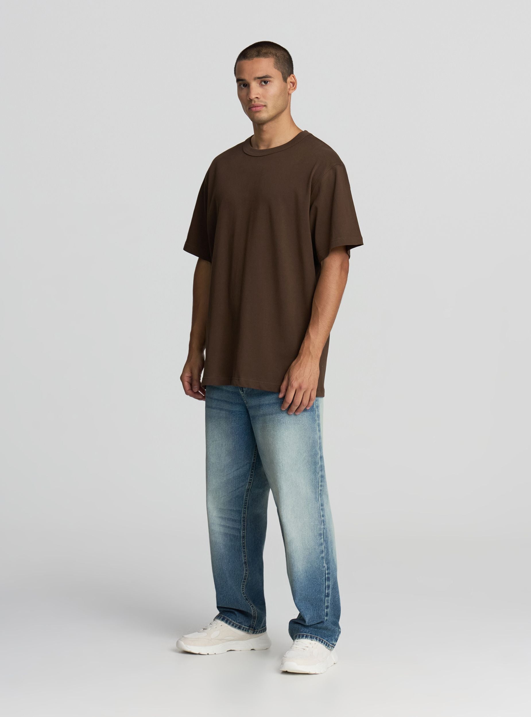Muška majica od teškog pamučnog džersija, osmišljena da pruži udobnost i izdržljivost tijekom svakodnevne upotrebe. Kompaktna tkanina osigurava strukturiranu i dugotrajnu prilagodbu, idealnu za suočavanje s polu-sezonom sa stilom. Izrez s okruglim izrezom i kratkim rukavima čini je savršenom za nošenje samostalno ili ispod dukserica i jakni. Osnovni i svestrani komad u jednoj boji za svaku garderobu.Detalji