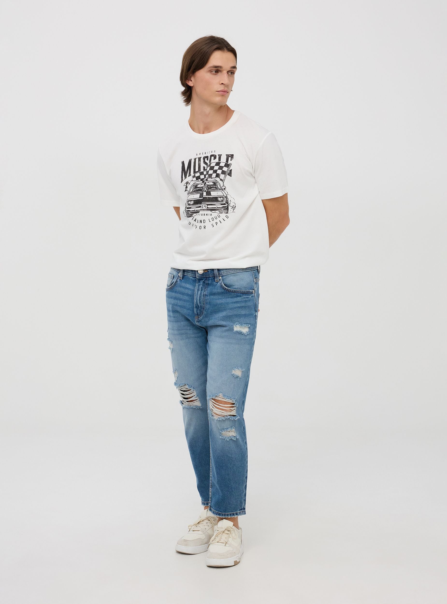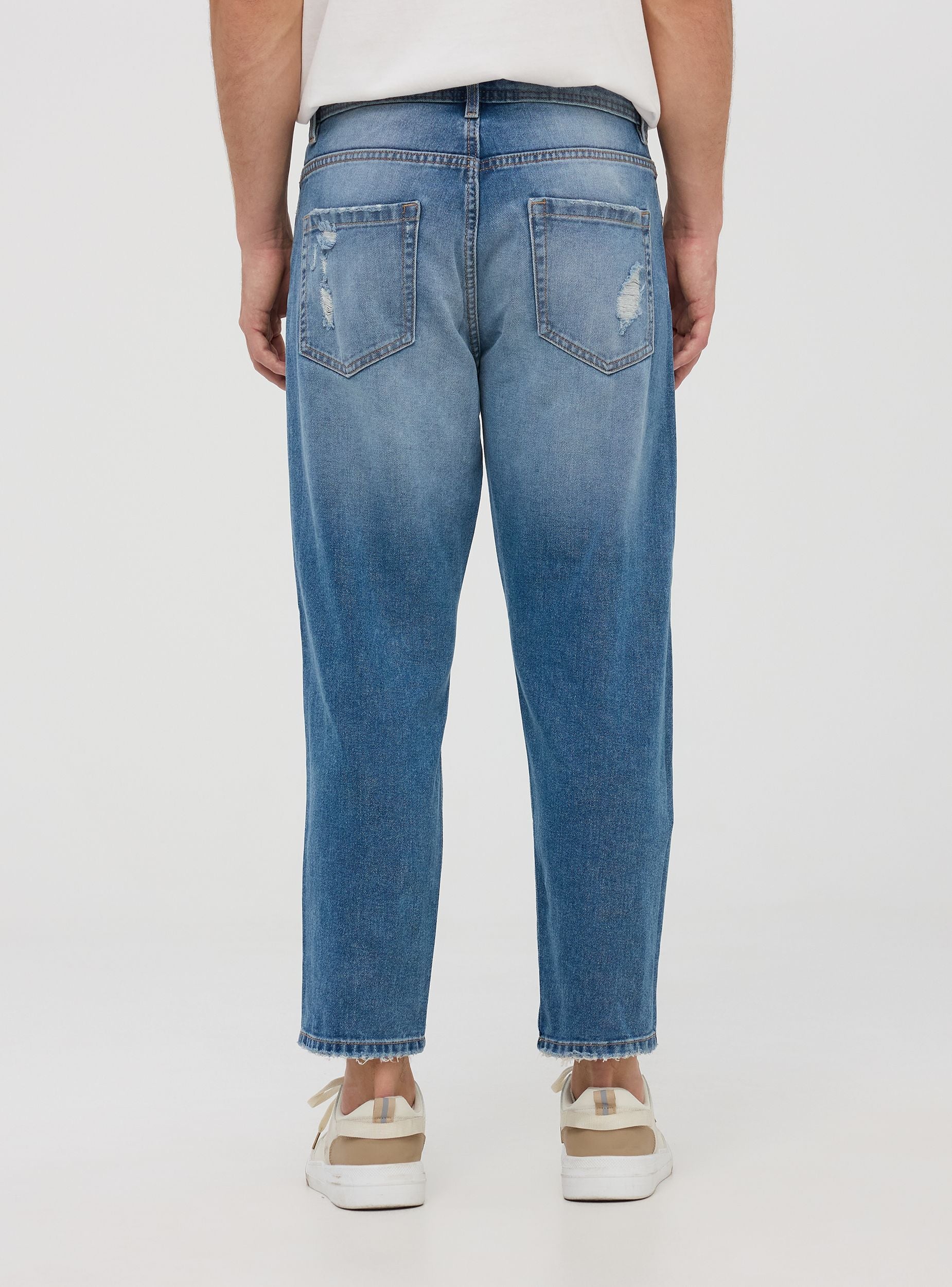 Muški traperice loose fit s srednjim pranjem i poderotinama za ležeran i trendi izgled. Imaju udoban i opušten kroj, savršen za one koji traže stil i udobnost u jednom komadu. Poderotine i abrazije dodaju dašak originalnosti i modernosti, čineći ih idealnima za neformalne i trendi outfite. Model s pet džepova, s remenima u struku i zatvaranjem na gumb i patentni zatvarač. Savršeni za kombiniranje s majicama, duksericama i tenisicama za ležeran i urbani izgled.