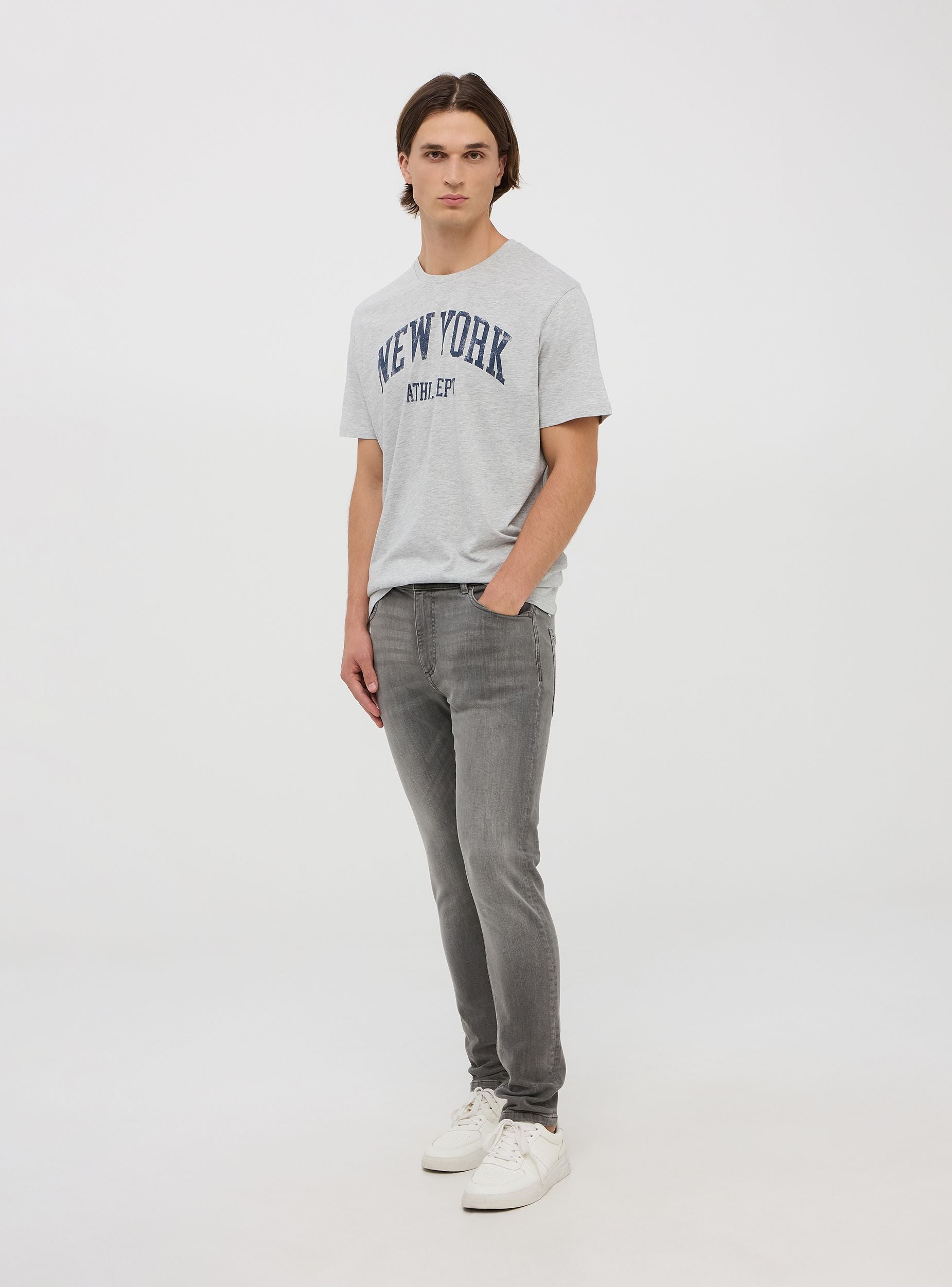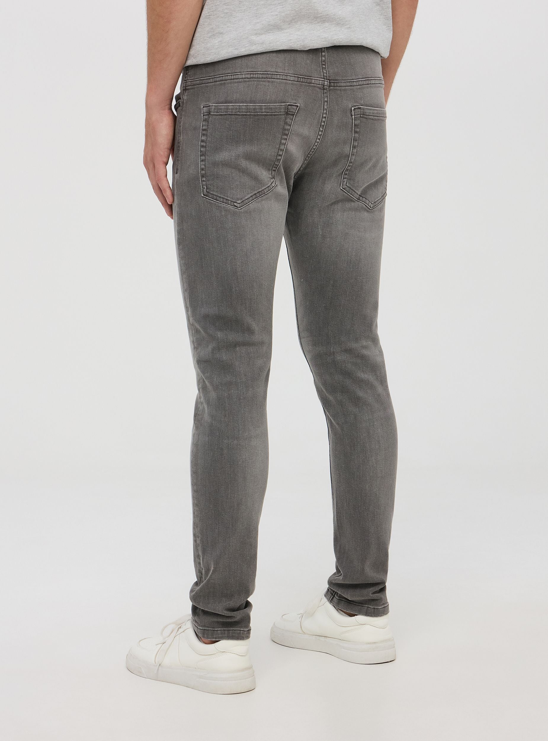 Muške skinny traperice izrađene od lagano elastičnog pamučnog trapera, pružaju udobnost i trajnost. Boja je siva s efektom nijansiranja koji daje moderan i svestran izgled. Imaju zatvarač na patent i gumb, te pet praktičnih džepova. Pristajanje je udobno, savršeno za svakodnevno nošenje ili za poluformalne prilike. Neophodan komad u garderobi svakog muškarca.Detalji