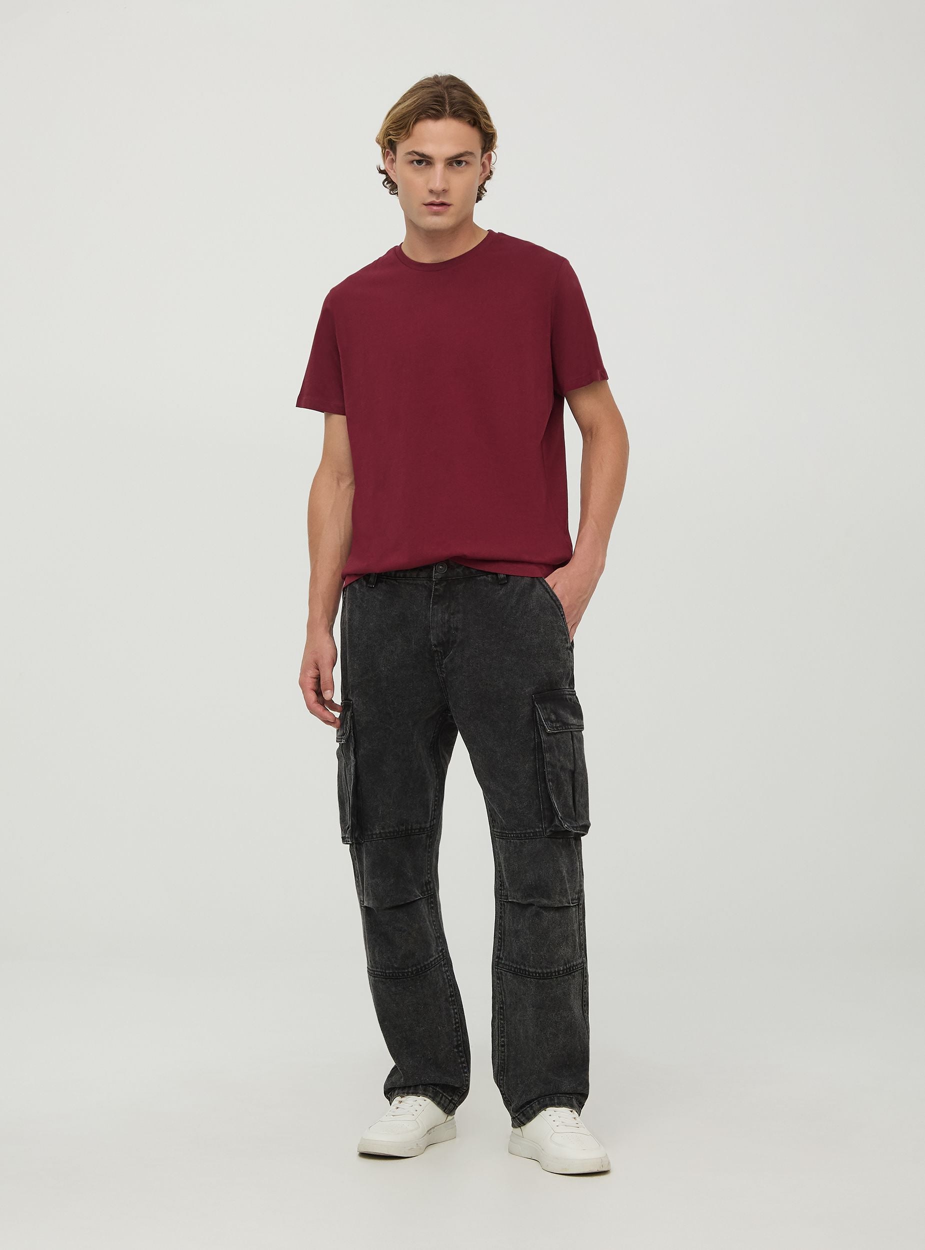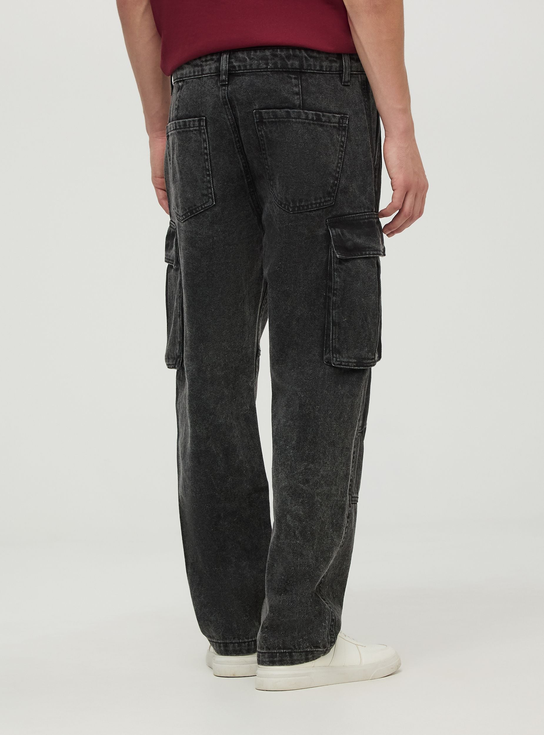 Muški cargo traperice s efektom acid wash koji im daje vintage i istrošen izgled. Model se odlikuje širokim krojem, savršenim za ležeran i opušten stil. Hlače imaju velike bočne cargo džepove, što dodaje funkcionalnost i praktičnost, idealne za nošenje svega što vam treba. Zatvaranje je na zip i dugme, a struk ima petlje za pojas, što omogućuje podešavanje za optimalnu udobnost. Šavovi su istaknuti i dobro završeni, osiguravajući otpornost i trajnost. Na stražnjoj strani, traperice imaju dva aplikovana džepa, upotpunjujući izgled s dodatnim stilskim dodirom.