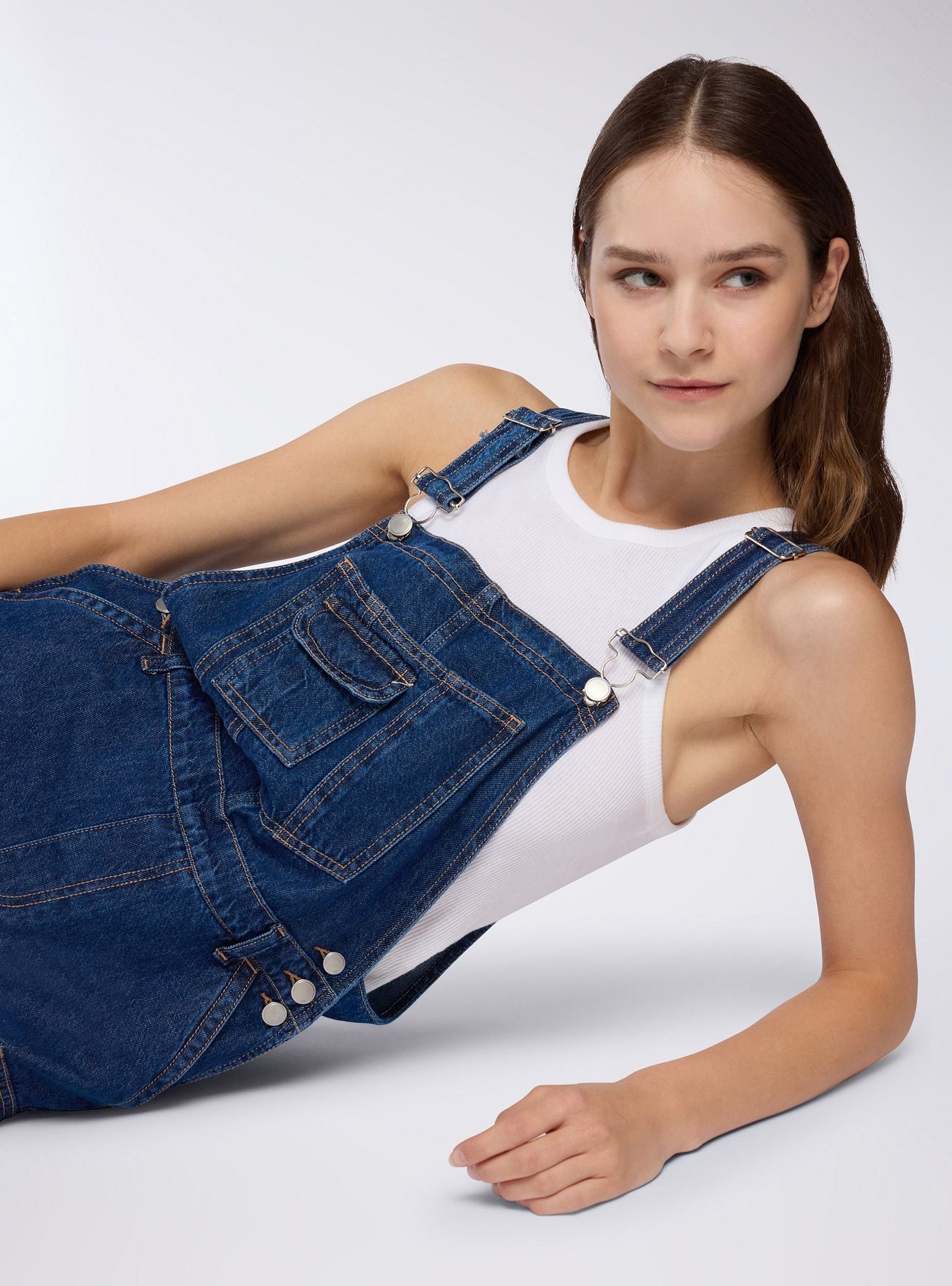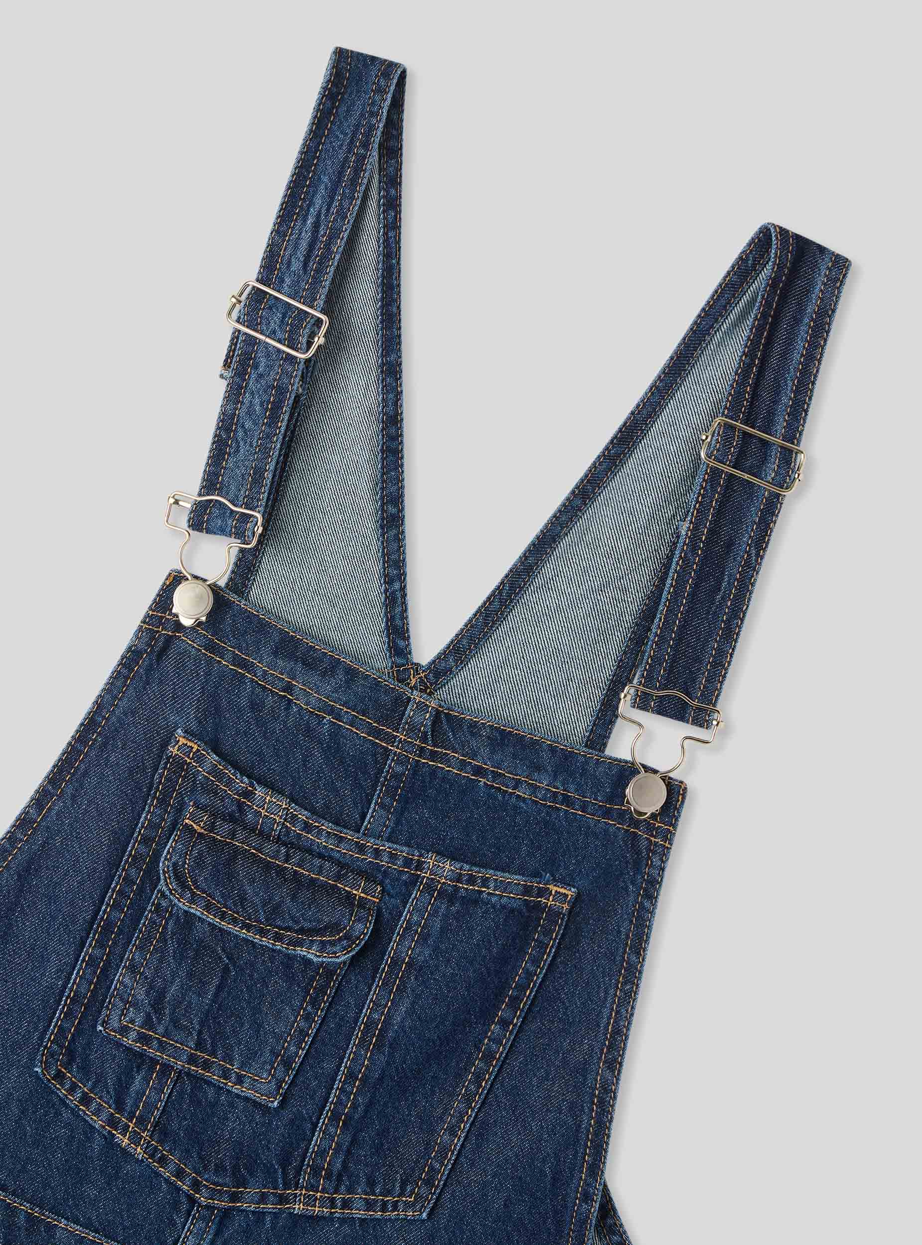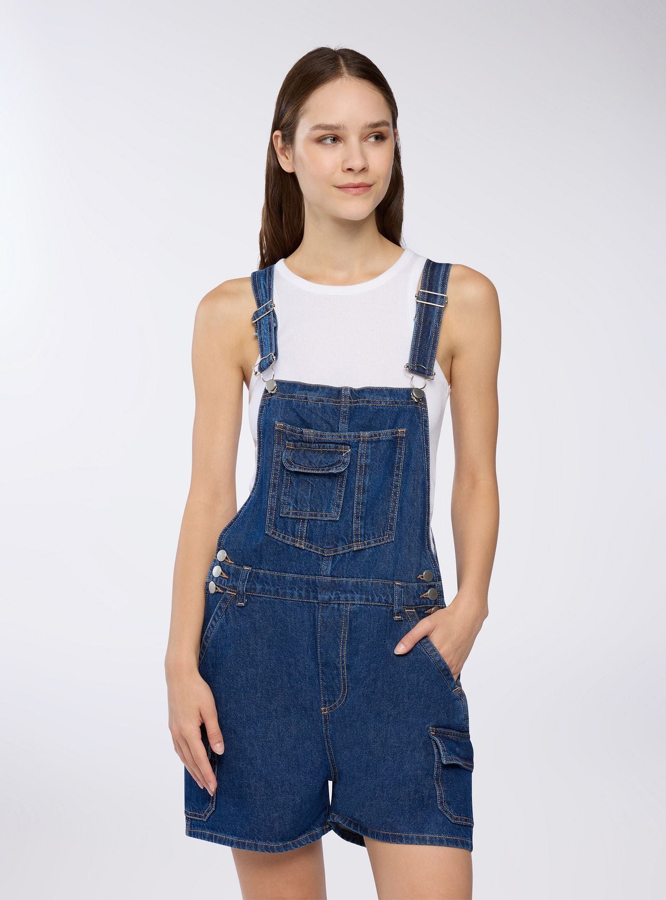 Kratke ženske hlače na tregere, idealne za ležeran i svestran izgled. Imaju kopčanje na gumbe i funkcionalne džepove, savršene za kombiniranje s majicama ili košuljama. Regularan kroj i traper dizajn čine ih prikladnima za razne prilike, osiguravajući udobnost i stil.Detalji