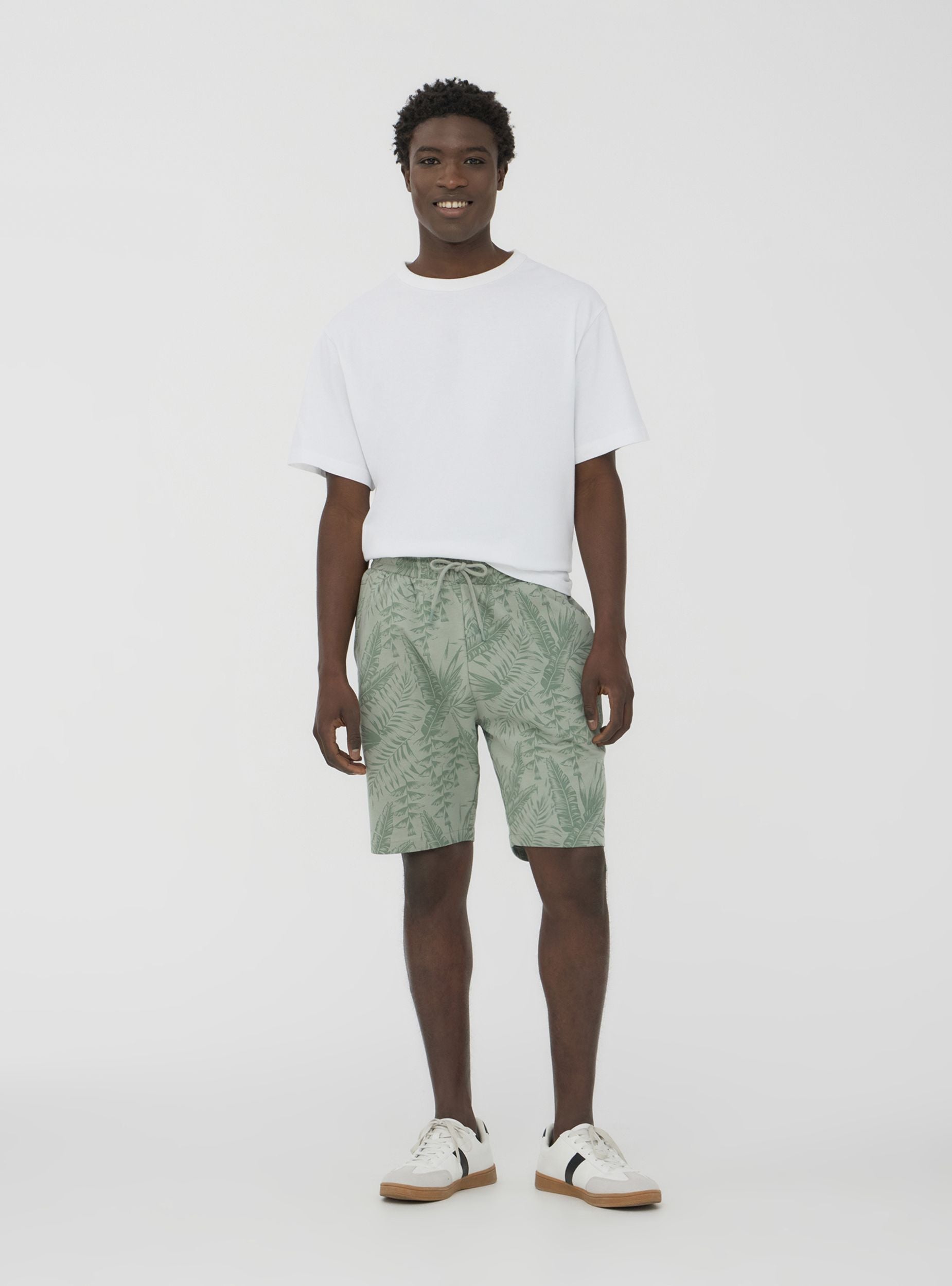 Muške bermude savršene za ležeran i opušten izgled, idealne za slobodno vrijeme ili ljetne dane. Karakterizirane su regularnim krojem, imaju print s motivom palmi i zatvaranje s vezicom. Opremljene bočnim džepovima, svestran su i udoban komad za razne neformalne prilike.Detalji