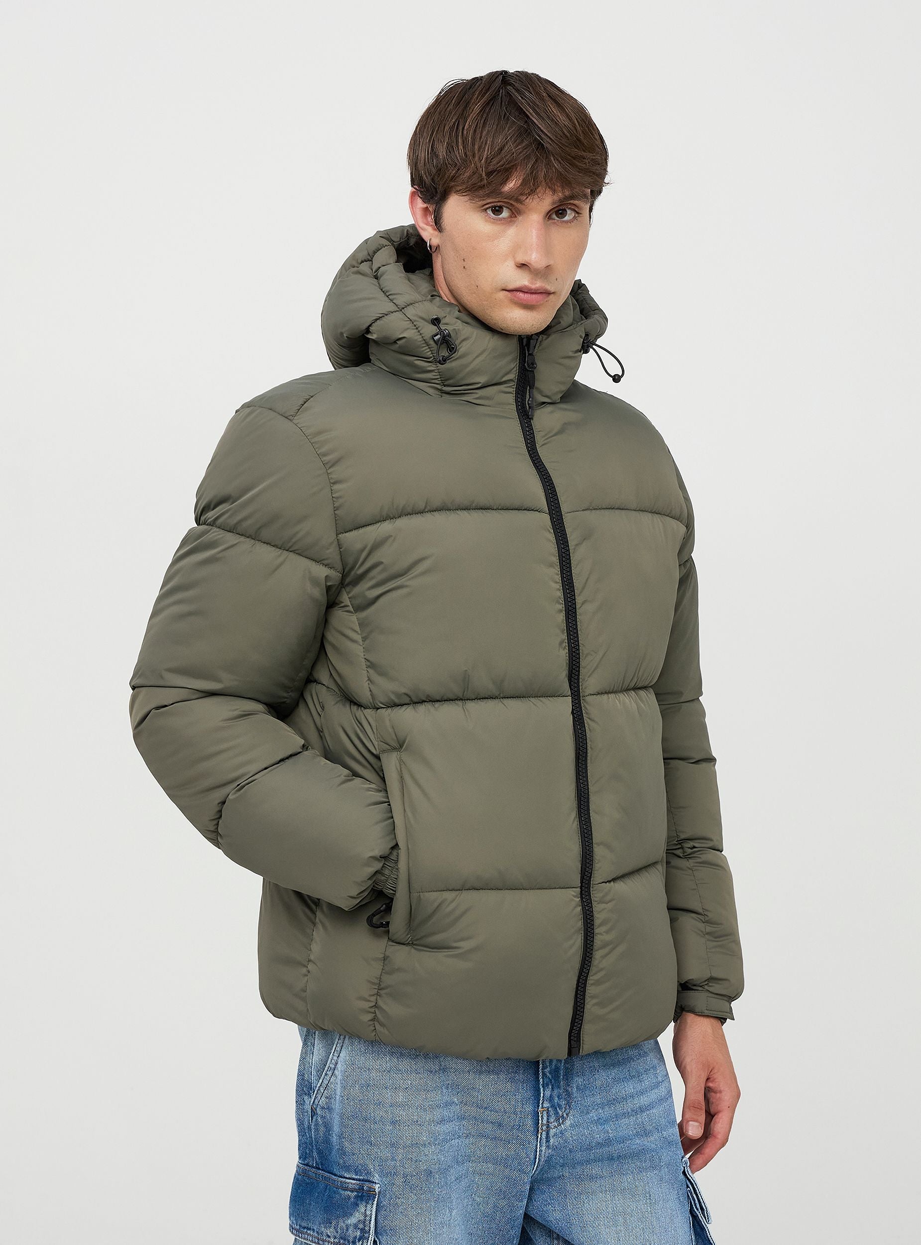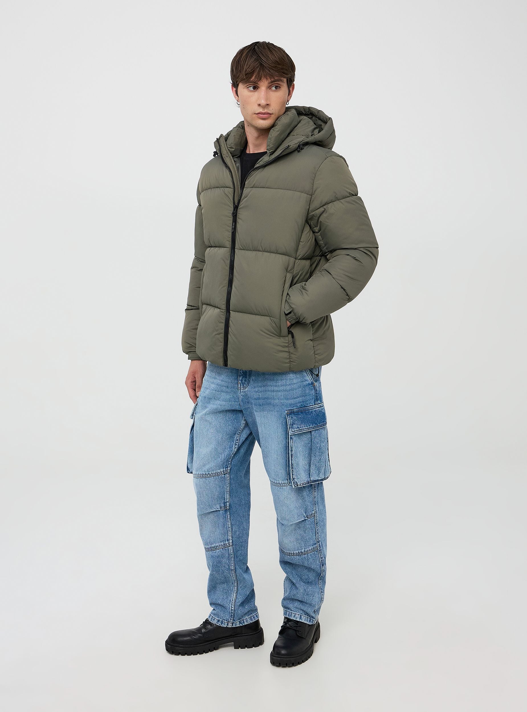 Zimska jakna s debelom podstavom za muškarce. Model s kapuljačom i vezicom, dugim rukavima s reguliranim manžetama koje omogućuju prilagodbu za veću udobnost. Bočne džepove s patentnim zatvaračem idealni su za pohranu mobitela, ključeva i drugih dodataka, dok unutarnji džep dodaje dodatni nivo praktičnosti. Prednje zatvaranje s patentnim zatvaračem. Donji rub s vezicom i čepom za maksimalnu zaštitu od hladnoće. Regularna kroja. Dostupna u raznim svestranim bojama, ova jakna kombinira stil i udobnost.Detalji