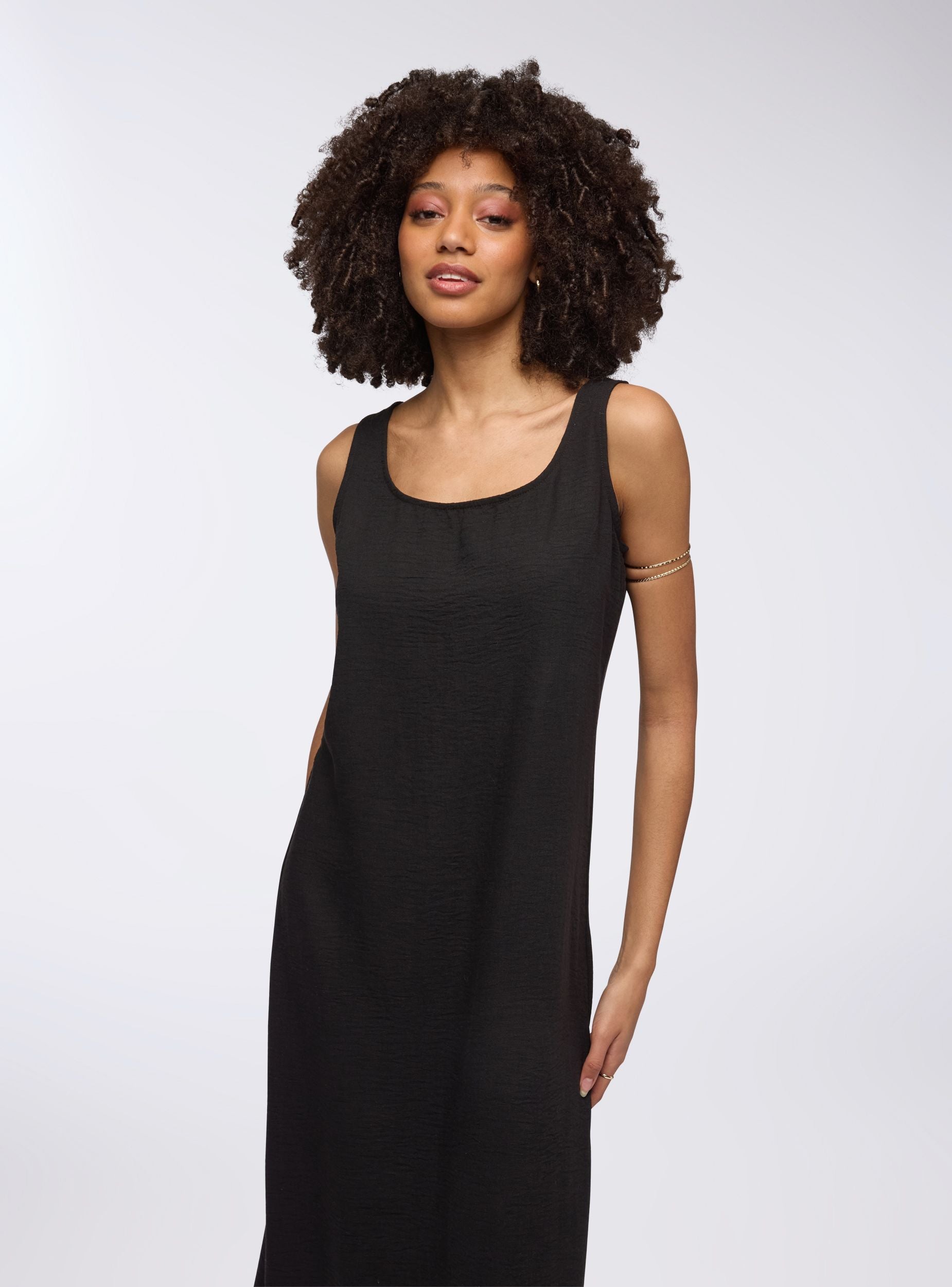Duga haljina za žene, karakterizirana jednobojnom bojom koja naglašava jednostavnost i eleganciju. Dizajn je osnovni, s ravnom siluetom koja pada mekano uz tijelo, pružajući osjećaj udobnosti i lakoće. Široke naramenice dodaju stabilnost i dašak diskretnog stila, dok maxi dužina daje sofisticiran izgled, prikladan za brojne prigode, od ležernih izlazaka do elegantnijih. Ova haljina je idealna za one koji traže svestran i minimalistički komad, lako kombiniran i savršen za ljetnu sezonu.Detalji