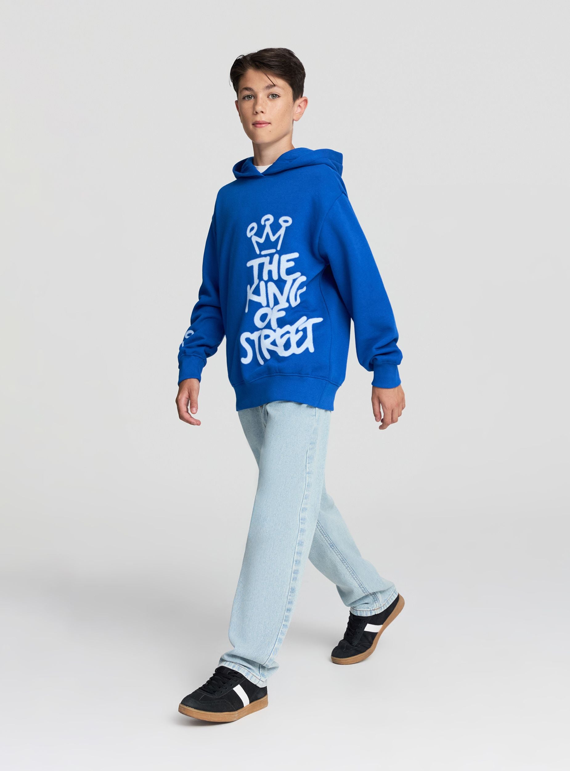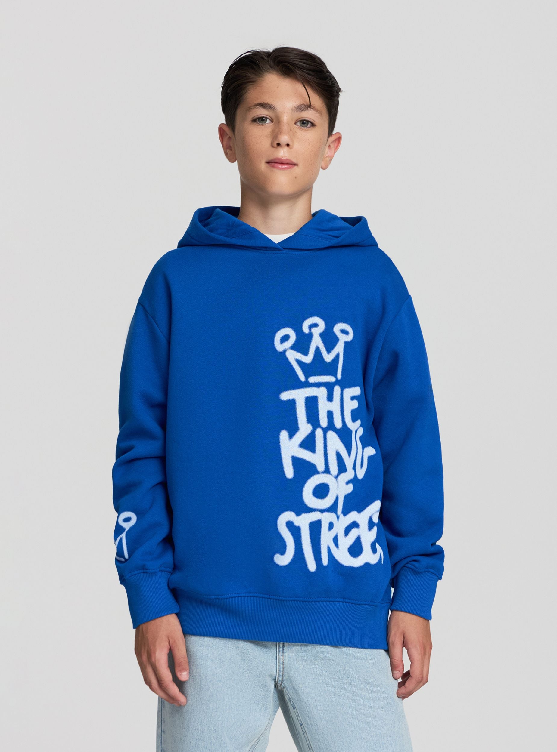 Teška dječja dukserica s kapuljačom, zatvorenog modela bez munje, idealna za ležeran i urbani izgled. Savršena za svježije dane, ova dukserica nudi udobnost i stil zahvaljujući dizajnu s natpisom u graffiti stilu. Lako se kombinira s trapericama ili sportskim hlačama za praktičan i moderan outfit. Prisutnost kapuljače dodaje modernu i funkcionalnu notu, čineći je pogodnom za različite neformalne prilike.Detalji