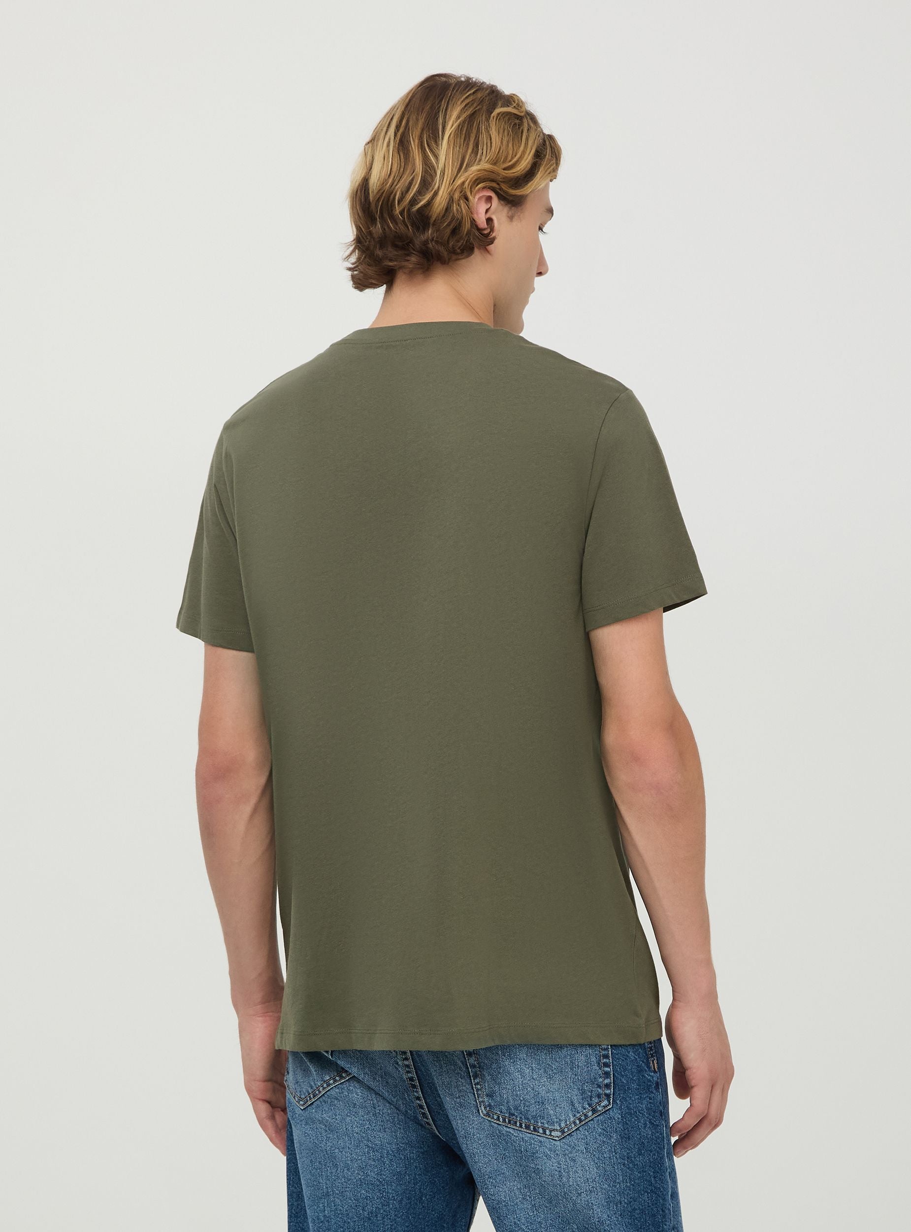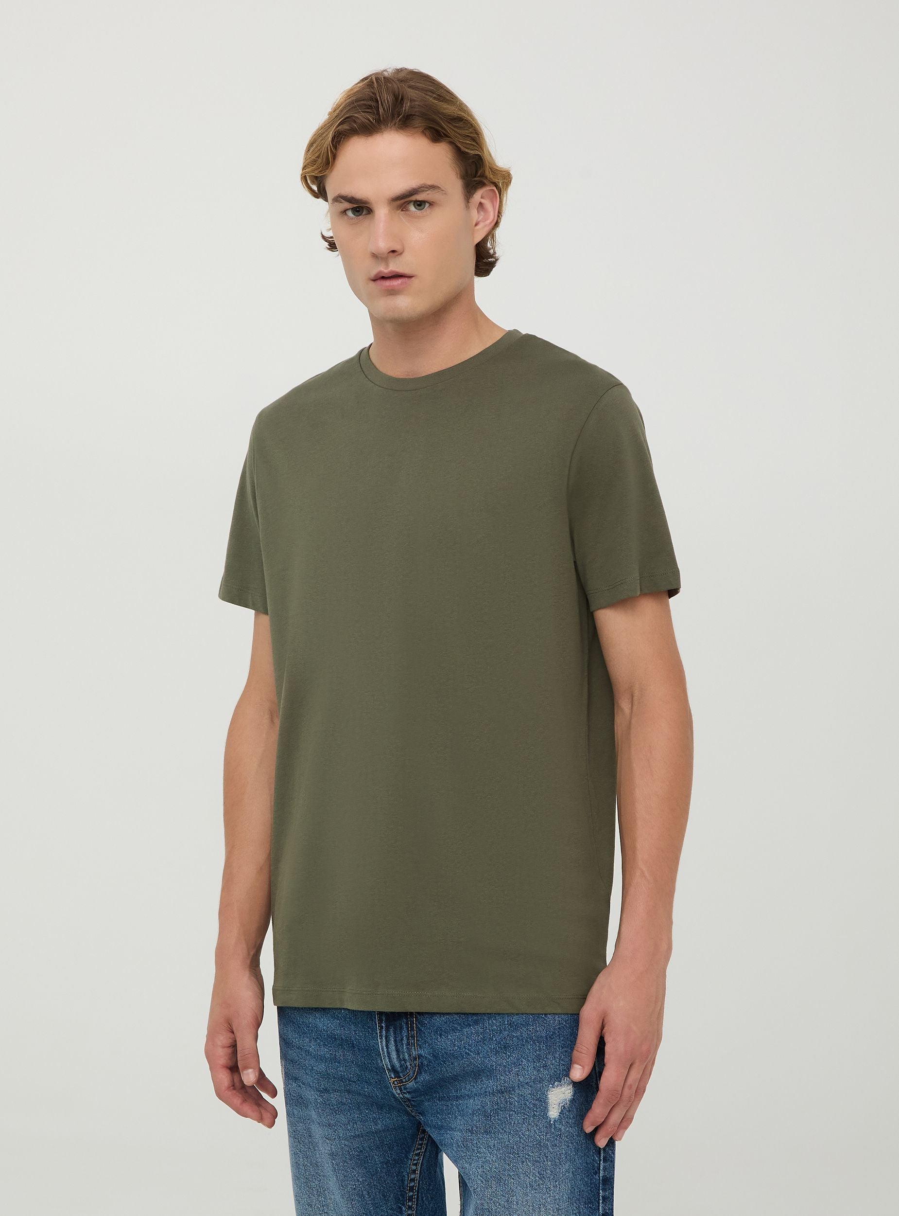 Majica za muškarce od pamučnog džersija u jednobojnoj boji. Model s okruglim izrezom i kratkim rukavima. Osnovni komad savršen za upotpunjavanje bilo koje odjeće. Regularna fit.Detalji