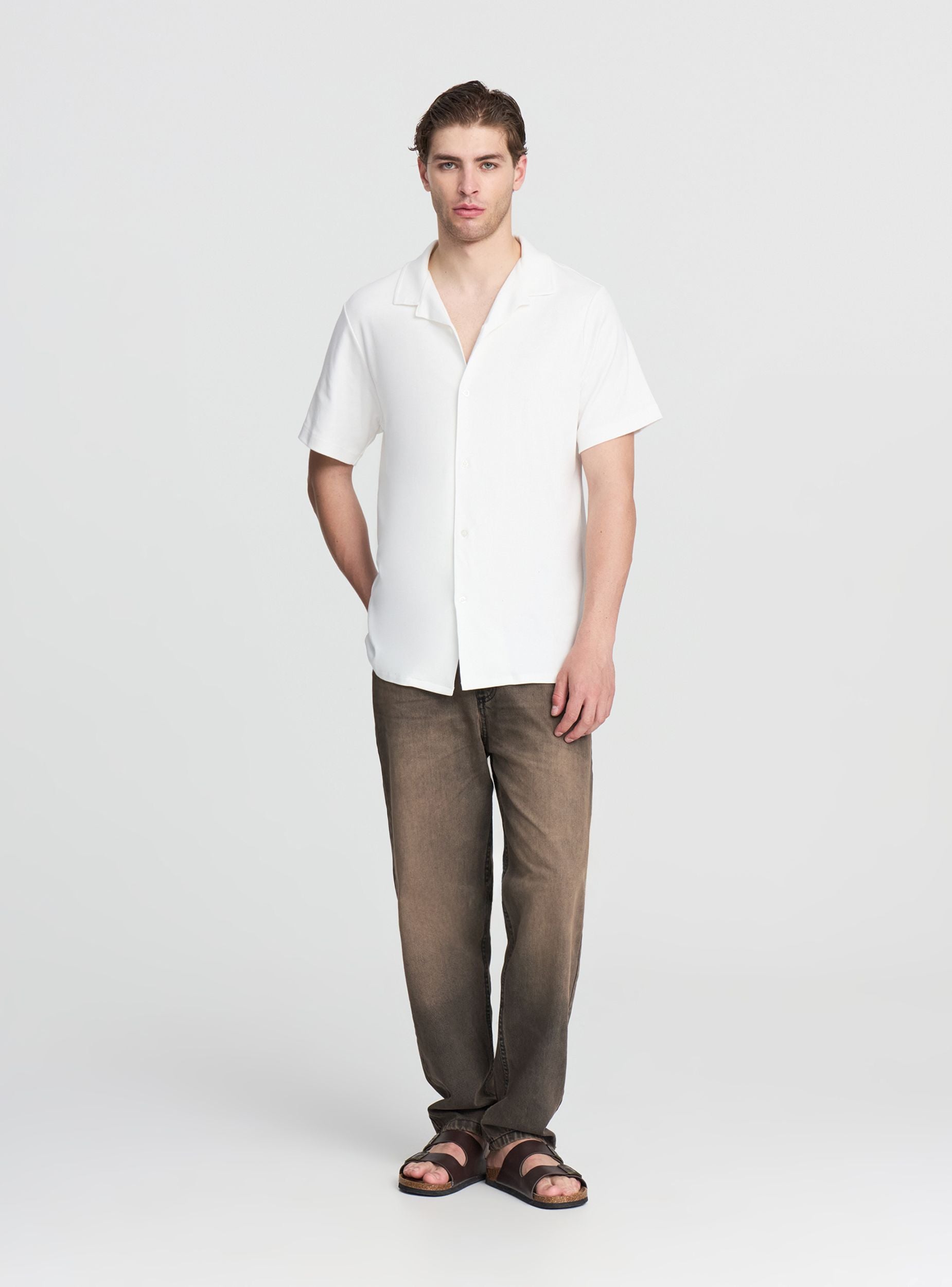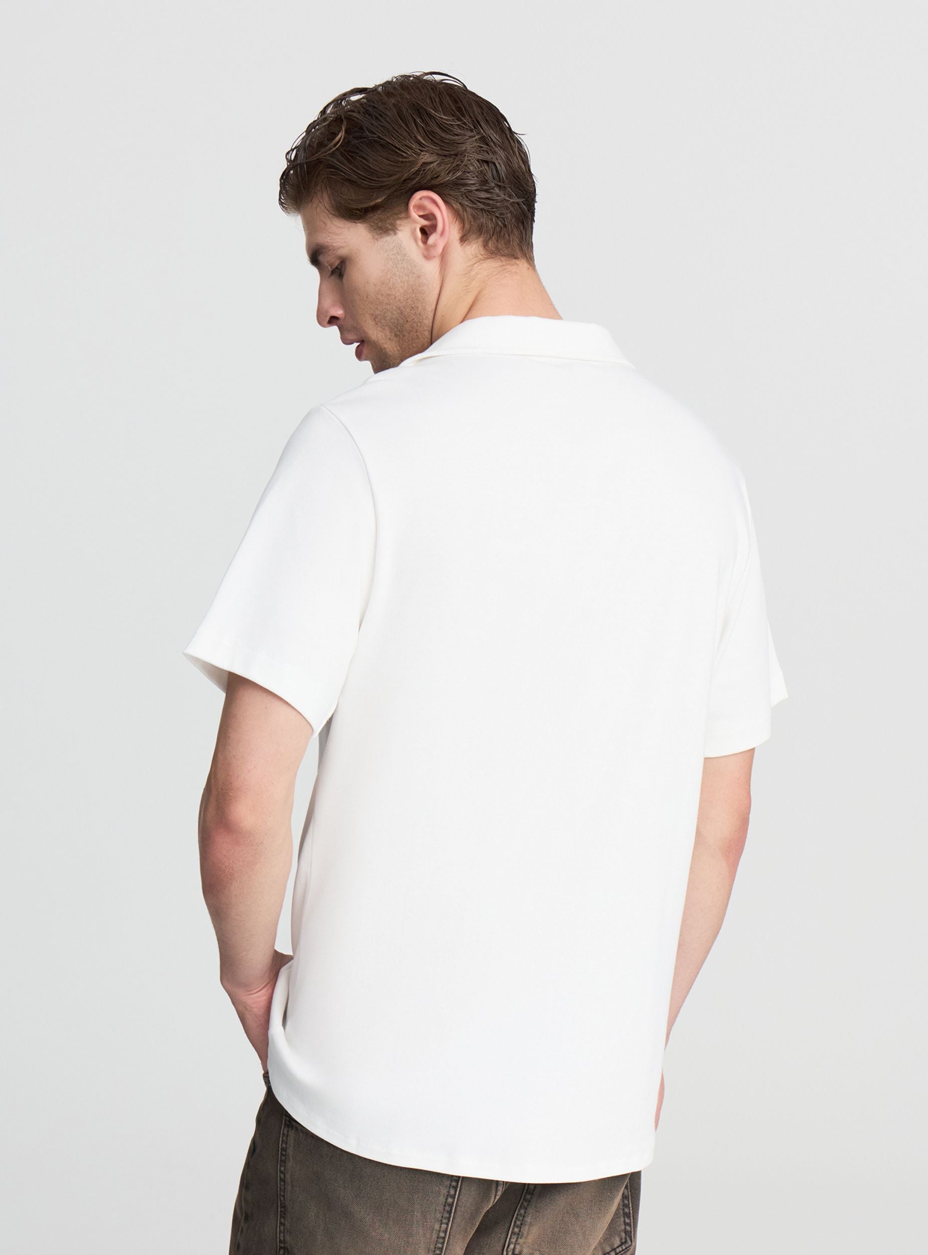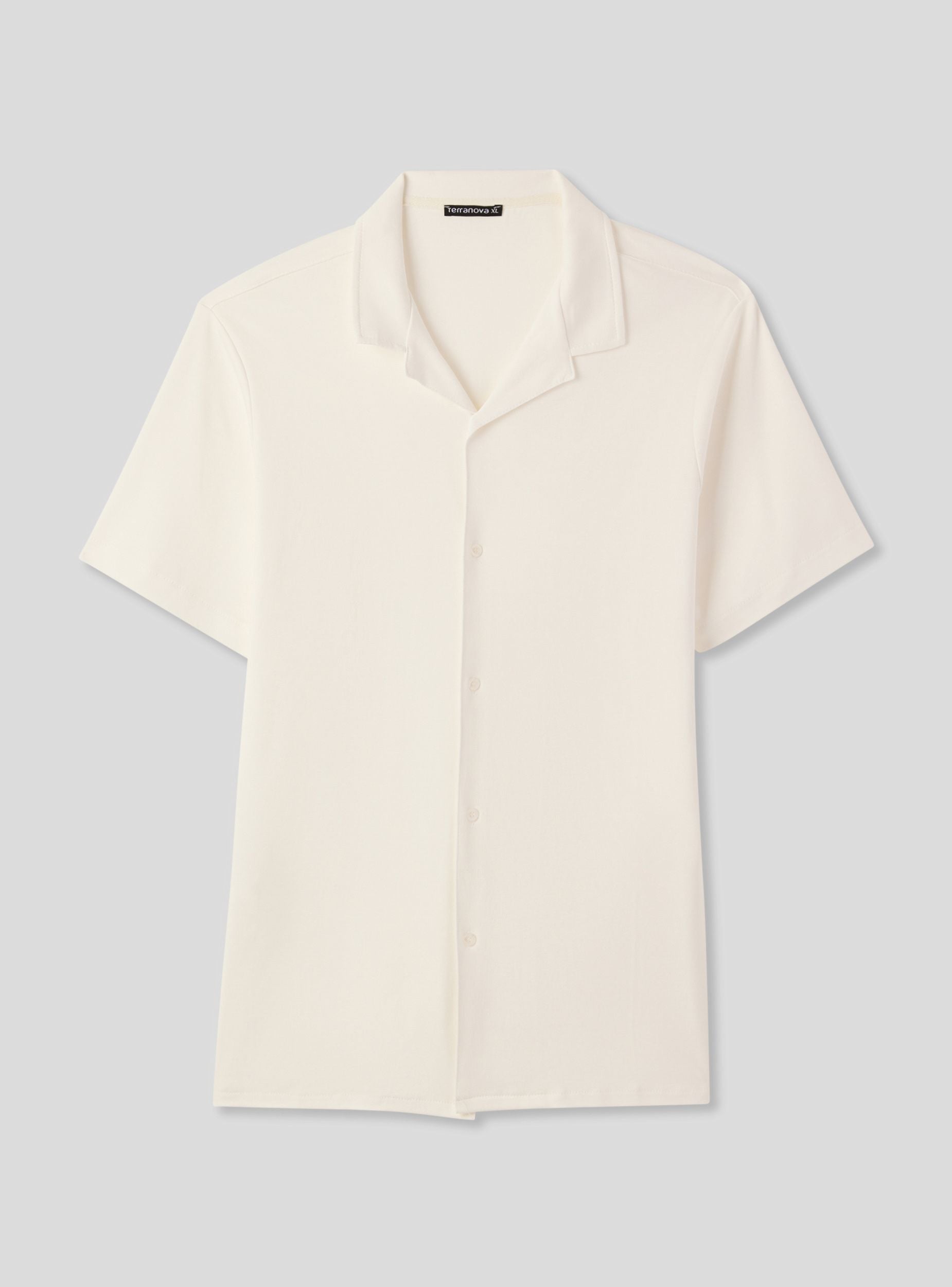 Muška jednobojna košulja s kratkim rukavima, klasičnim ovratnikom i kopčanjem na dugmad. Idealna za ležerne, ali dotjerane lookove, savršena za ljetne dane, aperitive ili odmore. Lako se kombinira s bermudama ili chino hlačama za moderan i opušten stil.