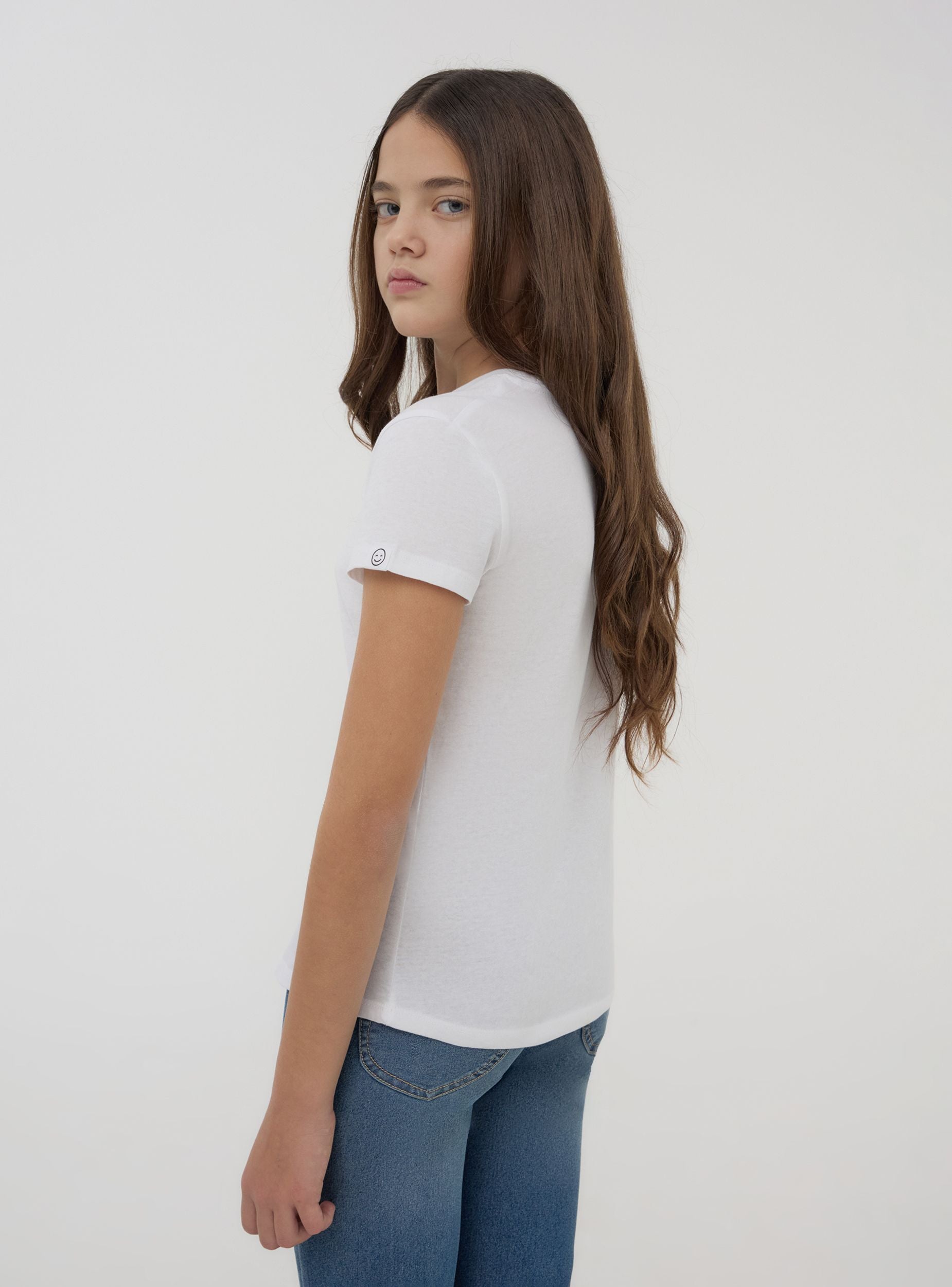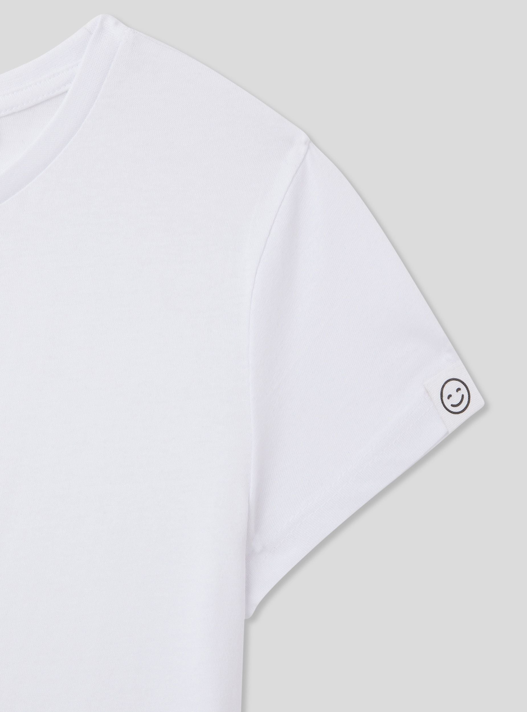 Majica za djevojčice s jednostavnim dizajnom, savršena za svaku prigodu. Okrugli izrez i kratki rukavi dodaju dašak praktičnosti i udobnosti odjeći, izrađenoj od mekog pamuka za ugodno nošenje na koži. Detalj oznake na rukavu obogaćuje izgled, čineći ga jedinstvenim i veselim. Idealna je za kombiniranje s hlačama ili suknjama kako bi se stvorile svestrane kombinacije prikladne za svaku sezonu.Detalji