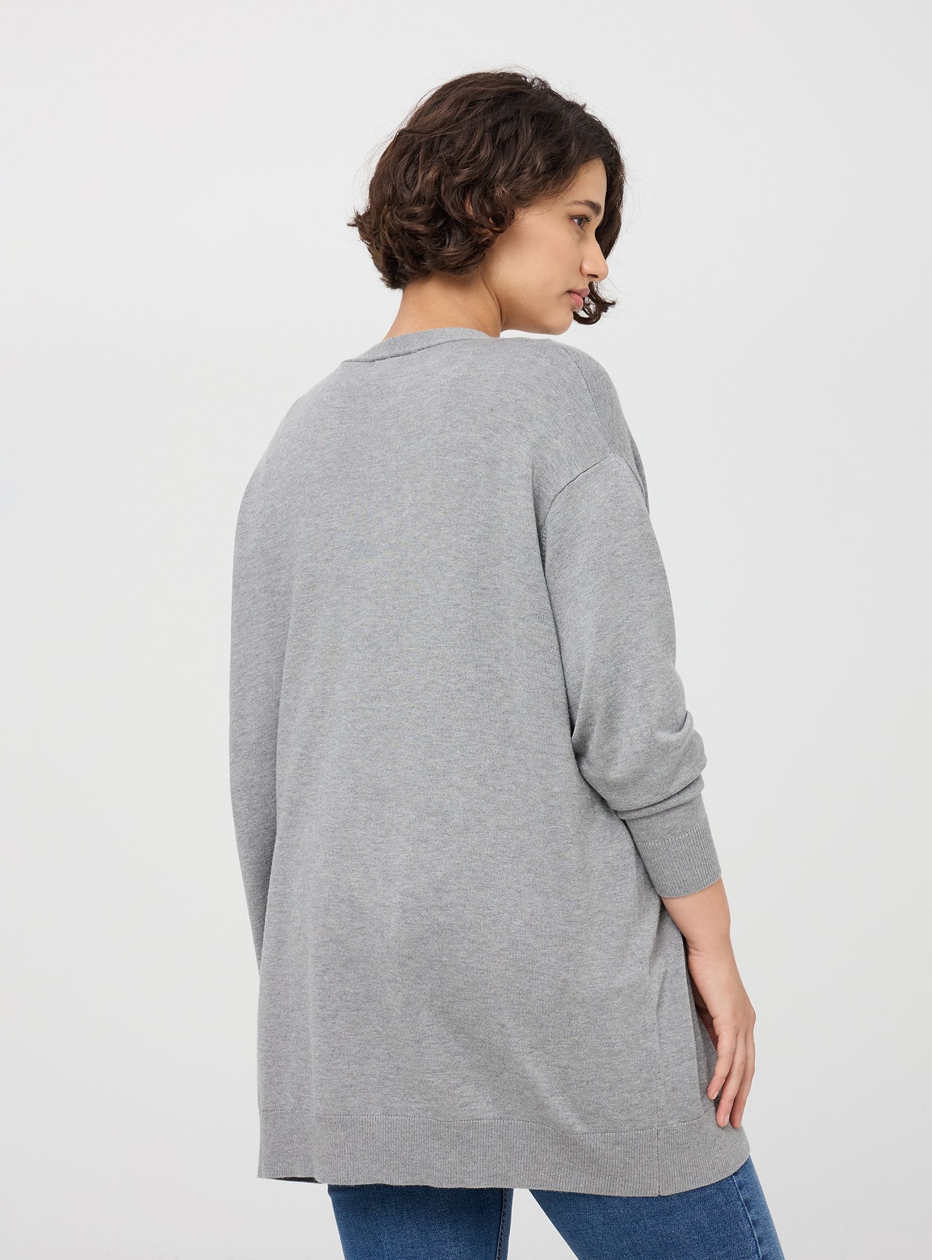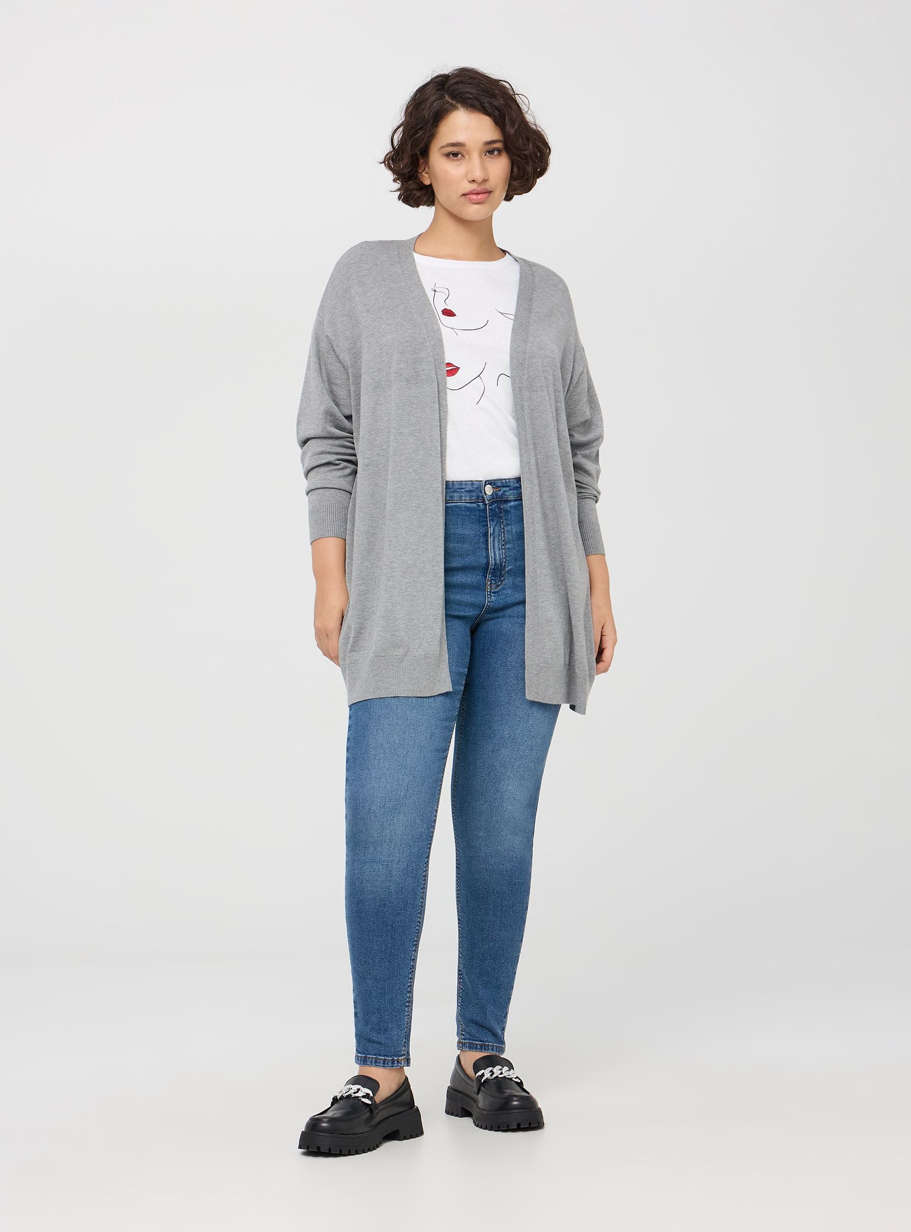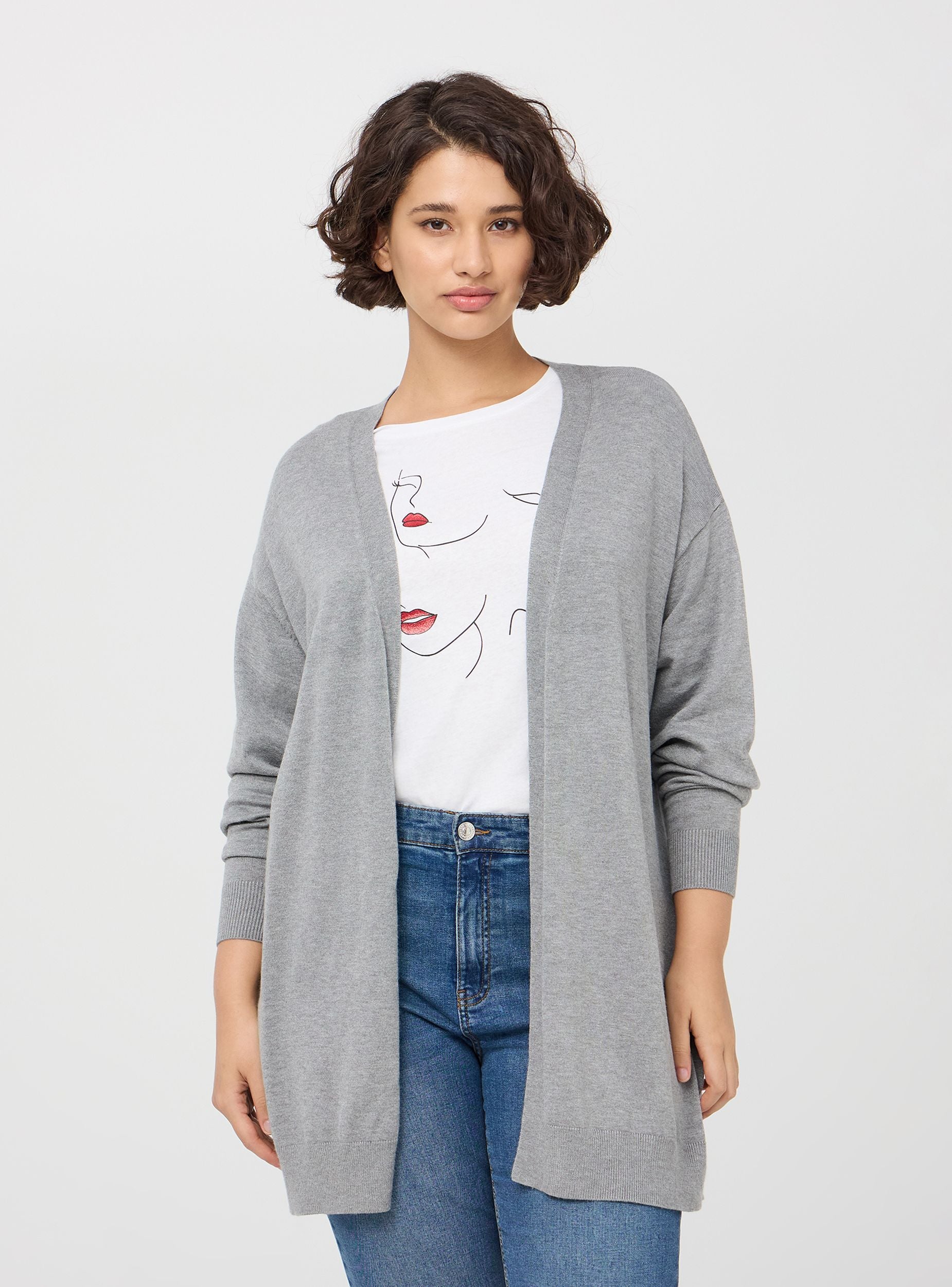 Ženski otvoreni kardigan u jednobojnoj boji. Fit je opušten, savršen za ležeran i sofisticiran izgled. Idealno za ured, slobodno vrijeme ili za upotpunjavanje ležernog outfita.
