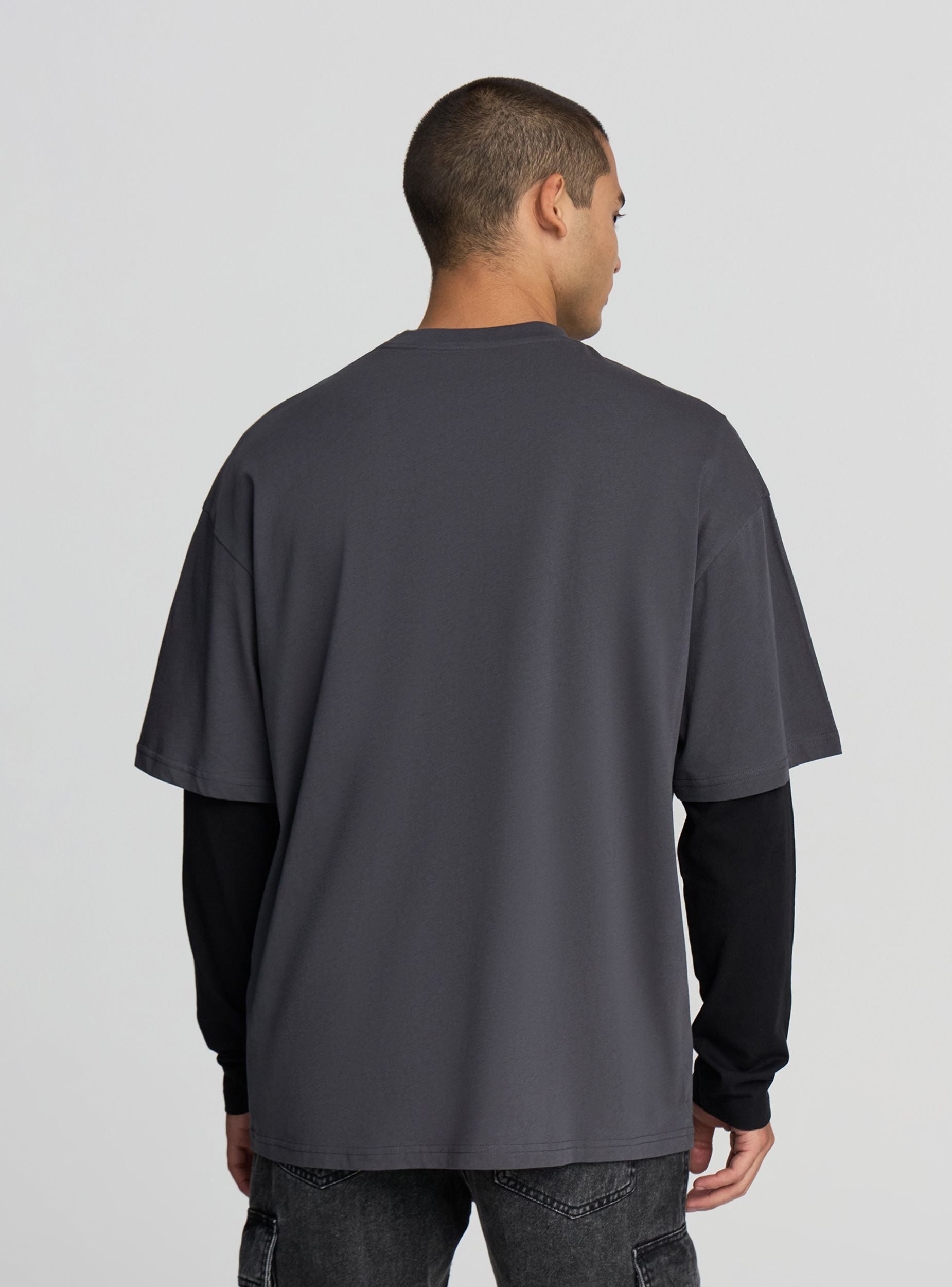 Muška oversized majica s kratkim rukavima i okruglim izrezom. Savršena za minimalistički i svestran izgled, idealna za slobodno vrijeme, neformalni rad ili večernje izlaske. Izrađena od jednobojnog pamuka, ova majica se lako kombinira s trapericama, chino hlačama ili sportskim hlačama, prilagođava se svakoj prilici. Osnovni dizajn čini je must-have komad za one koji traže udobnost i stil u jednostavnom, ali uvijek dotjeranom outfitu.