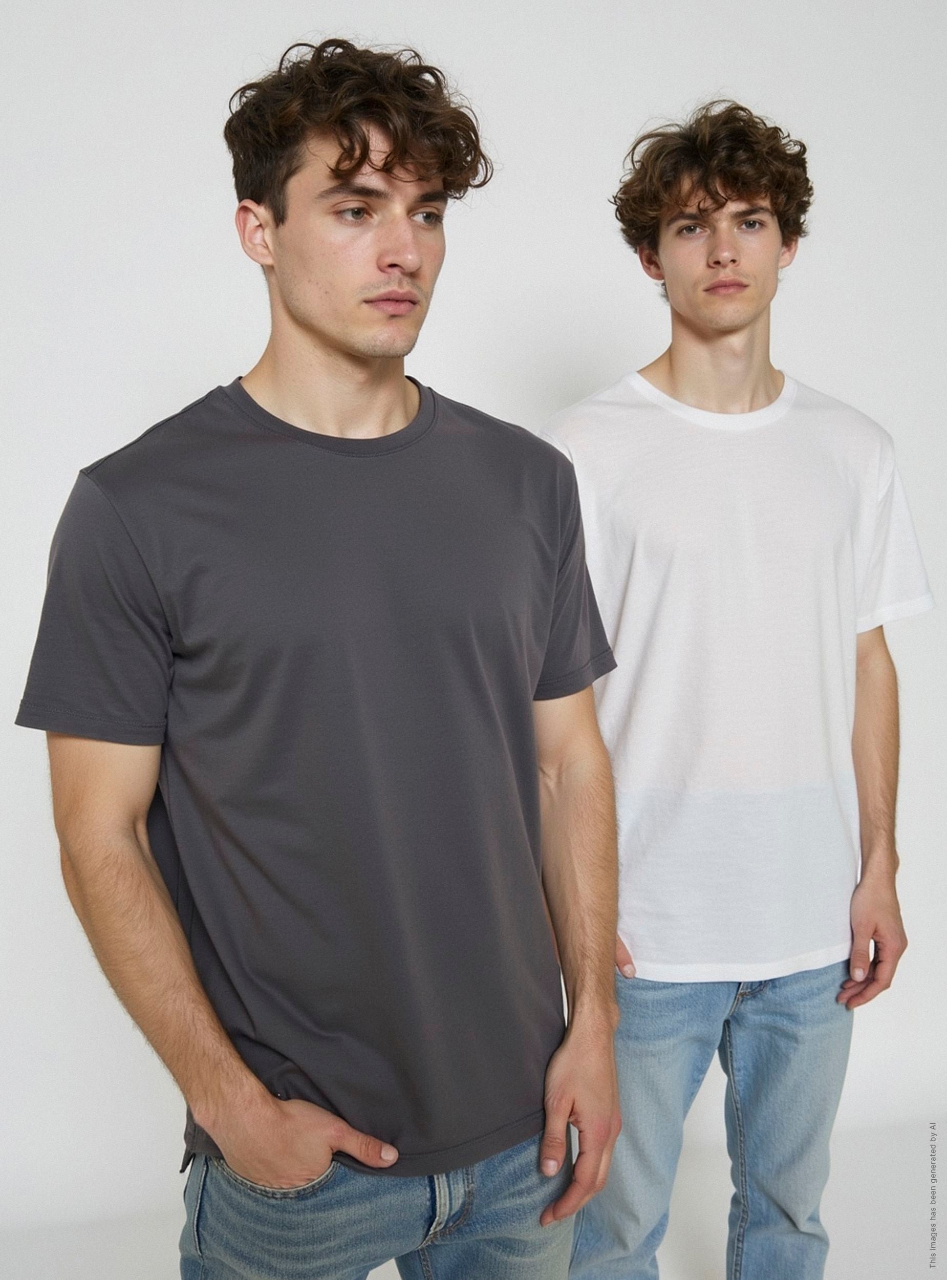 Pakiranje se sastoji od dvije muške majice s jednostavnim i svestranim dizajnom. Obje imaju jednobojnu boju, savršene za svaku priliku. Okrugli izrez osigurava udobno pristajanje, dok kratki rukavi čine ih idealnima za toplije dane ili za nošenje ispod jakne. Ove majice su izvrstan izbor za one koji traže praktičan i jednostavan komad za kombiniranje.Detalji