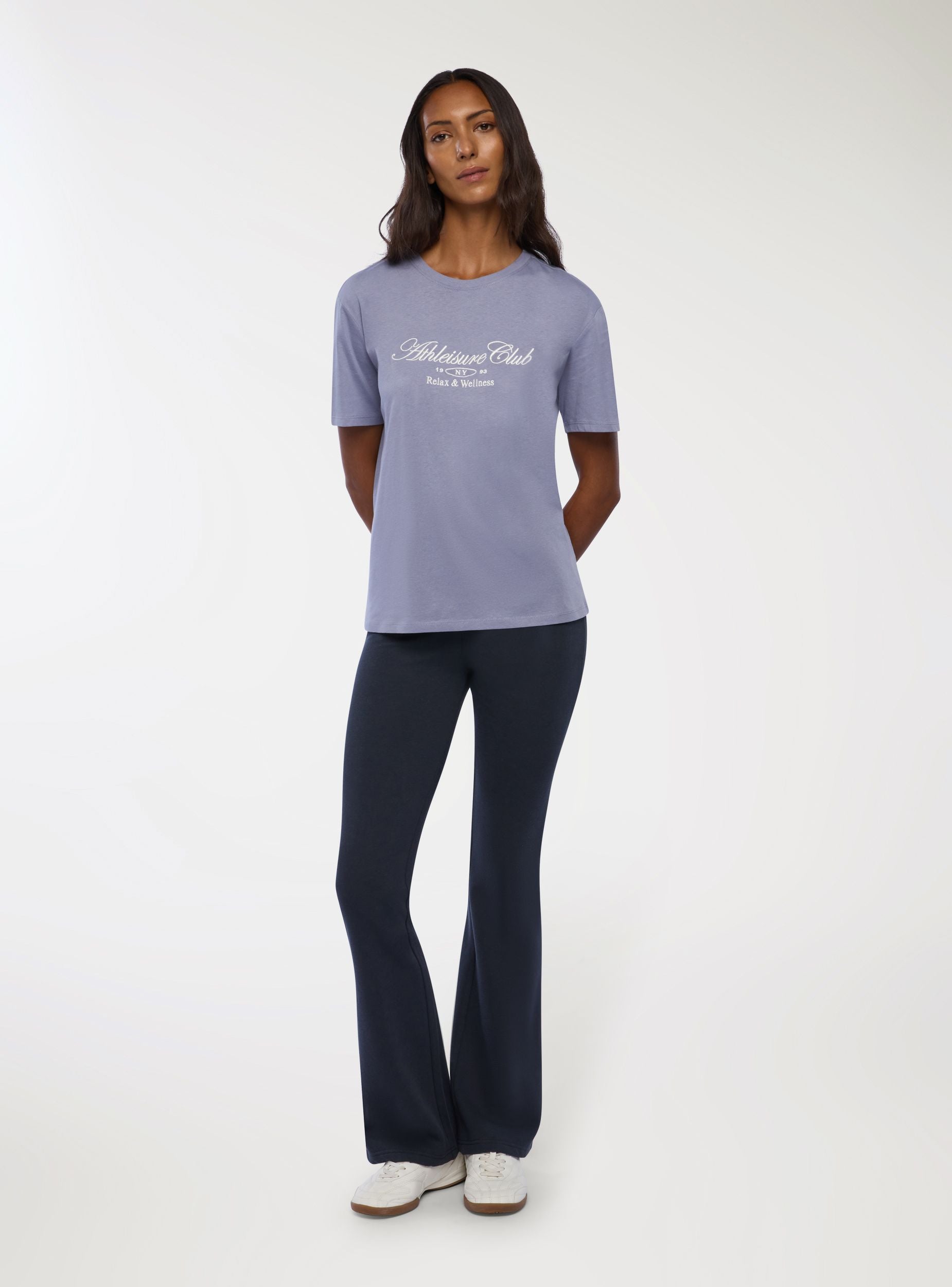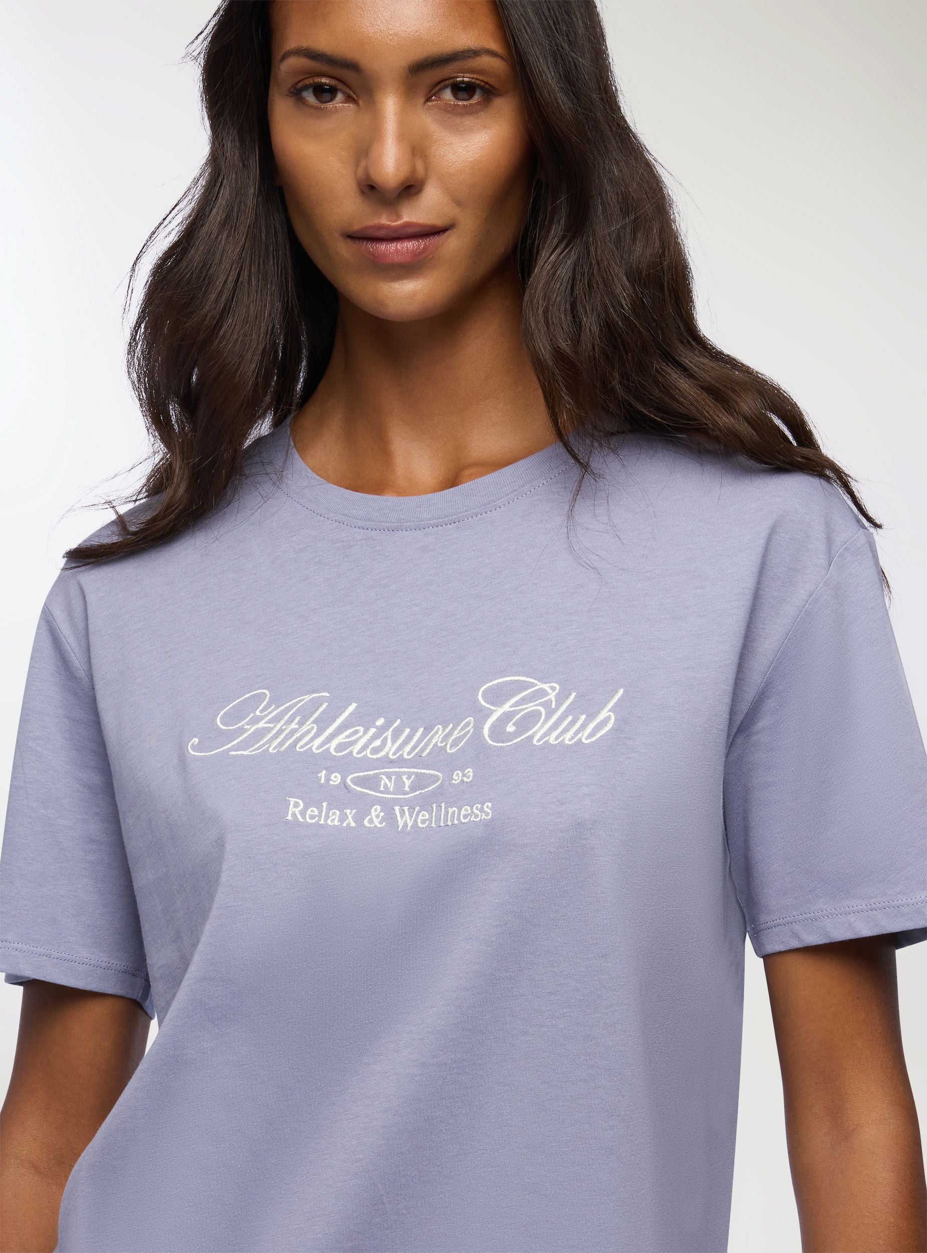 Ženska majica s kratkim rukavima i okruglim izrezom, ukrašena dekorativnim natpisima sprijeda. Idealna za ležeran i svestran izgled, savršeno se slaže s trapericama ili sportskim hlačama za slobodno vrijeme. Širok kroj i moderan dizajn čine je prikladnom za različite prilike.Detalji