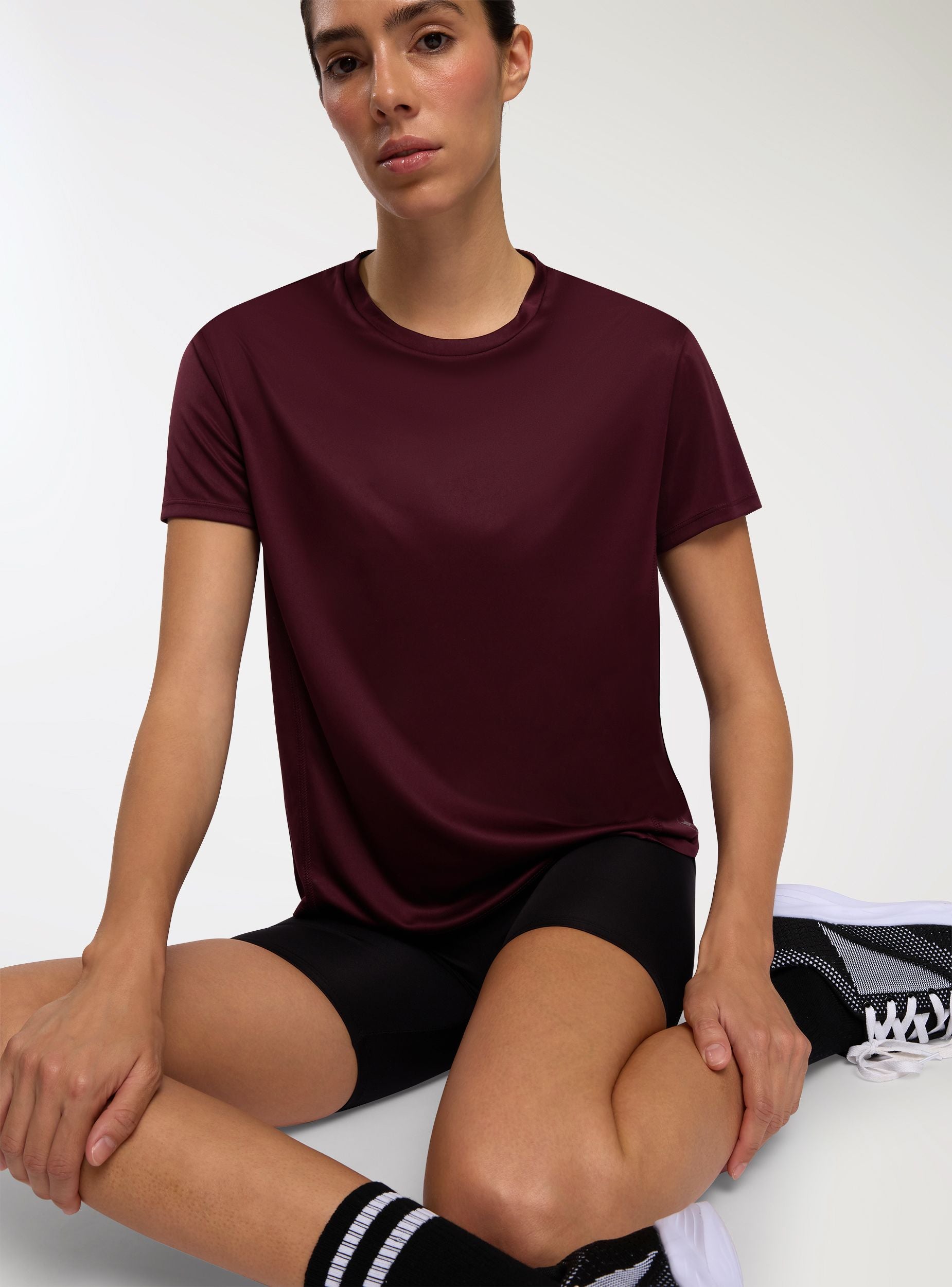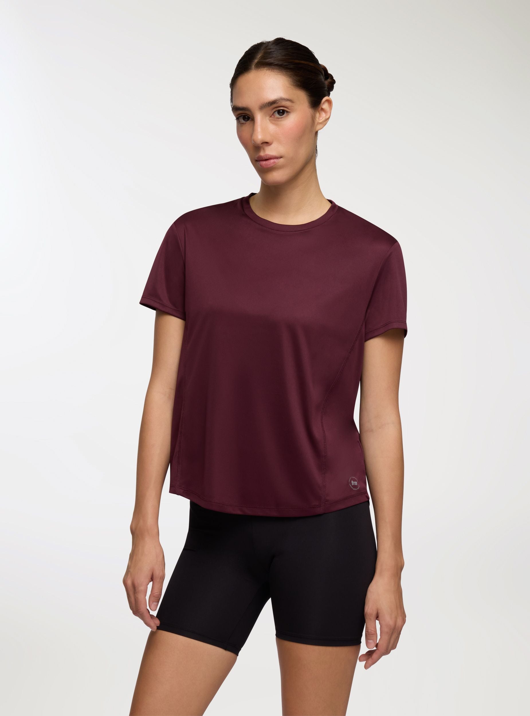 Ženska sportska majica s jednostavnim dizajnom, s zaobljenim rubom straga. Idealna za sportske aktivnosti i slobodno vrijeme. Pruža udobnost tijekom treninga ili šetnji. Regularni kroj i bočne šavove naglašavaju siluetu. Okrugli izrez i kratki rukavi čine je svestranom, savršeno se kombinira s tajicama ili kratkim hlačama za dinamičan i praktičan izgled. Jednobojni dizajn. Active linija.Detalji