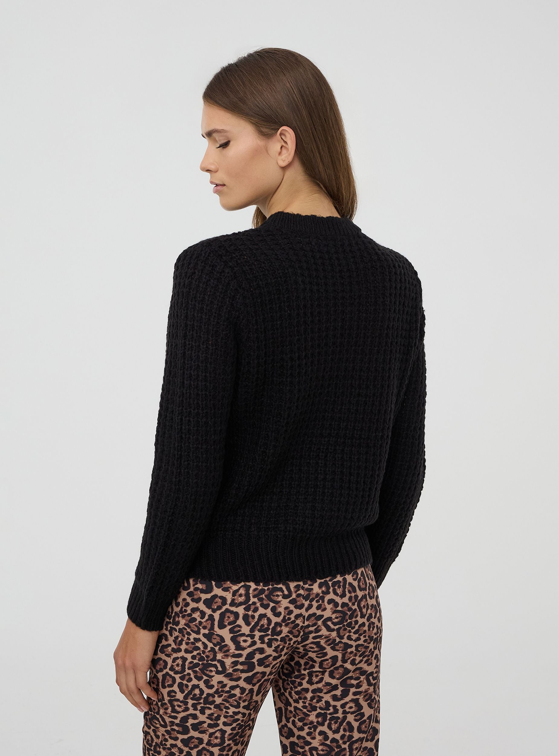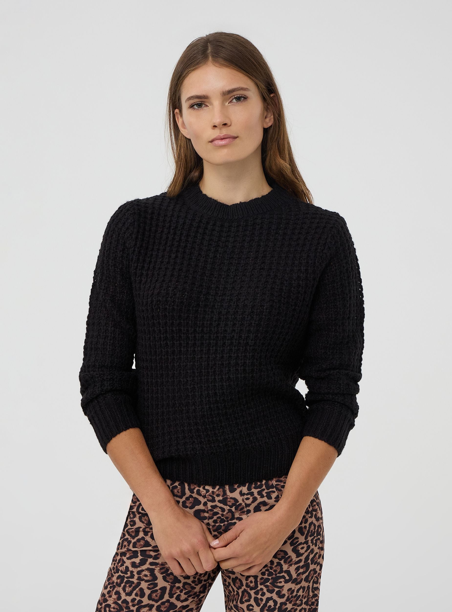 Dámský svetr s dlouhými rukávy vyrobený z měkké perforované tkaniny v jednobarevném provedení. Model s kulatým výstřihem a regular fit. Pletená struktura dodává elegantní a moderní vzhled, což činí tento svetr univerzálním kouskem ve vašem šatníku. Perfektní pro neformální příležitosti, tento svetr je ideální pro relaxační dny doma, neformální schůzky s přáteli nebo pro chic a pohodlný vzhled v kanceláři. Kombinujte ho s džíny nebo kalhotami pro každodenní outfit, který spojuje styl a praktičnost.