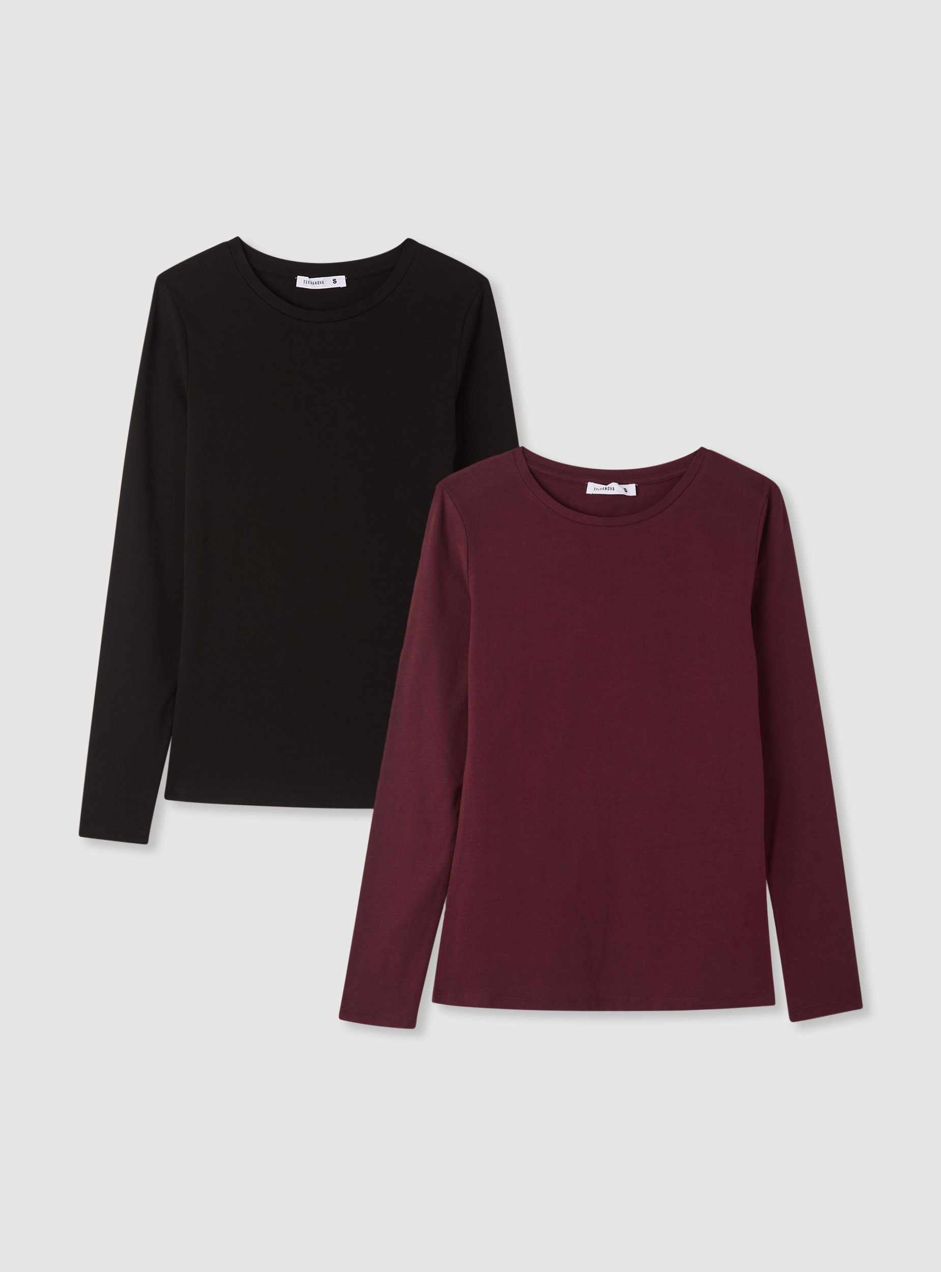 Balení 2 basic triček s dlouhým rukávem v jednobarevném provedení