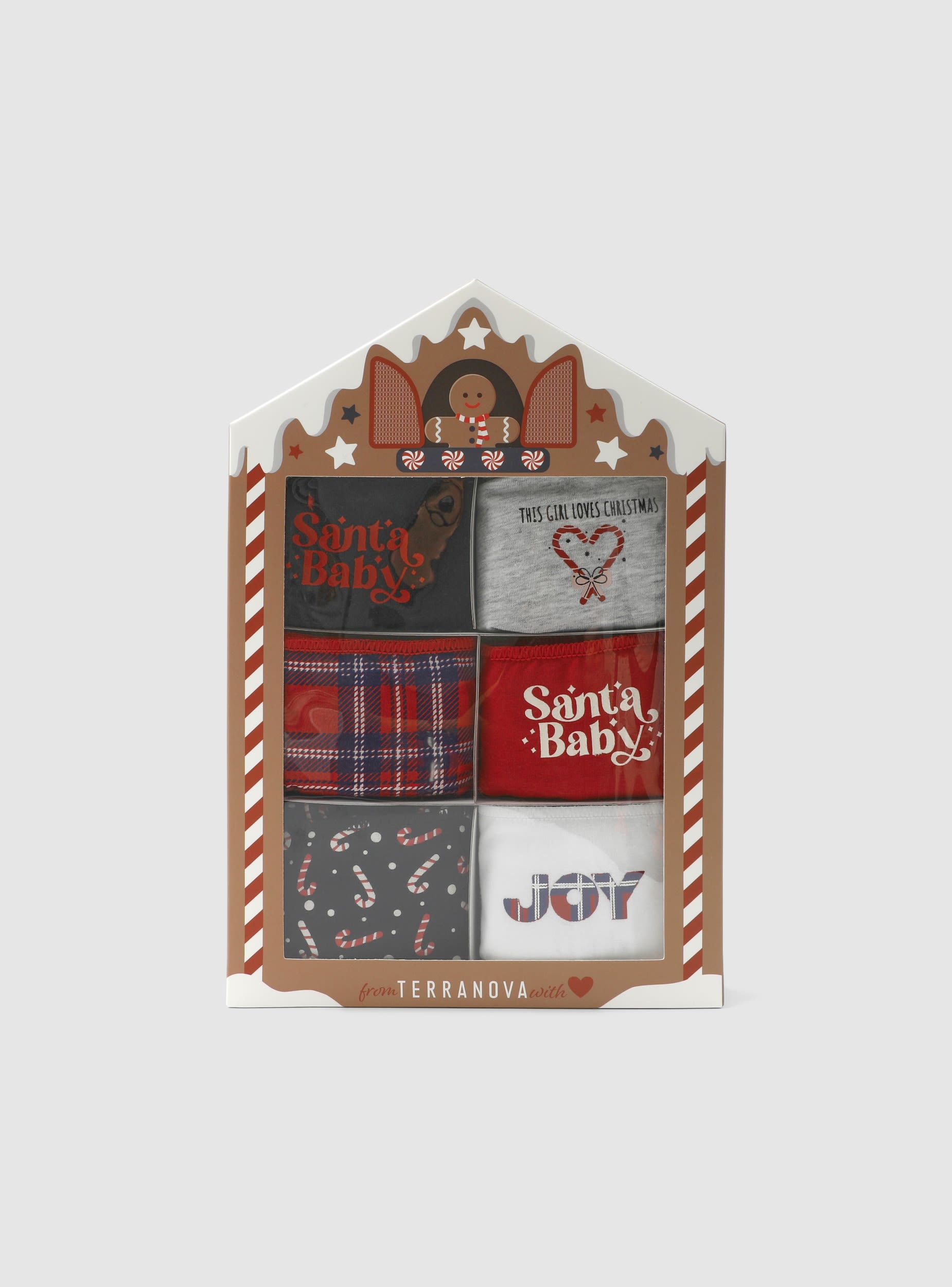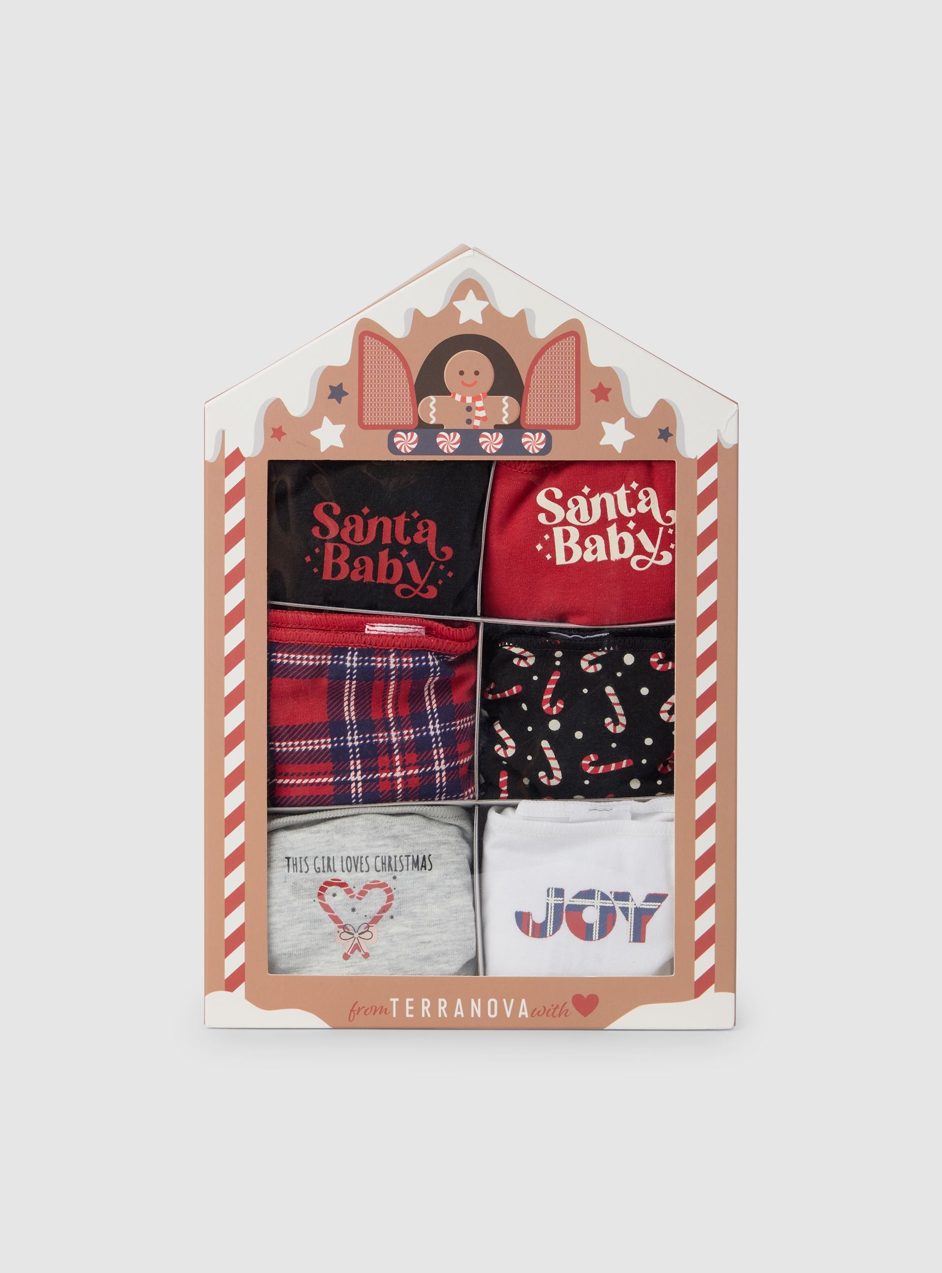 Balení obsahuje 6 dámských slipů v vánoční edici, ideální také jako dárek. Každý slip je zdoben grafikou s vánočními motivy, zábavnými a ženskými, aby přidal nádech radosti k intimnímu prádlu. Exkluzivní obal, inspirovaný perníkovou chaloupkou, se mění na praktický šperkovník nebo kosmetickou taštičku, ideální pro stylové uspořádání malých doplňků. Pohodlná, kreativní a znovu použitelná sada, navržená pro ty, kteří mají rádi spojení pohodlí a originality.