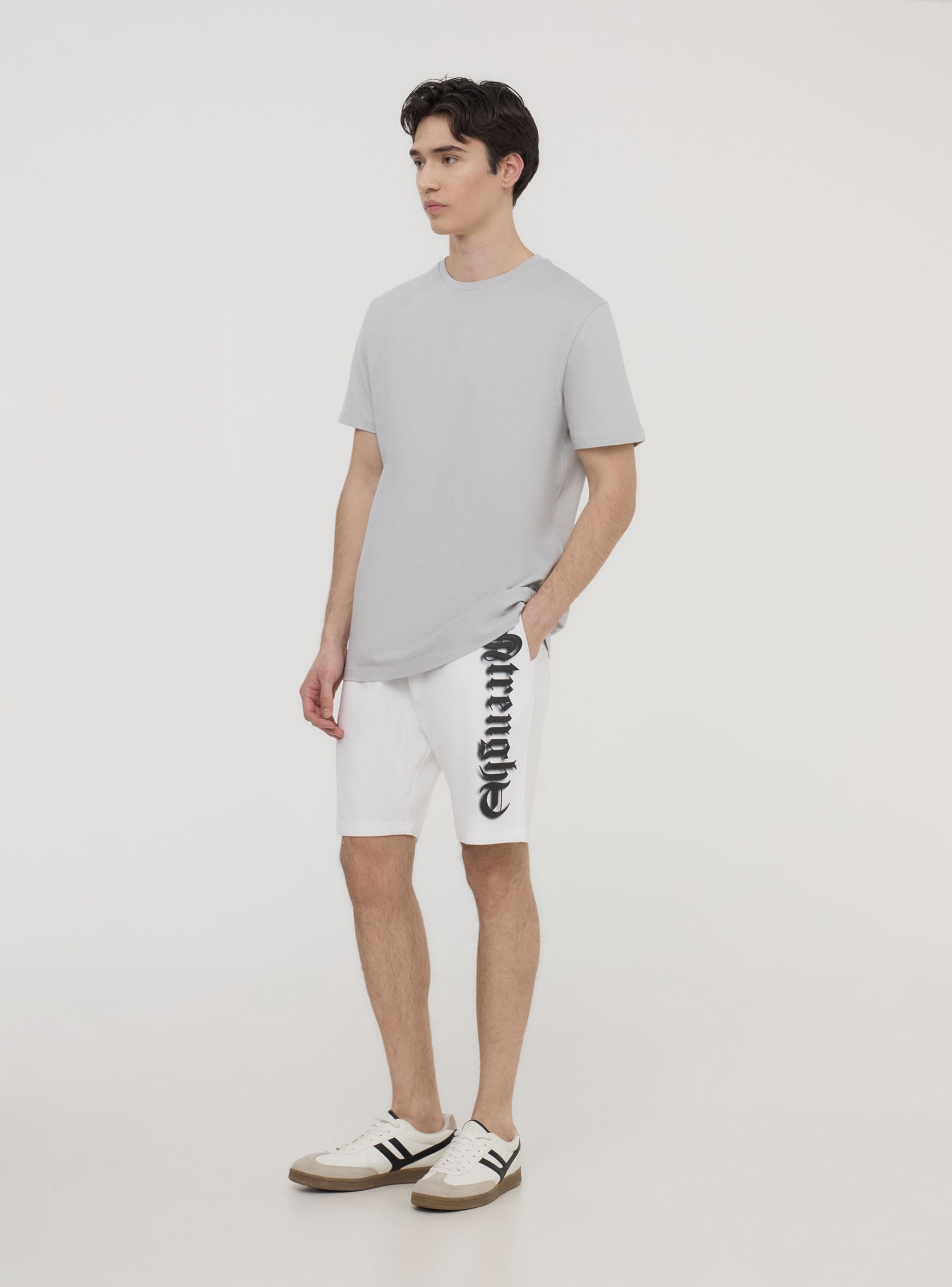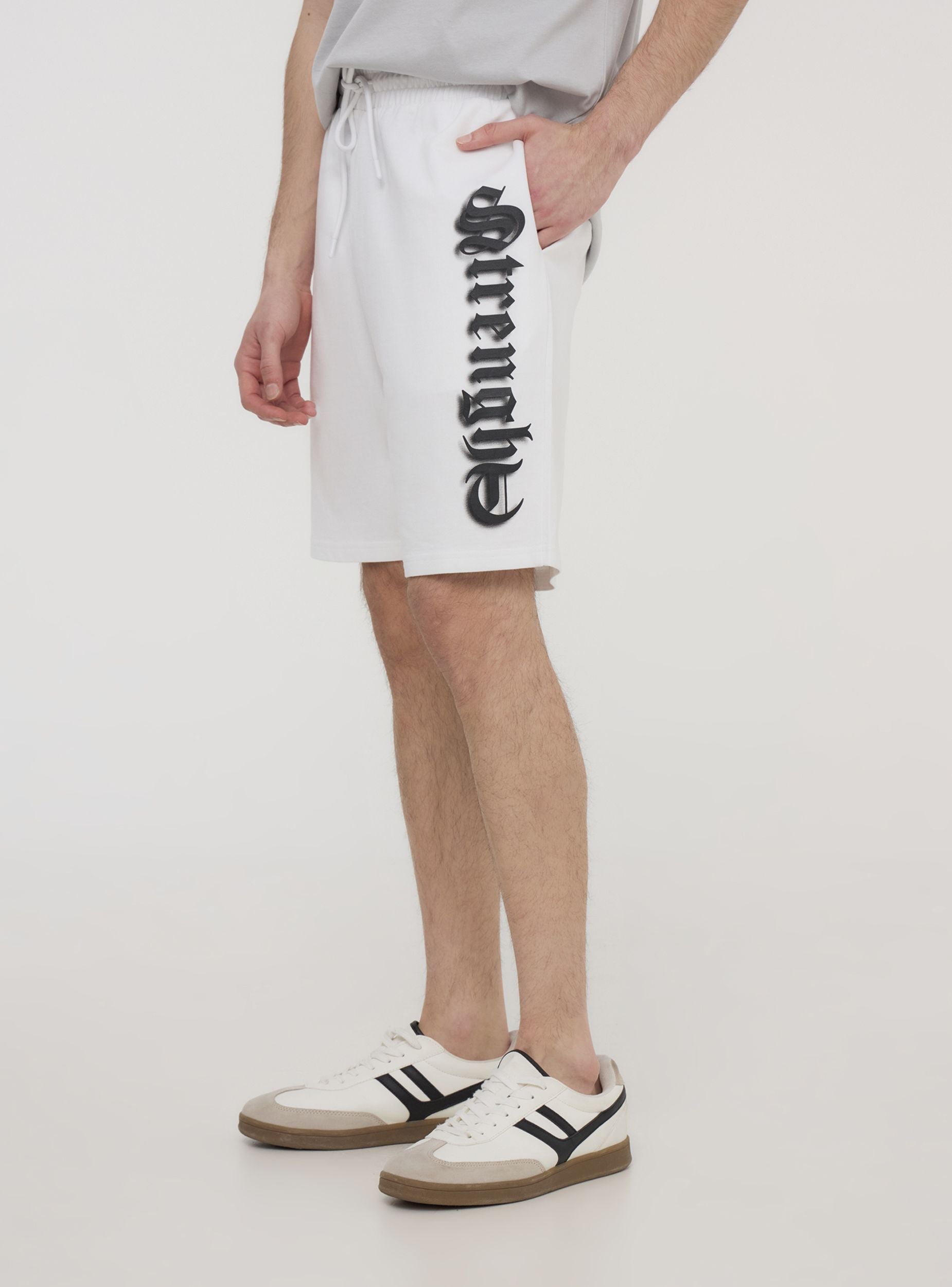 Pánské lehké sportovní šortky navržené pro sportovní a energický vzhled. Šňůrka v pase zajišťuje nastavitelný střih, zatímco boční kapsy přidávají praktičnost. Gotický nápis na boku dodává osobitý charakter, ideální pro ty, kteří mají rádi originální detaily. Ideální na volný čas a sportovní aktivity, snadno se kombinují s tričky a teniskami pro moderní a dynamický outfit.