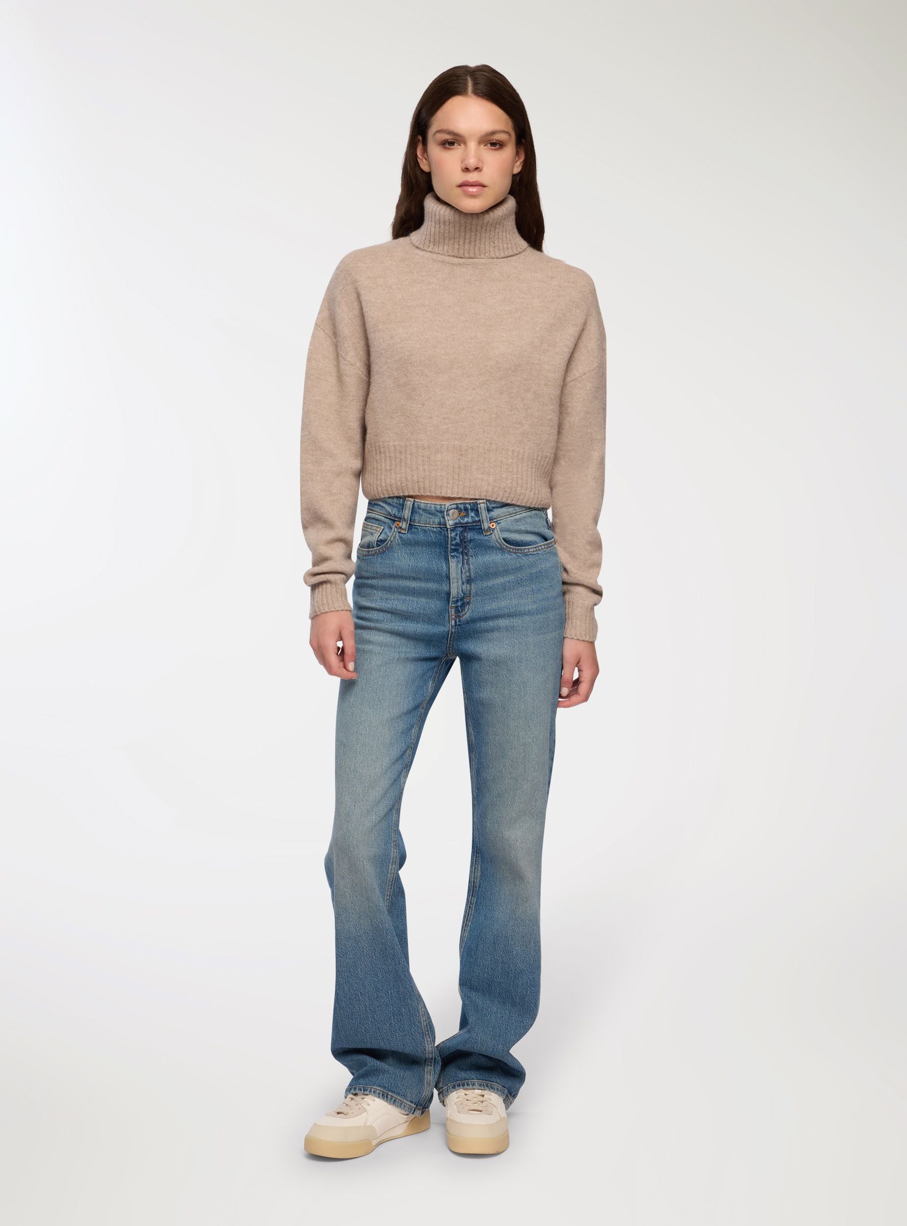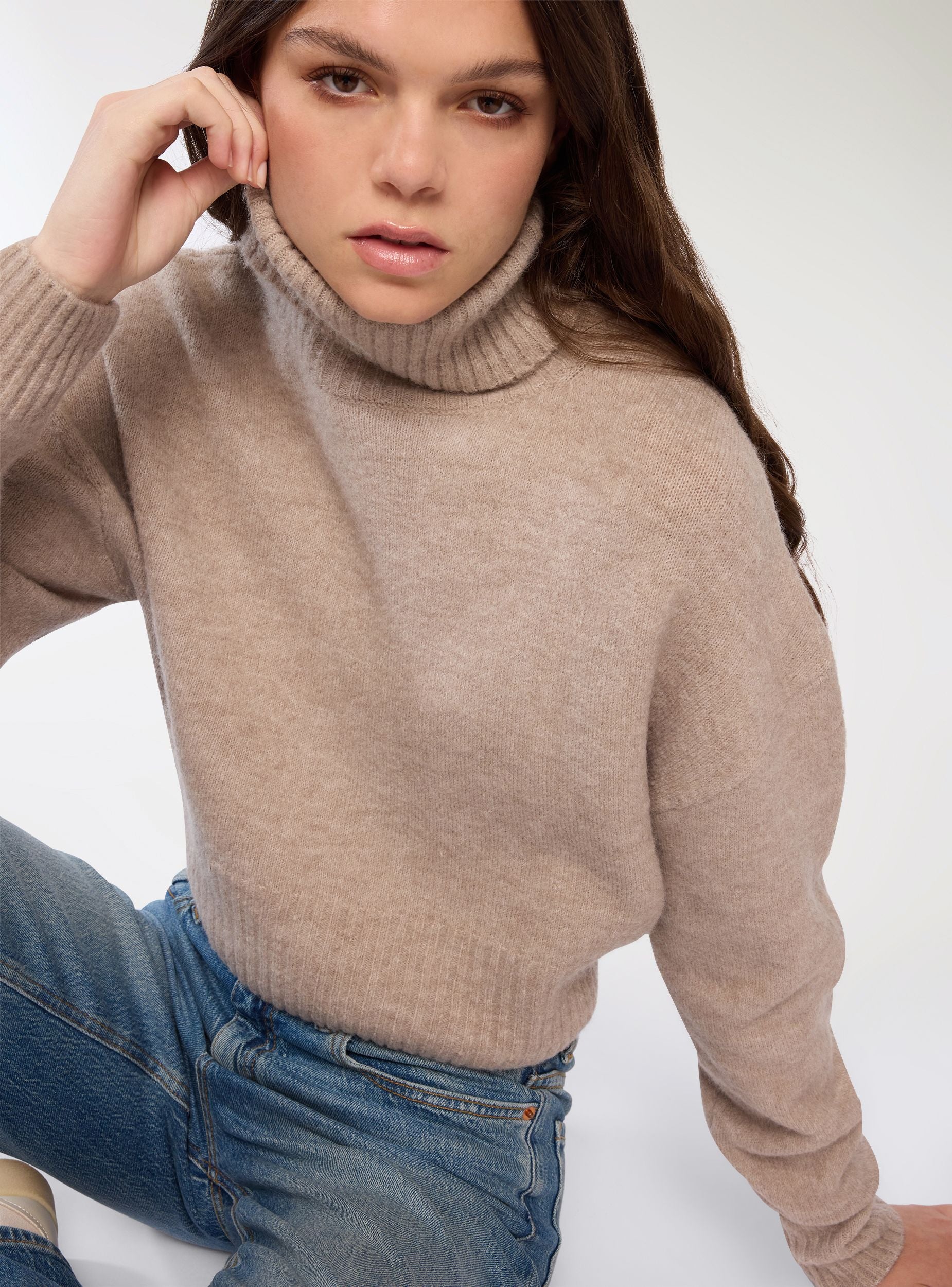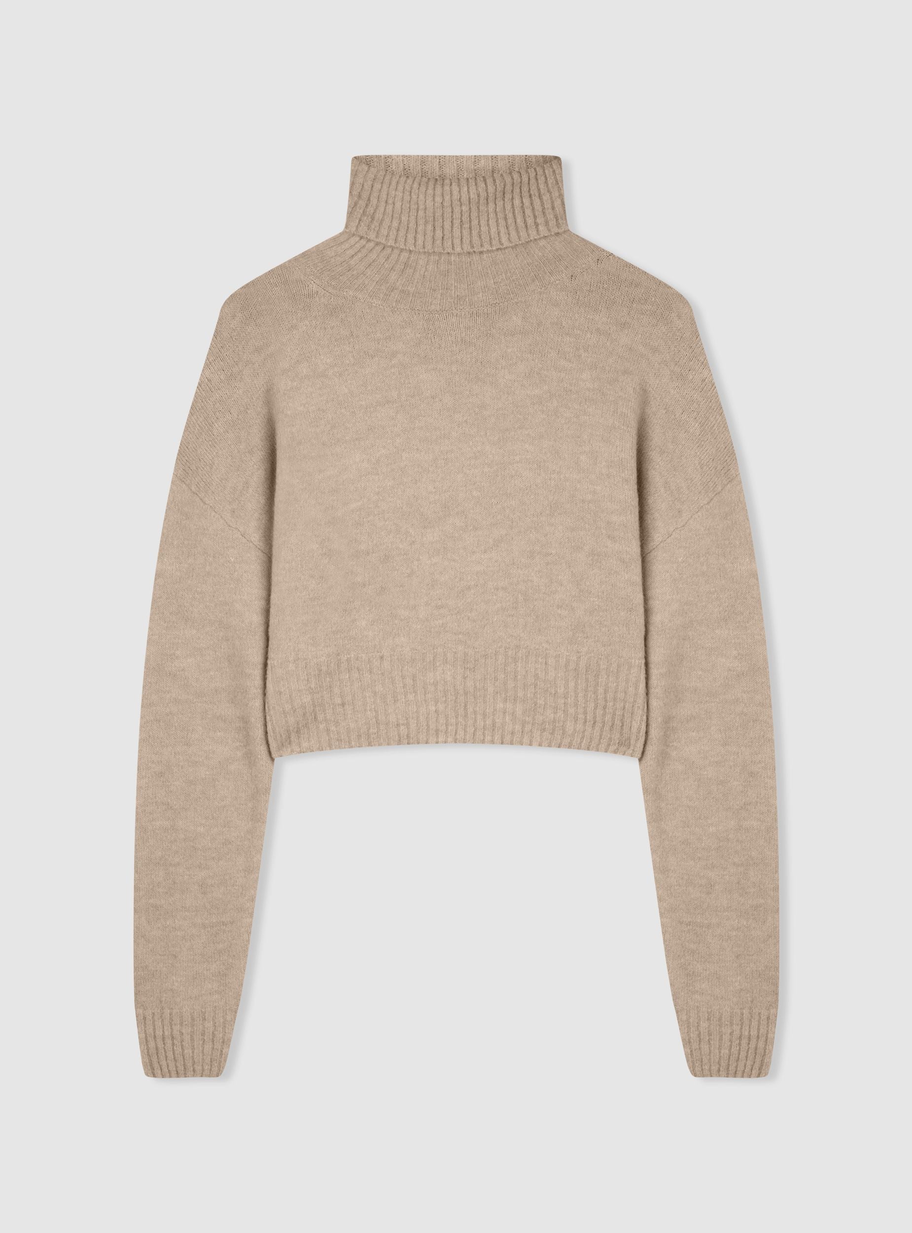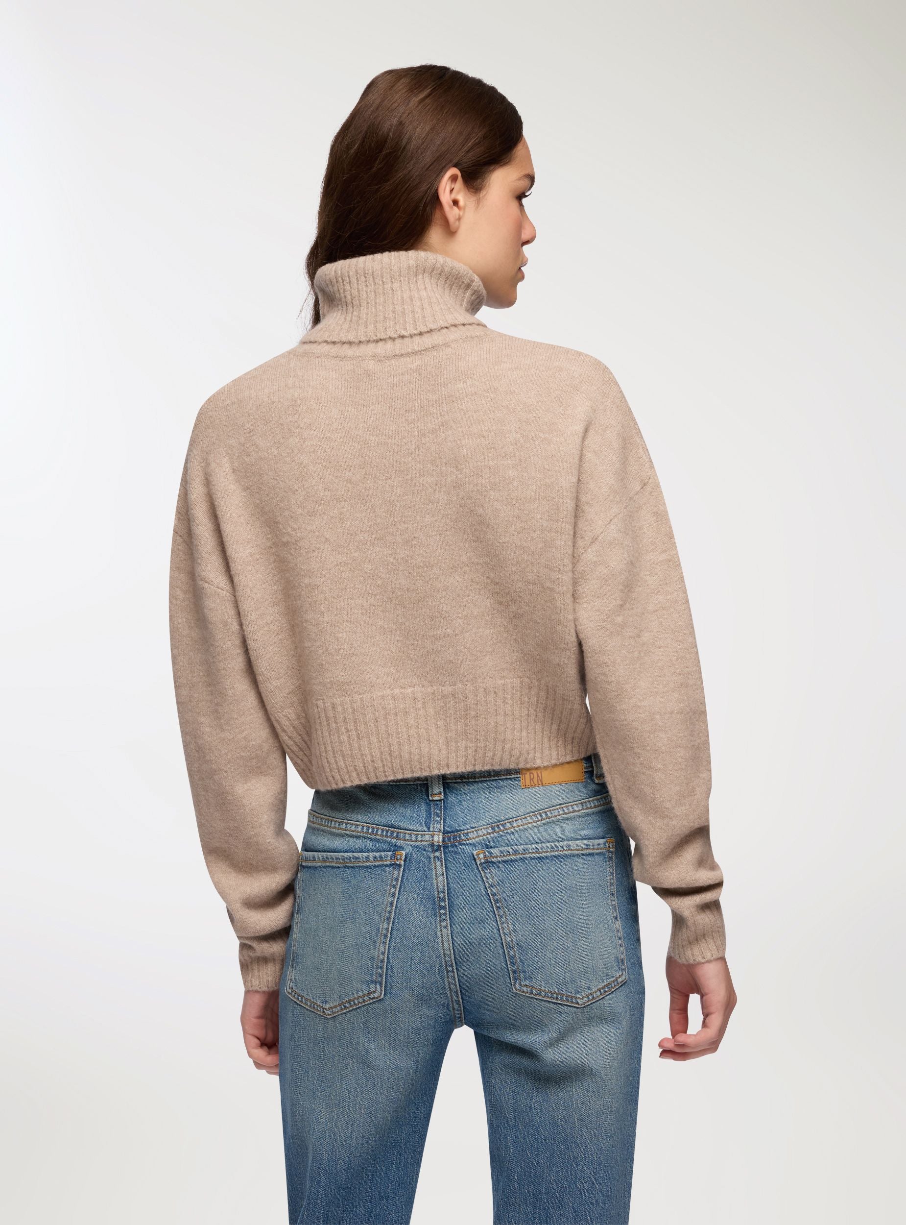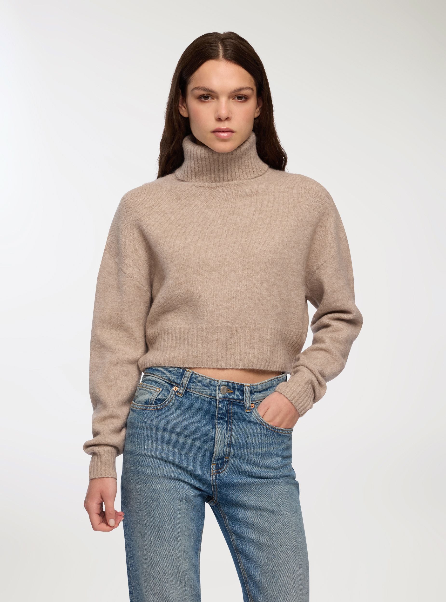 Dámský těžký svetr s crop designem a rolákem. Ideální pro ležérní a moderní vzhled, tento svetr vyniká svou krátkou délkou a vysokým límcem, který dodává nádech elegance. Perfektní k vysokým kalhotám nebo sukním pro všestranný a módní outfit. Dlouhé rukávy a žebrovaný lem doplňují design, díky čemuž je vhodný pro různé příležitosti.Detaily