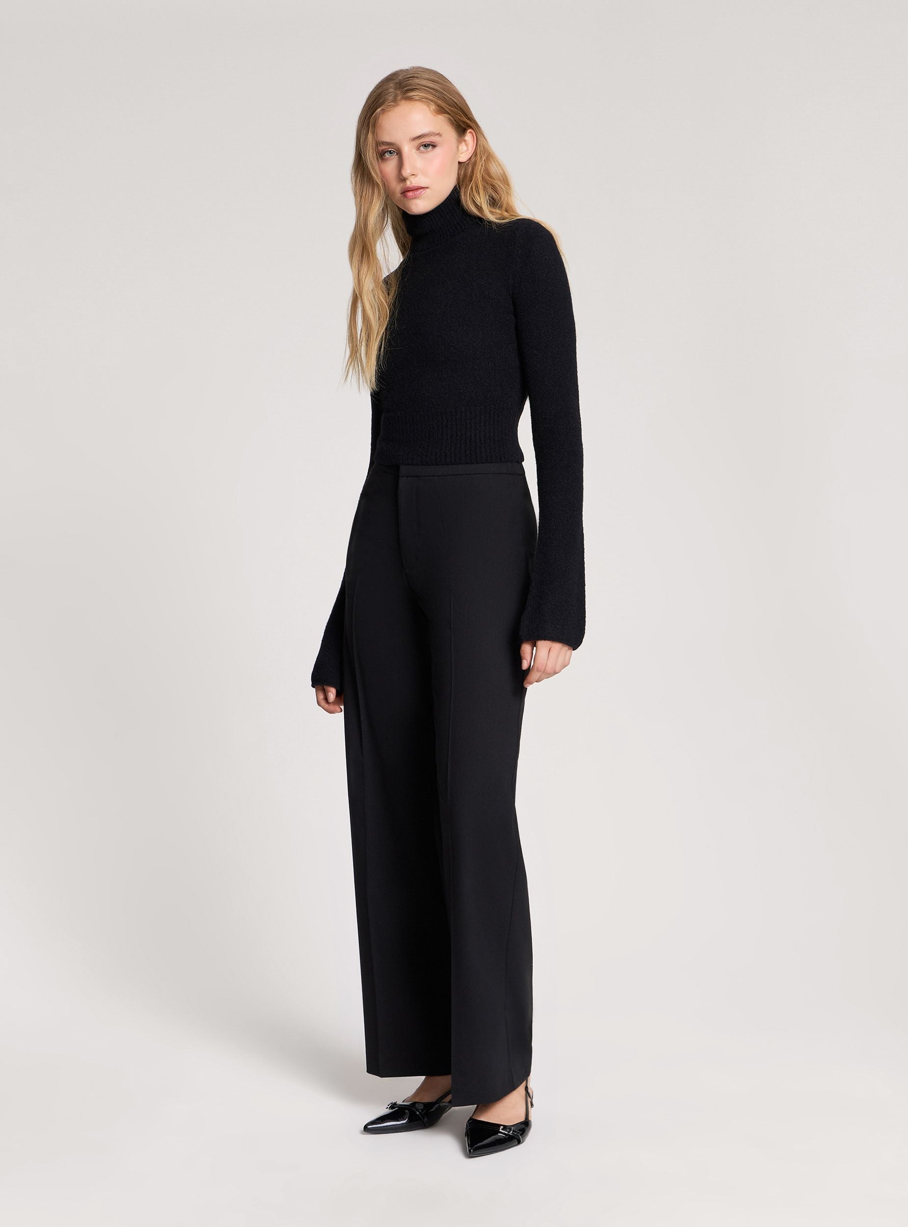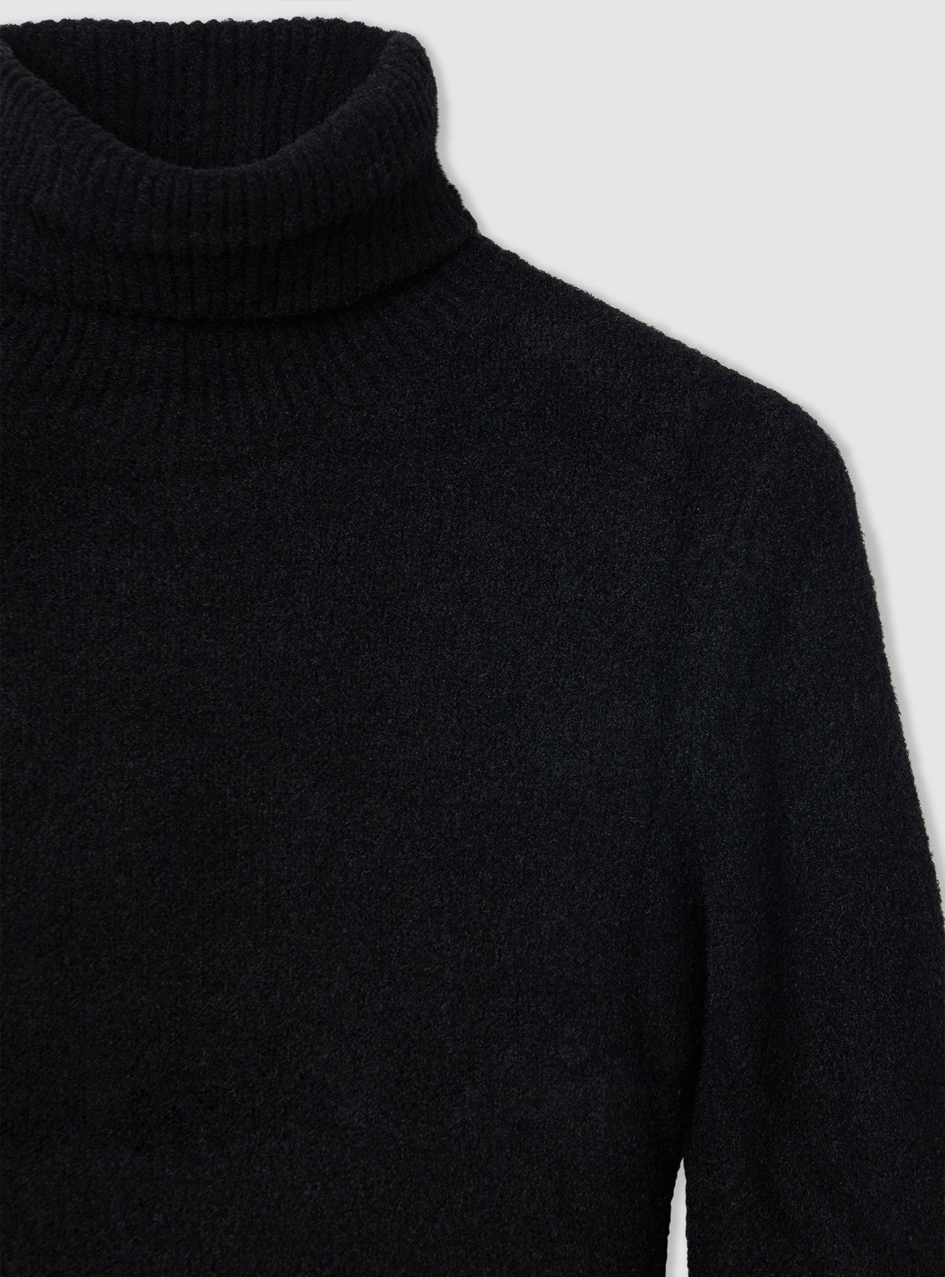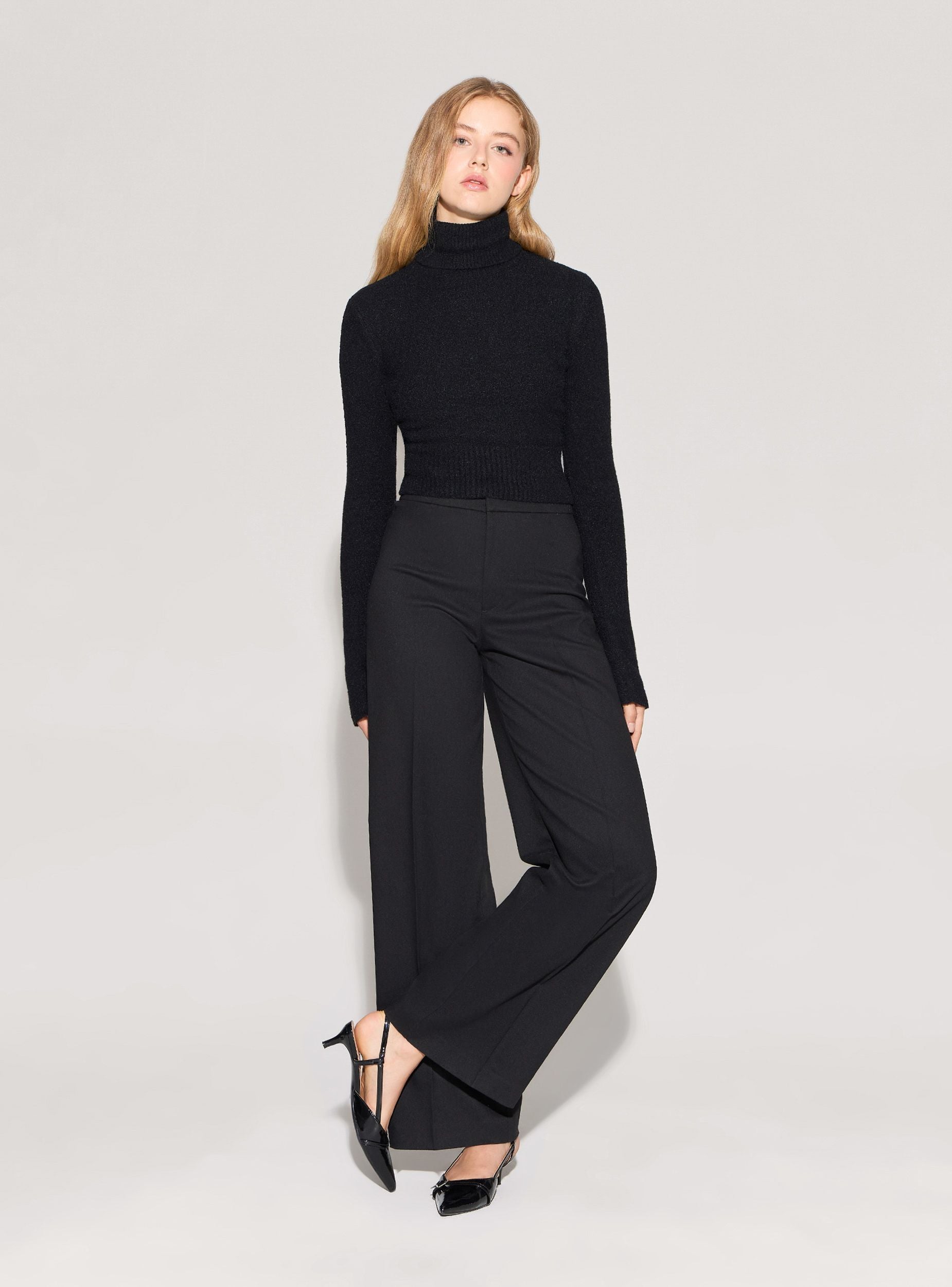 Dámský svetr s crop designem a jednobarevným provedením. Má vysoký rolák, který dodává eleganci a teplo. Dlouhé a široké rukávy nabízejí moderní a pohodlný vzhled. Ideální k kombinaci s kalhotami s vysokým pasem nebo sukněmi, perfektní pro neformální příležitosti nebo pro vytvoření sofistikovaných outfitů.Detaily