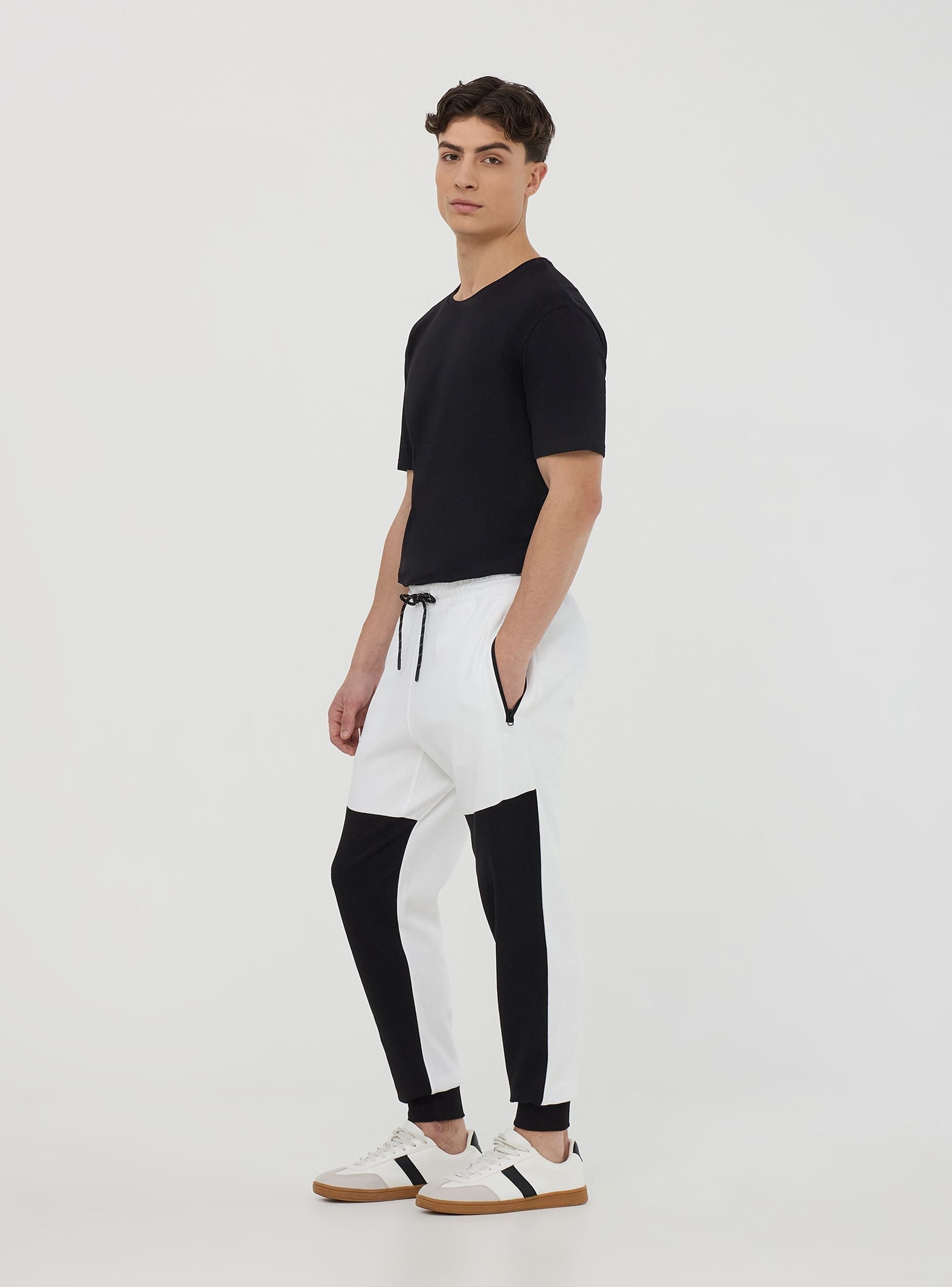 Pánské technické kalhoty s dvoubarevným designem a těžkou směsí bavlny, ideální pro sportovní a moderní vzhled. Mají praktické boční kapsy se zipem a nastavitelnou šňůrku v pase, nabízejí pohodlí a funkčnost. Perfektní pro venkovní tréninky nebo chvíle odpočinku, hodí se k mikinám nebo technickým tričkům pro dynamický a funkční styl.Detaily