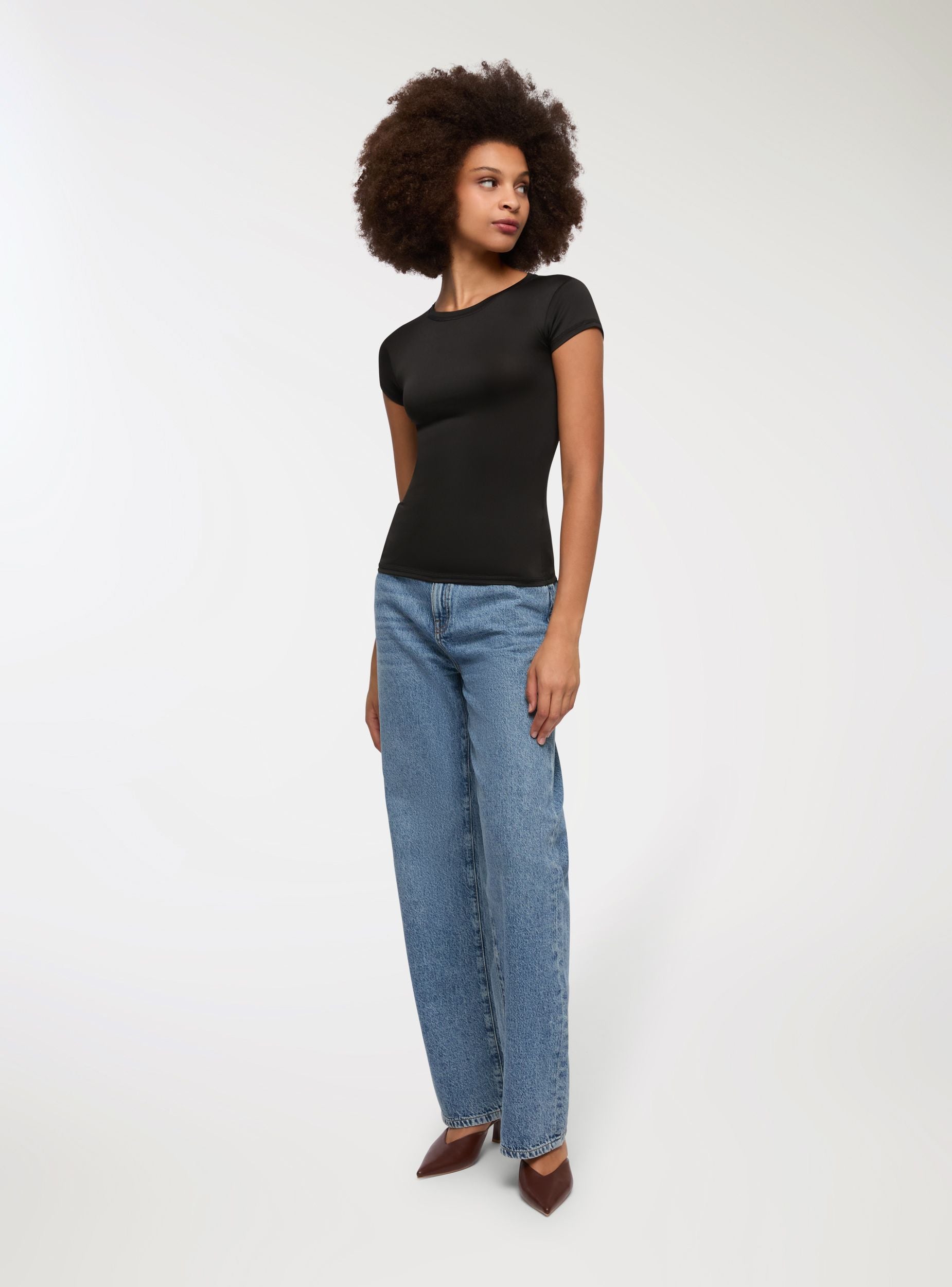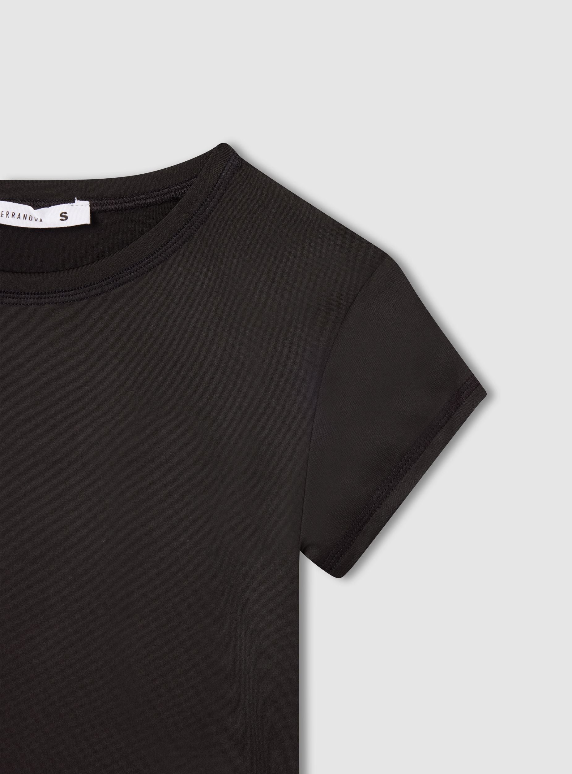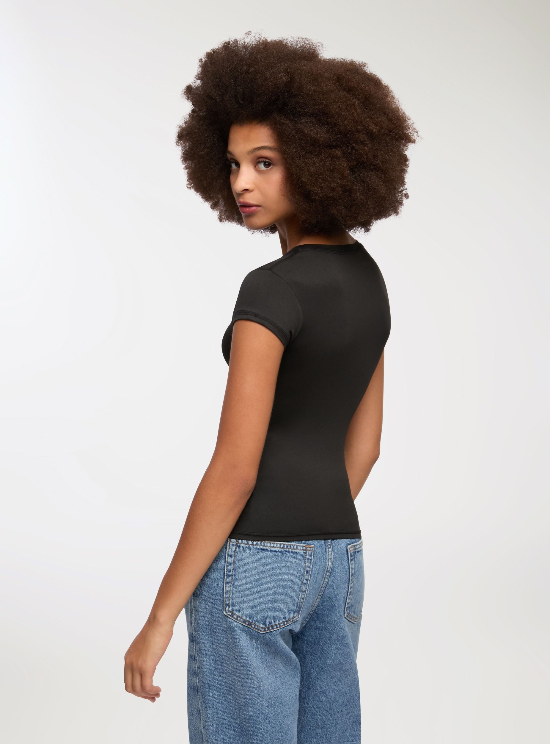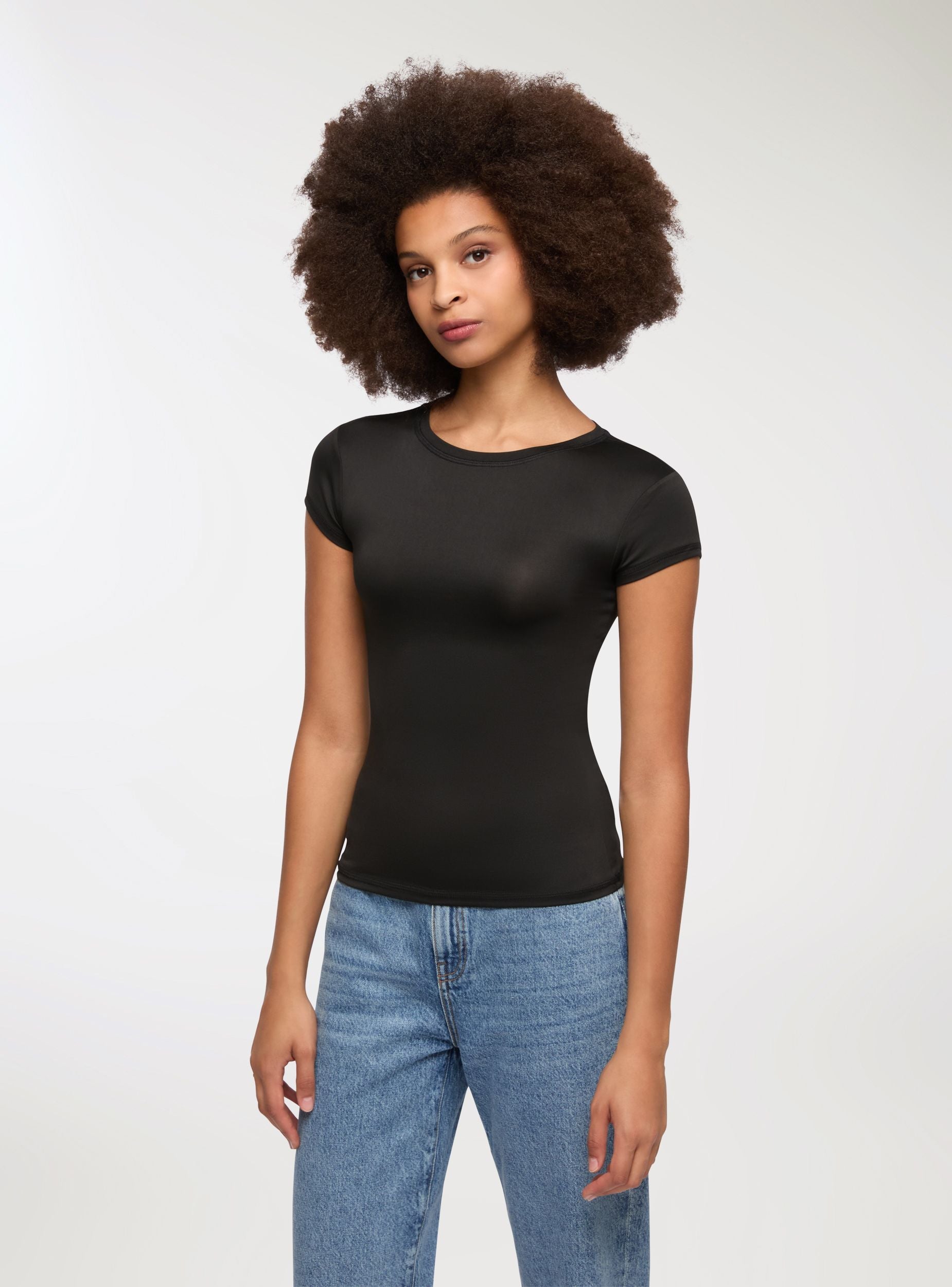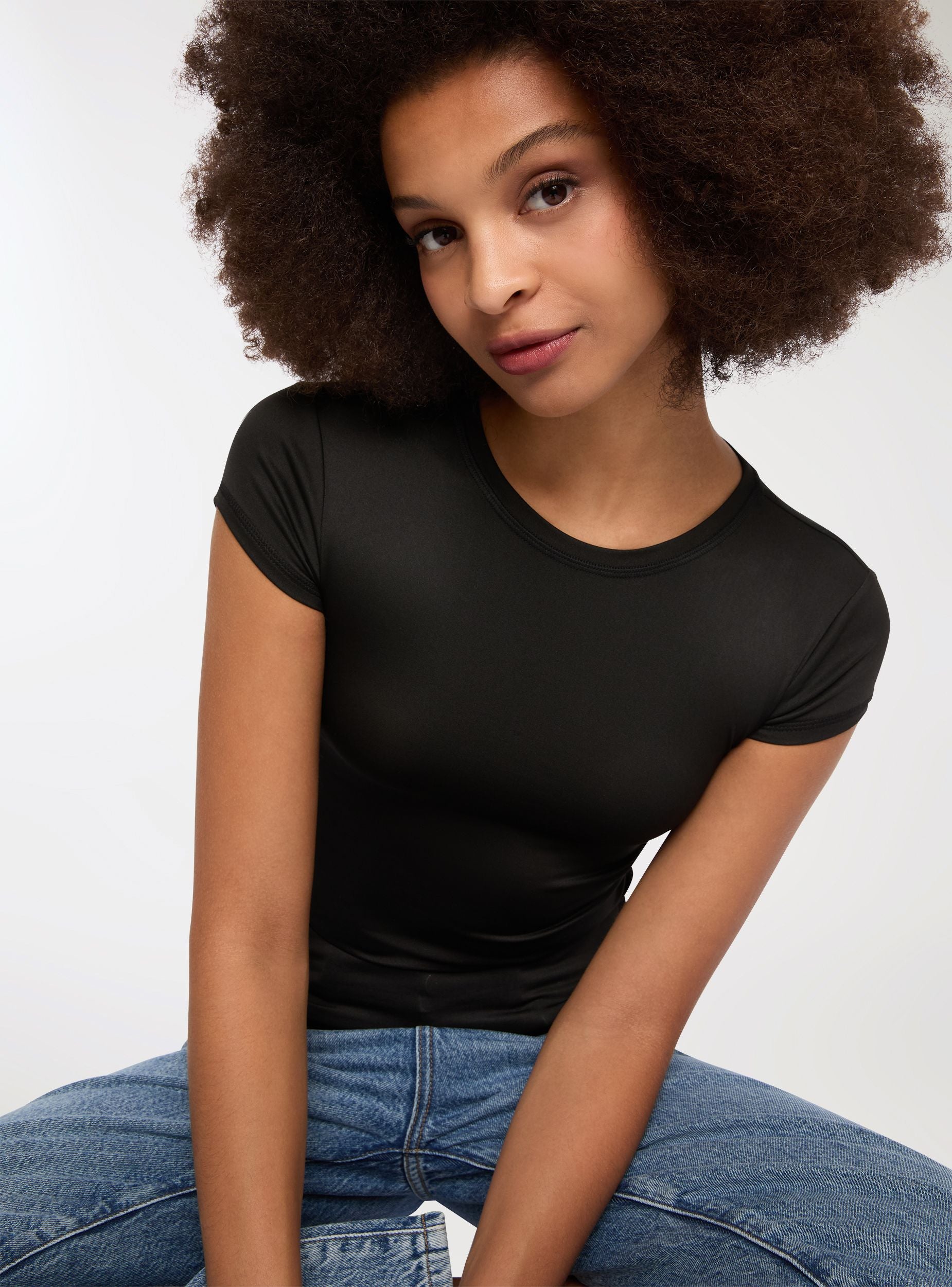 Dámské tričko s jednobarevným designem, vyrobené z elastické látky, ideální pro ležérní a všestranný vzhled. Má klasický střih s krátkými rukávy a kulatým výstřihem, perfektní k džínám nebo kalhotám pro každodenní outfit. Vhodné pro různé příležitosti, od volného času po neformální setkání, zaručuje pohodlí a styl za všech okolností.