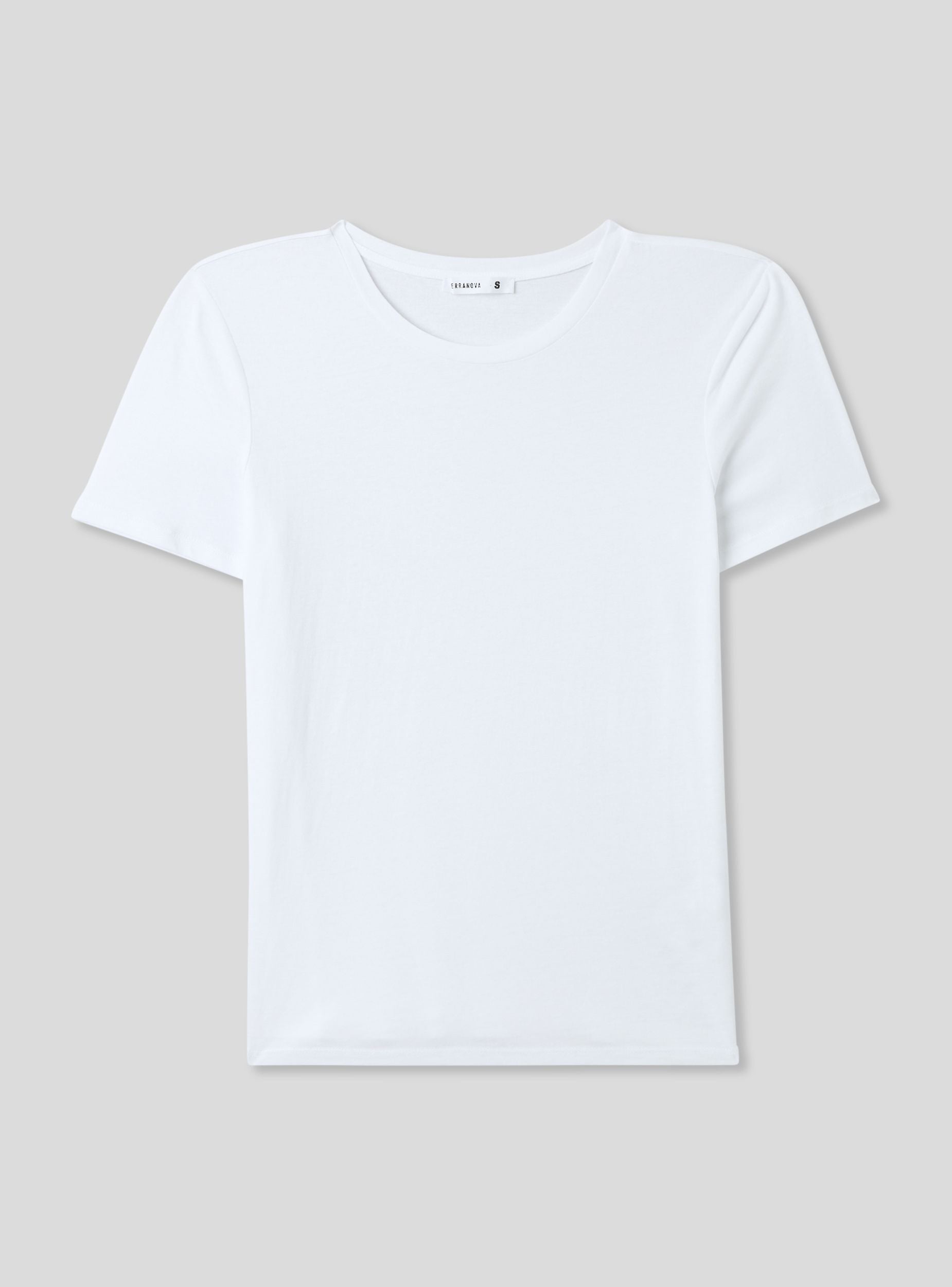 Dámské základní tričko z jednobarevného bavlněného žerzeje. Model s kulatým výstřihem, krátkými rukávy. Casual kousek ideální pro vaše každodenní outfity. Regular fit.