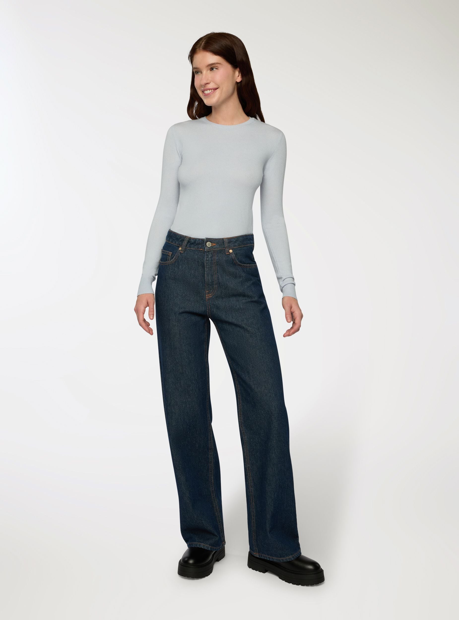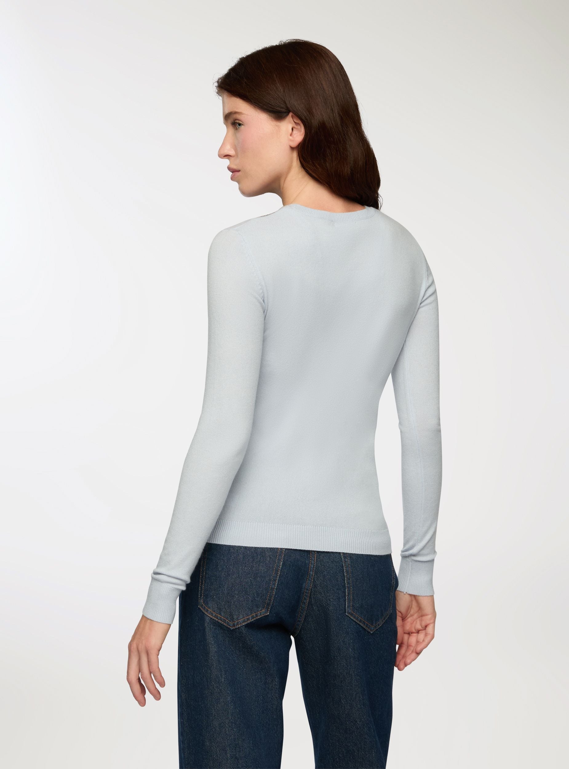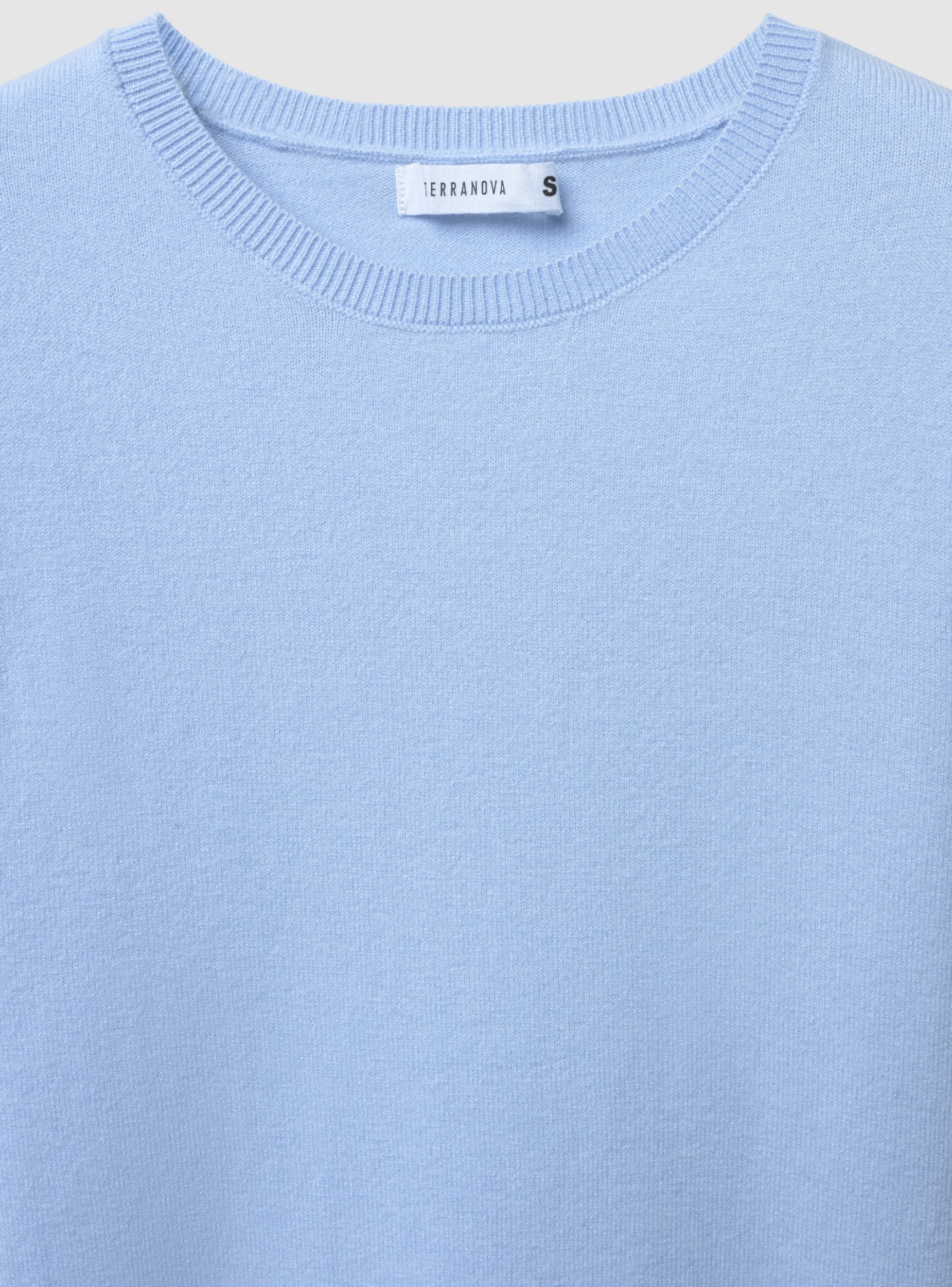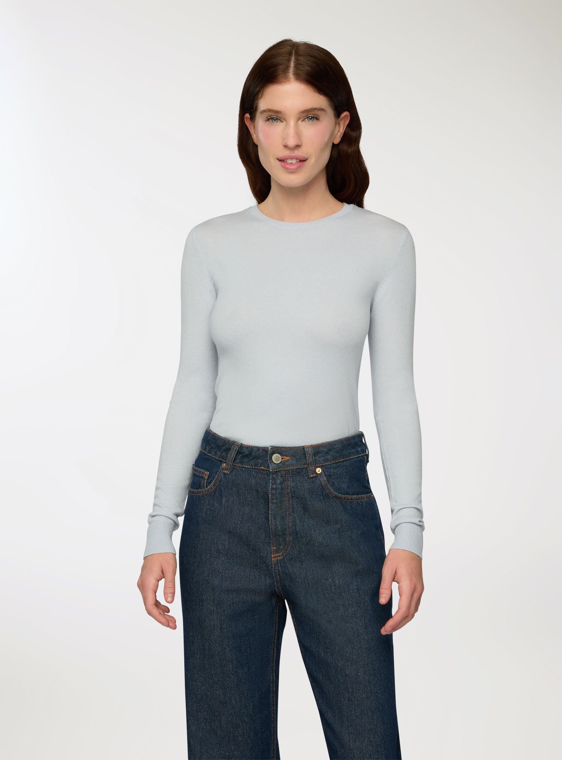 Dámský základní svetr s dlouhými rukávy a kulatým výstřihem a žebrovanými detaily. Tento svetr je základním a nadčasovým kouskem, navrženým tak, aby se hodil do každého ročního období a příležitosti. Minimalistický design s kulatým výstřihem a dlouhými rukávy ho činí ideálním pro nošení samostatně nebo jako vrstvu pod bundy, kardigany nebo blejzry. Žebrované detaily na límci, spodním lemu a manžetách dodávají pečlivý a diskrétní dotek, který zvýrazňuje jednoduchost modelu. Měkký, univerzální a pohodlně padnoucí, je to základní svetr, který by měl být vždy po ruce v každodenním šatníku, ideální pro snadné vytváření jak ležérních, tak elegantnějších outfitů.Detaily