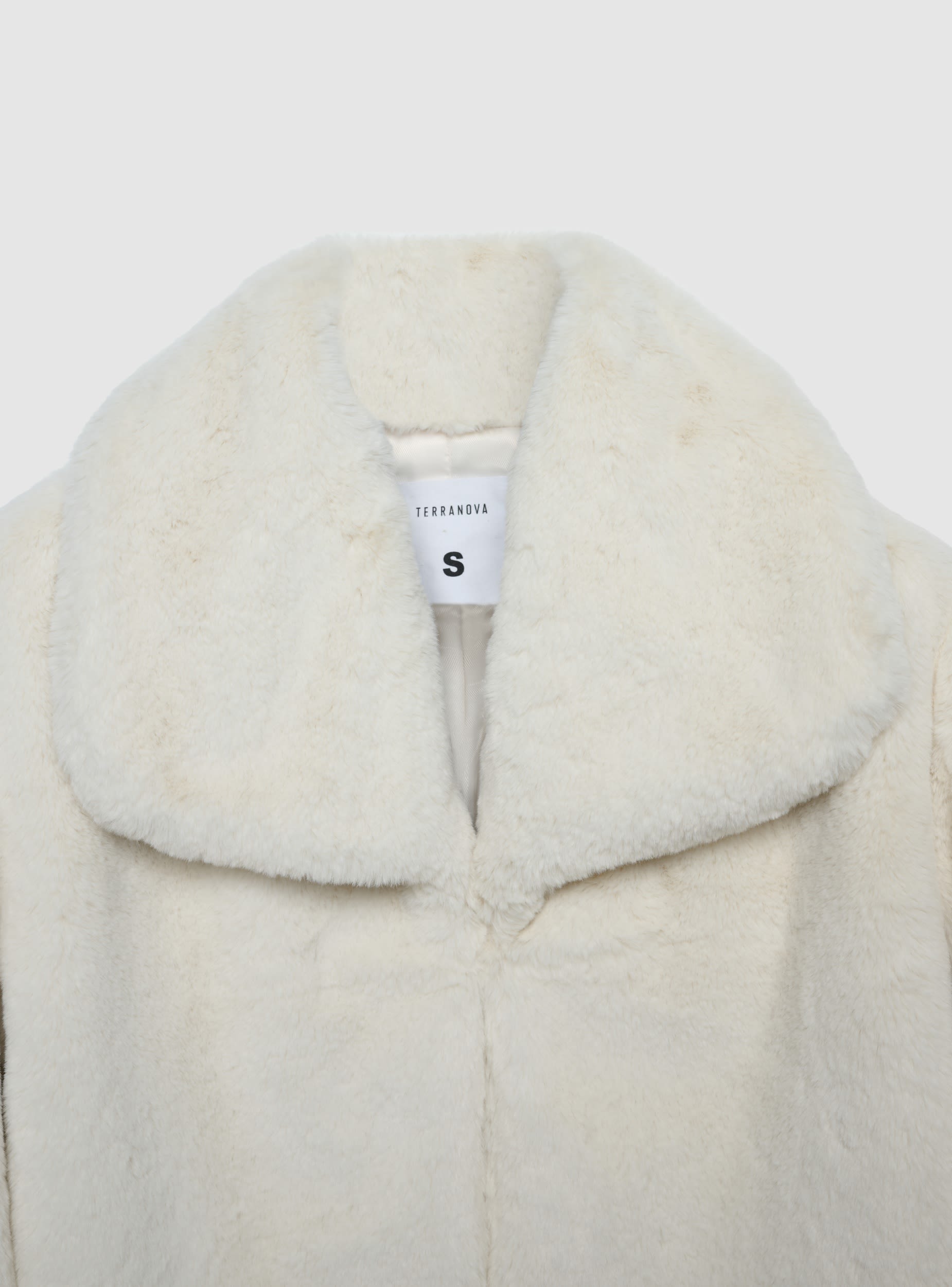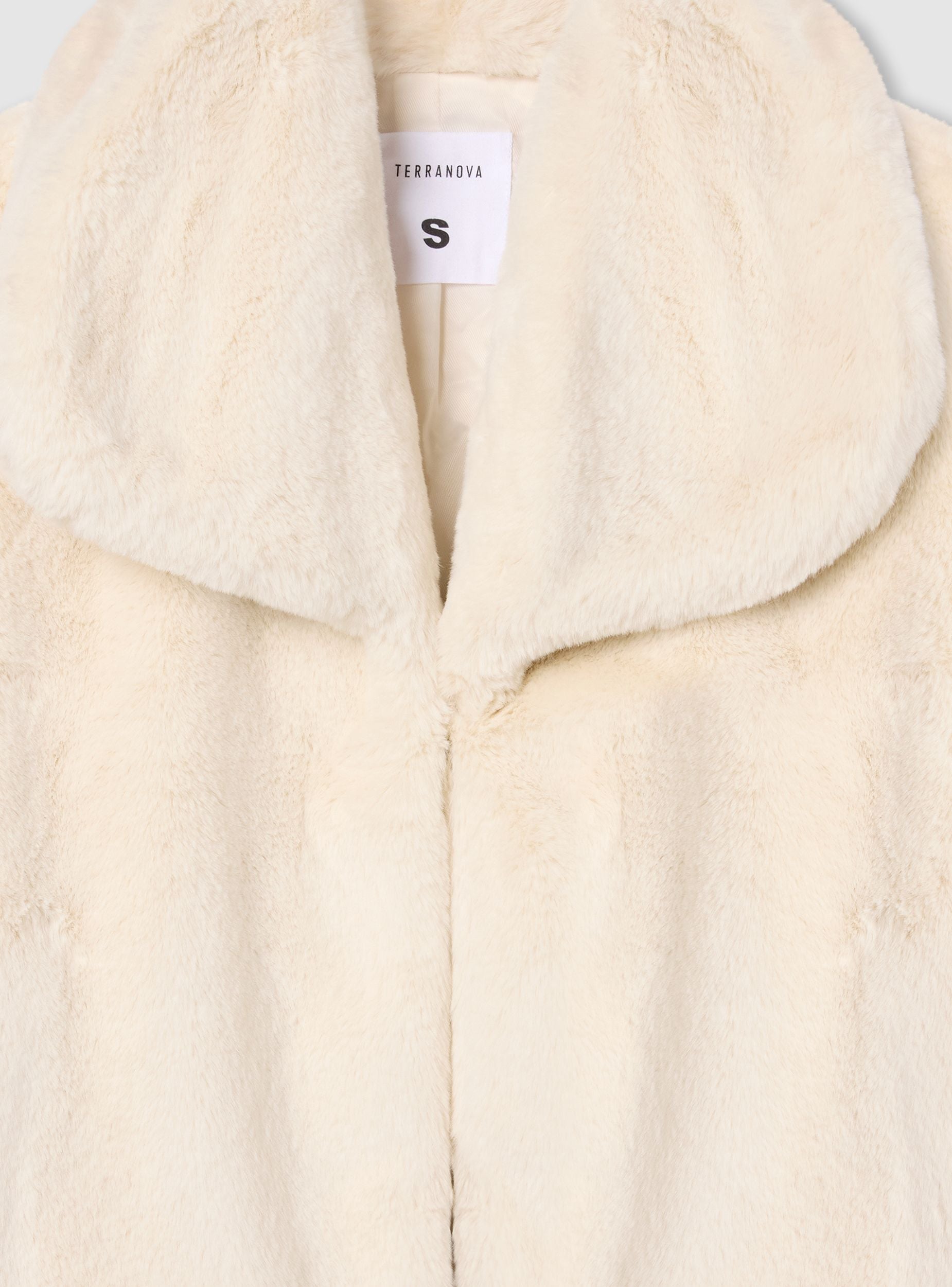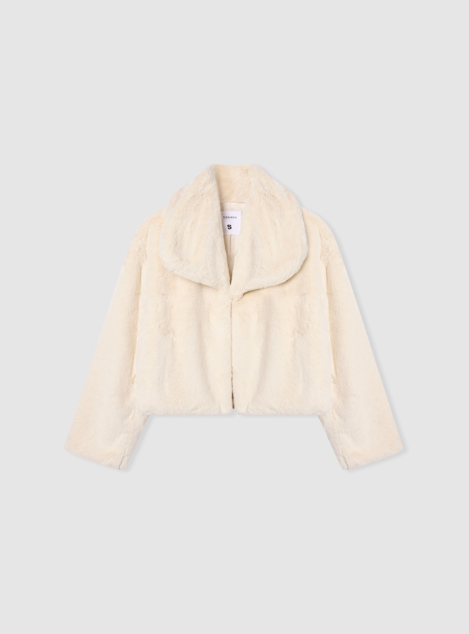 Dámská bunda s širokým límcem, vyrobená z umělé kožešiny pro sofistikovaný a moderní vzhled. Zapínání na háček. Perfektní pro doplnění elegantních i ležérních outfitů, tato bunda nabízí pohodlný střih a univerzální design. Ideální pro chladné období, snadno se kombinuje s kalhotami nebo sukněmi pro jedinečný stylový dotek.Detaily