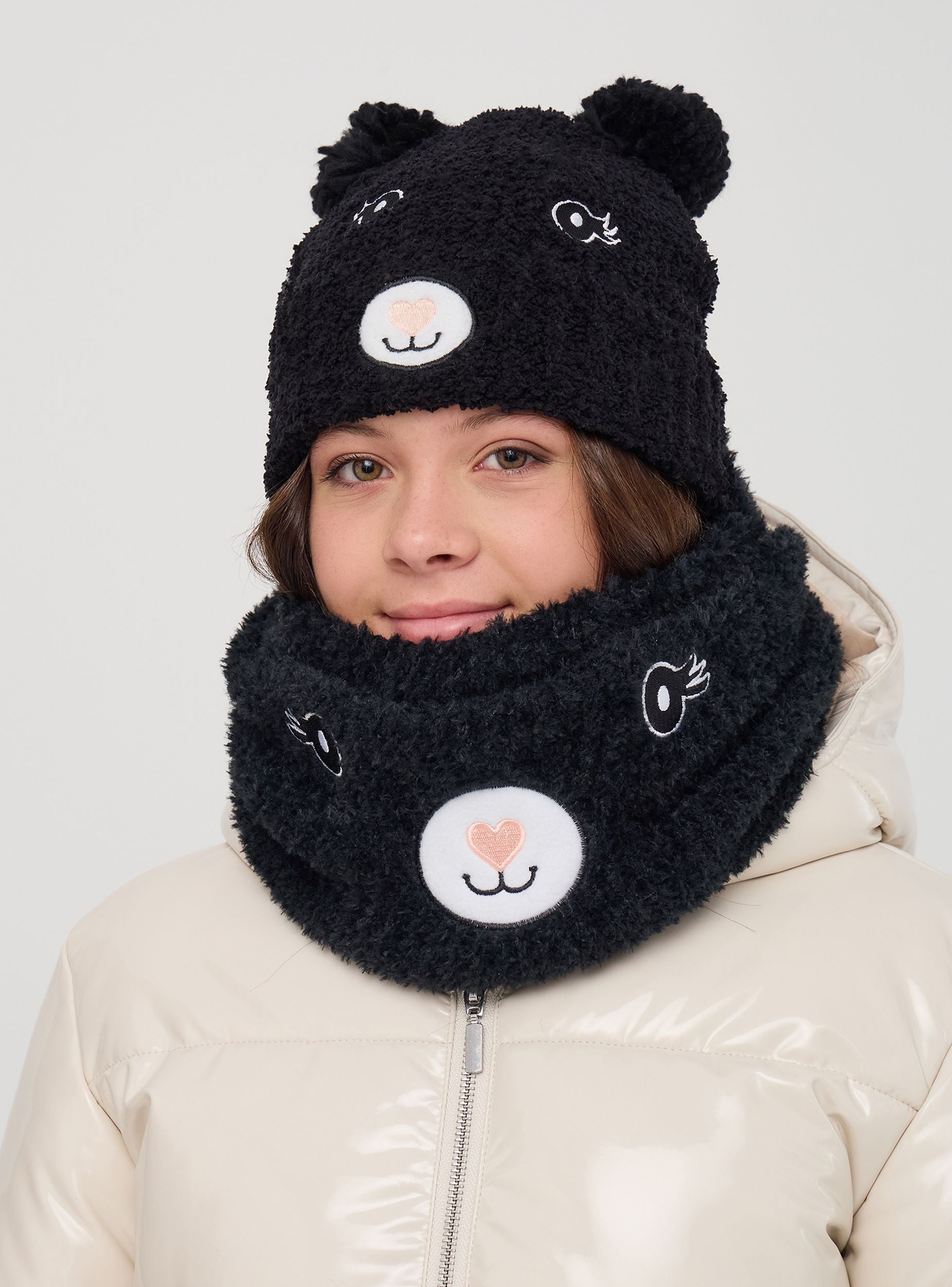 Dětský šál poskytuje teplo a pohodlí. Má krásnou výšivku na přední straně s obličejem medvídka. Tento doplněk je ideální pro každodenní a neformální nošení, přidává dotek sladkosti každému vzhledu.Detaily