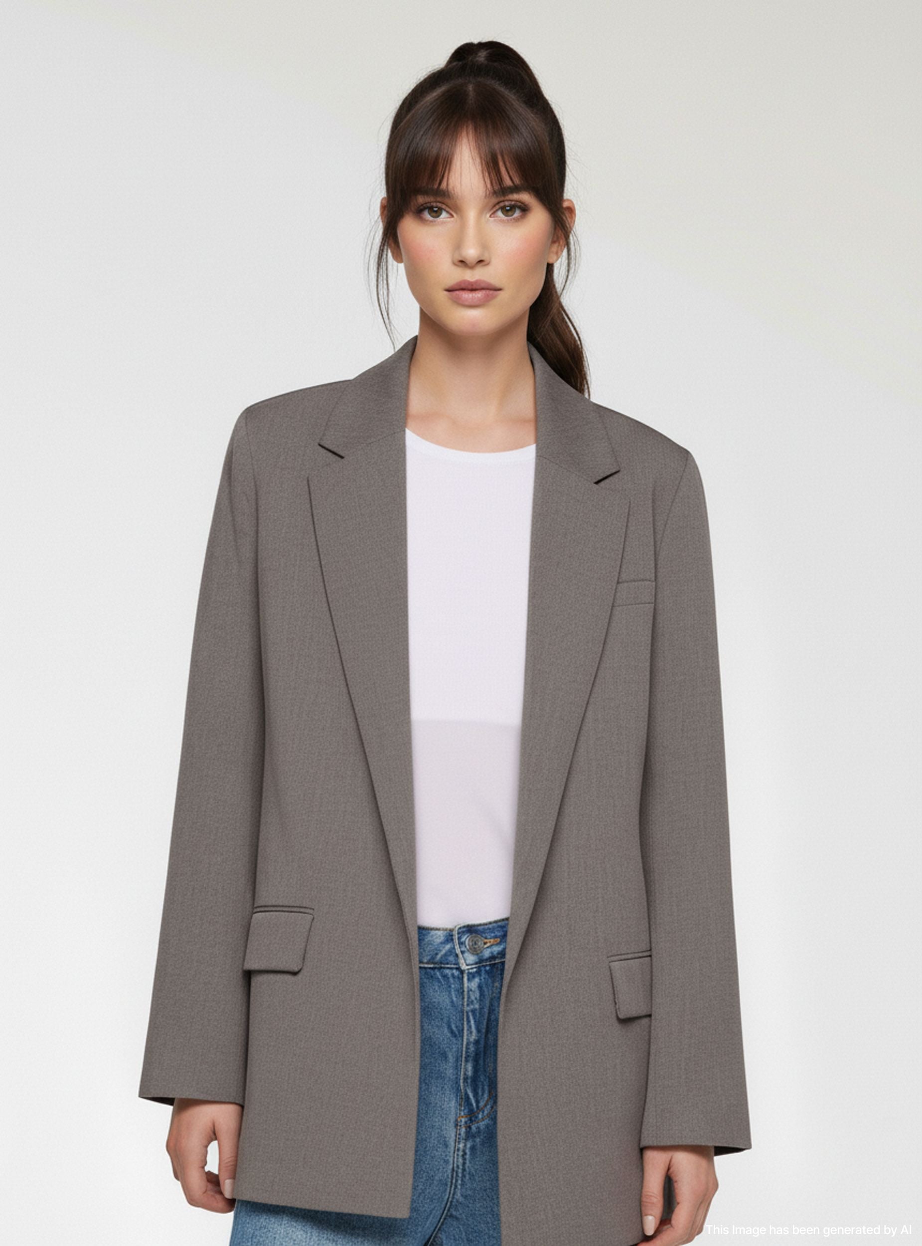 Dámská bunda s otevřeným designem, ideální pro formální i neformální vzhled. Má klasický střih. Perfektní k elegantním kalhotám nebo džínám pro univerzální outfit. Klasický límec a dlouhé rukávy doplňují design, díky čemuž je vhodná pro různé příležitosti.