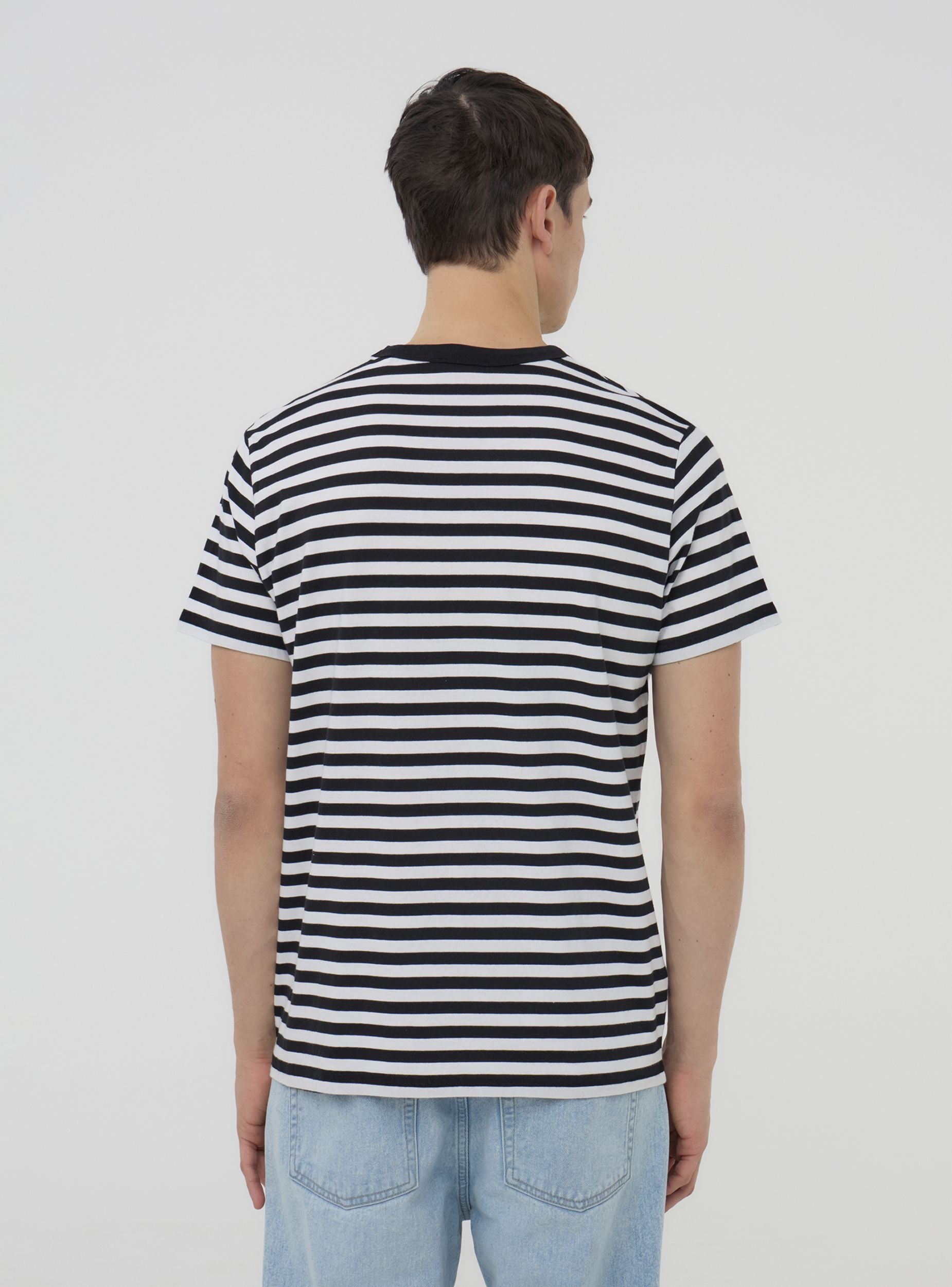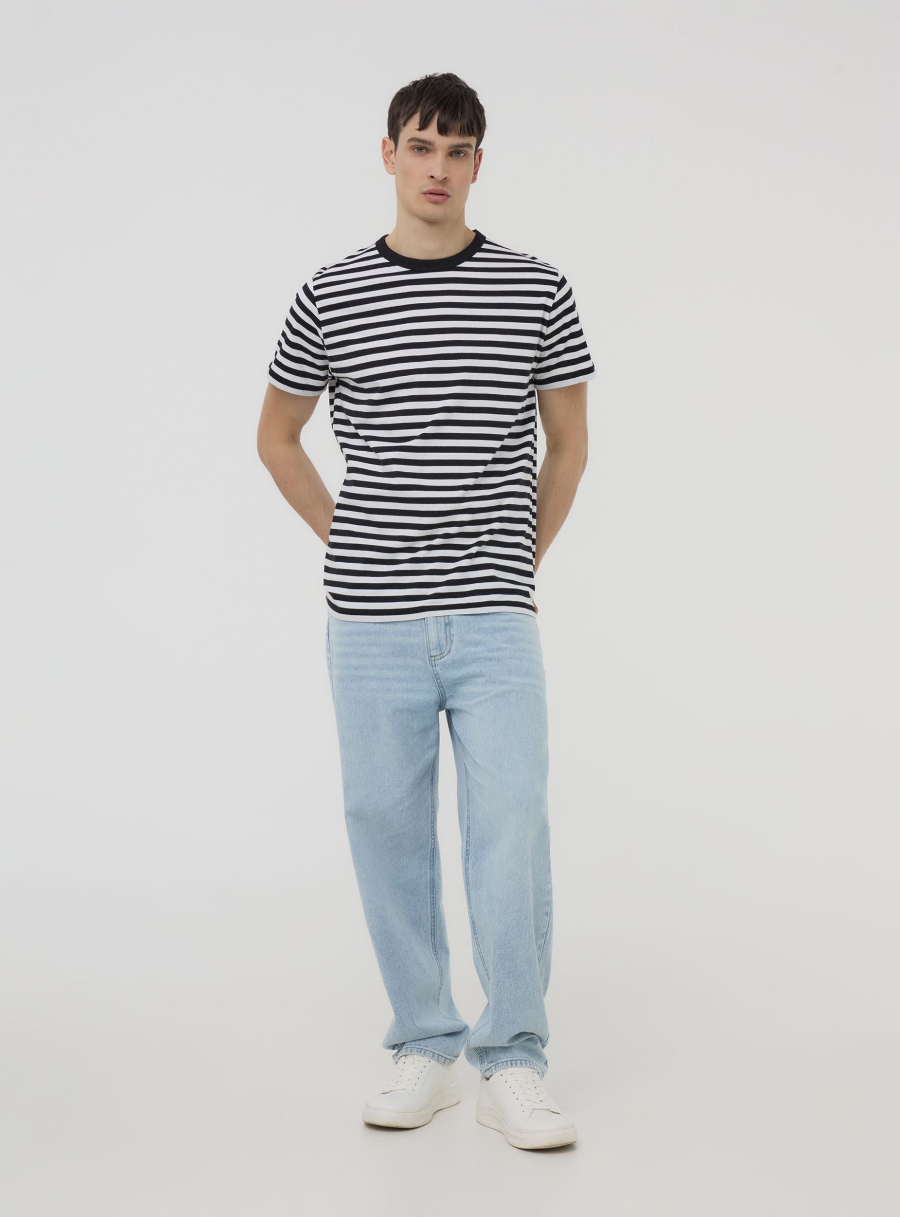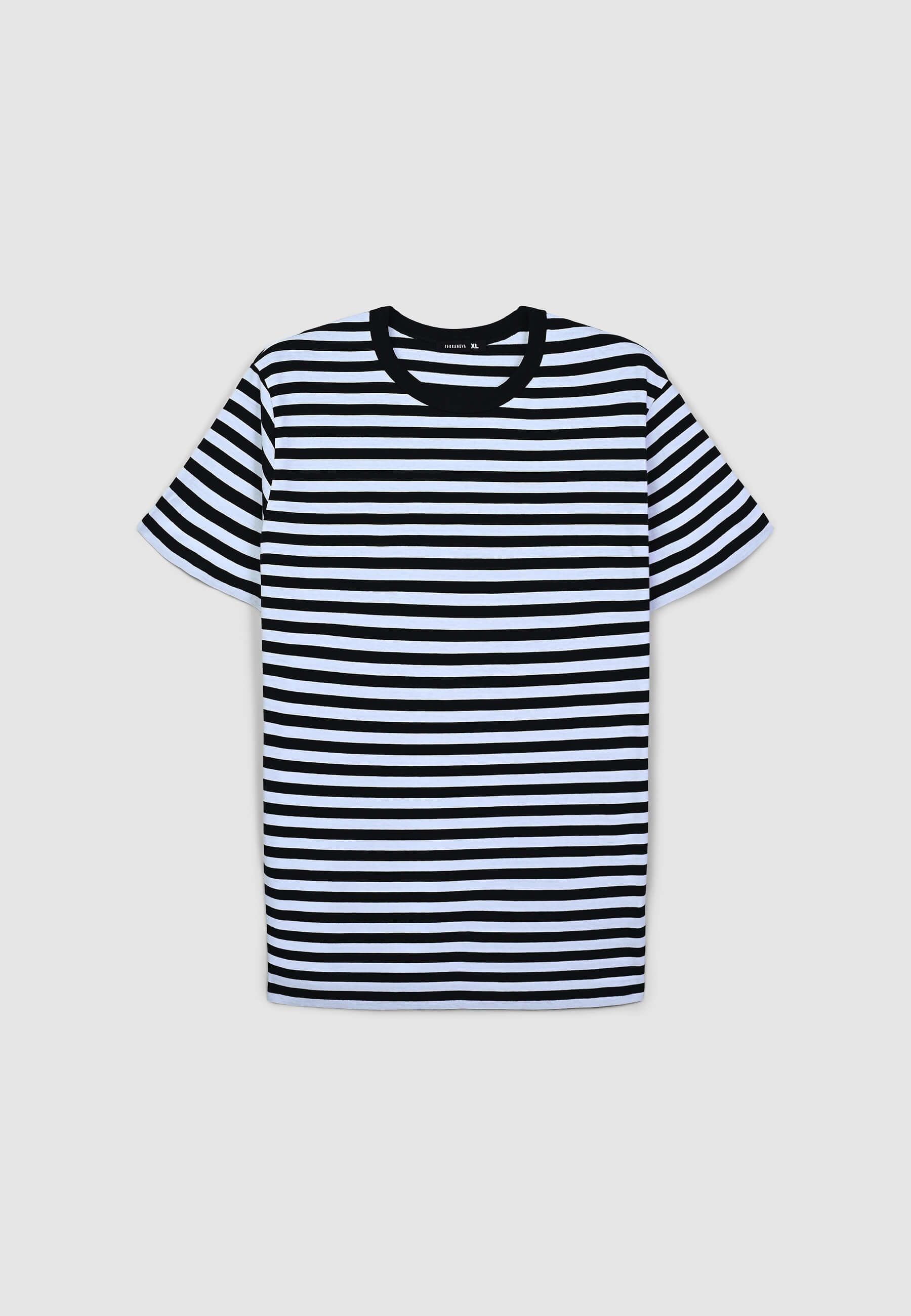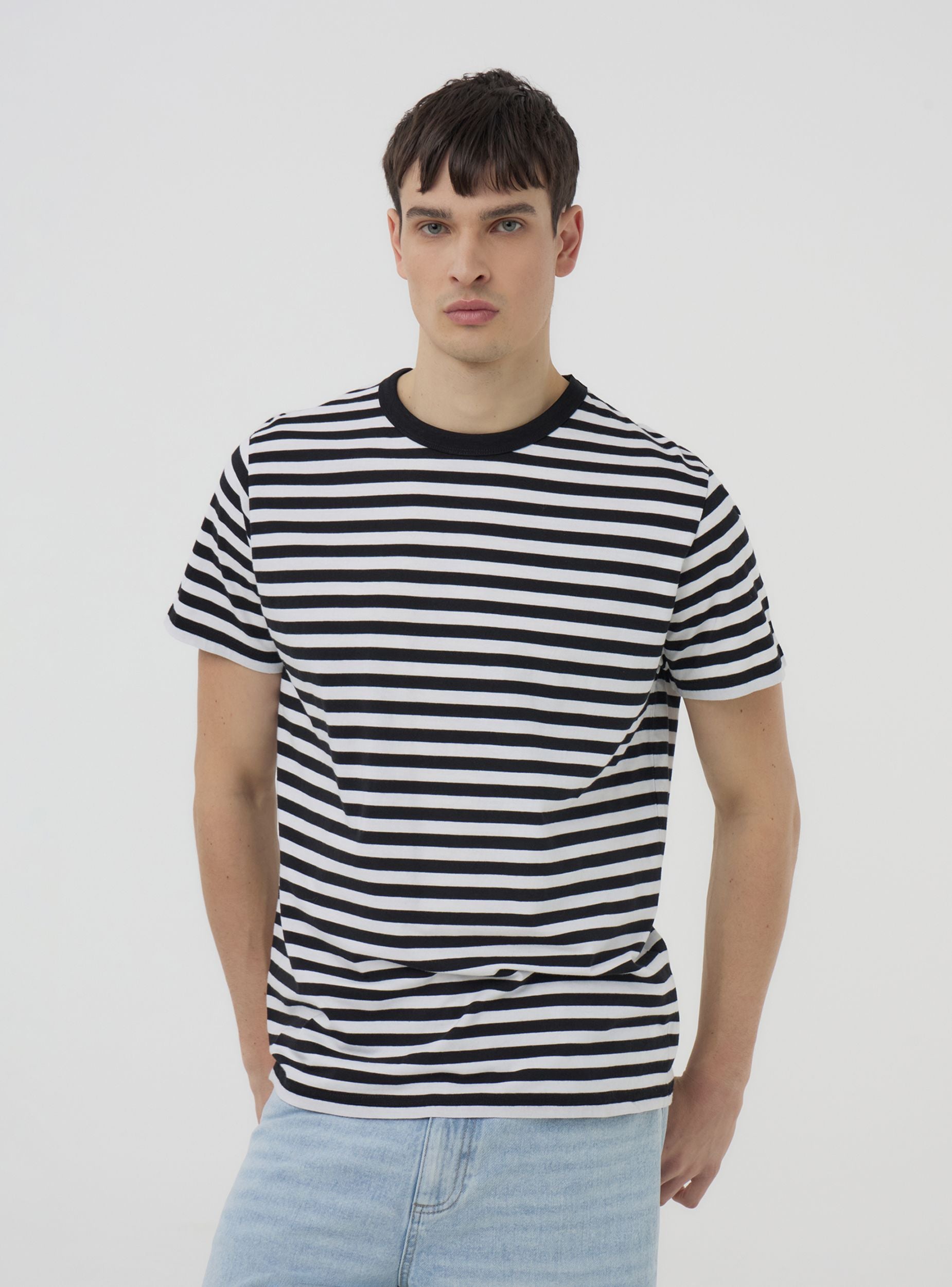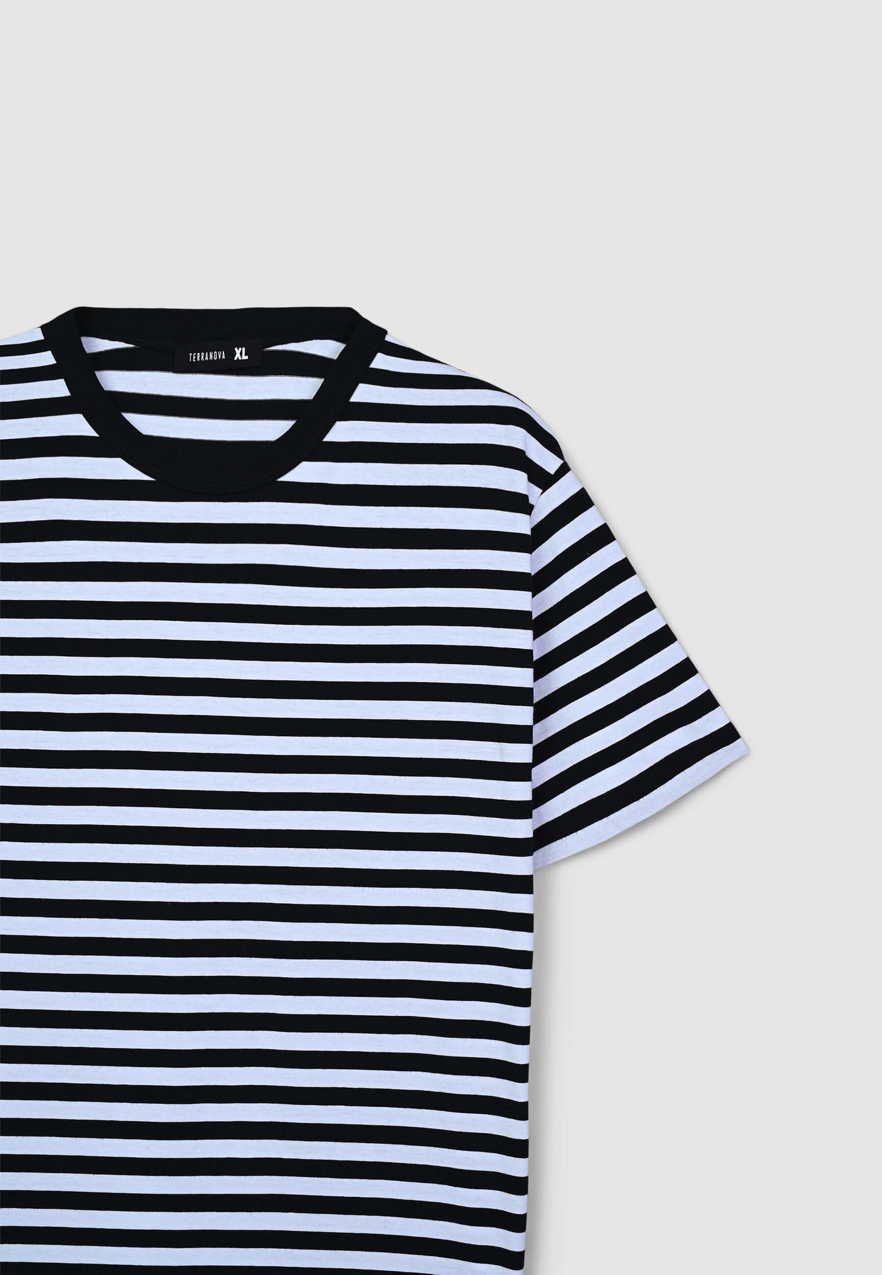 Pánská trička s krátkými rukávy a kulatým výstřihem, charakterizovaná elegantním pruhovaným vzorem, který evokuje námořnický styl. Perfektní pro neformální a uvolněný vzhled, snadno se kombinuje s džíny nebo chinos kalhotami na neformální výlet, nebo s bermudami pro letní nádech. Ideální pro volný čas a dovolené, dodává každému outfitu svěží a rafinovaný vzhled.Detaily