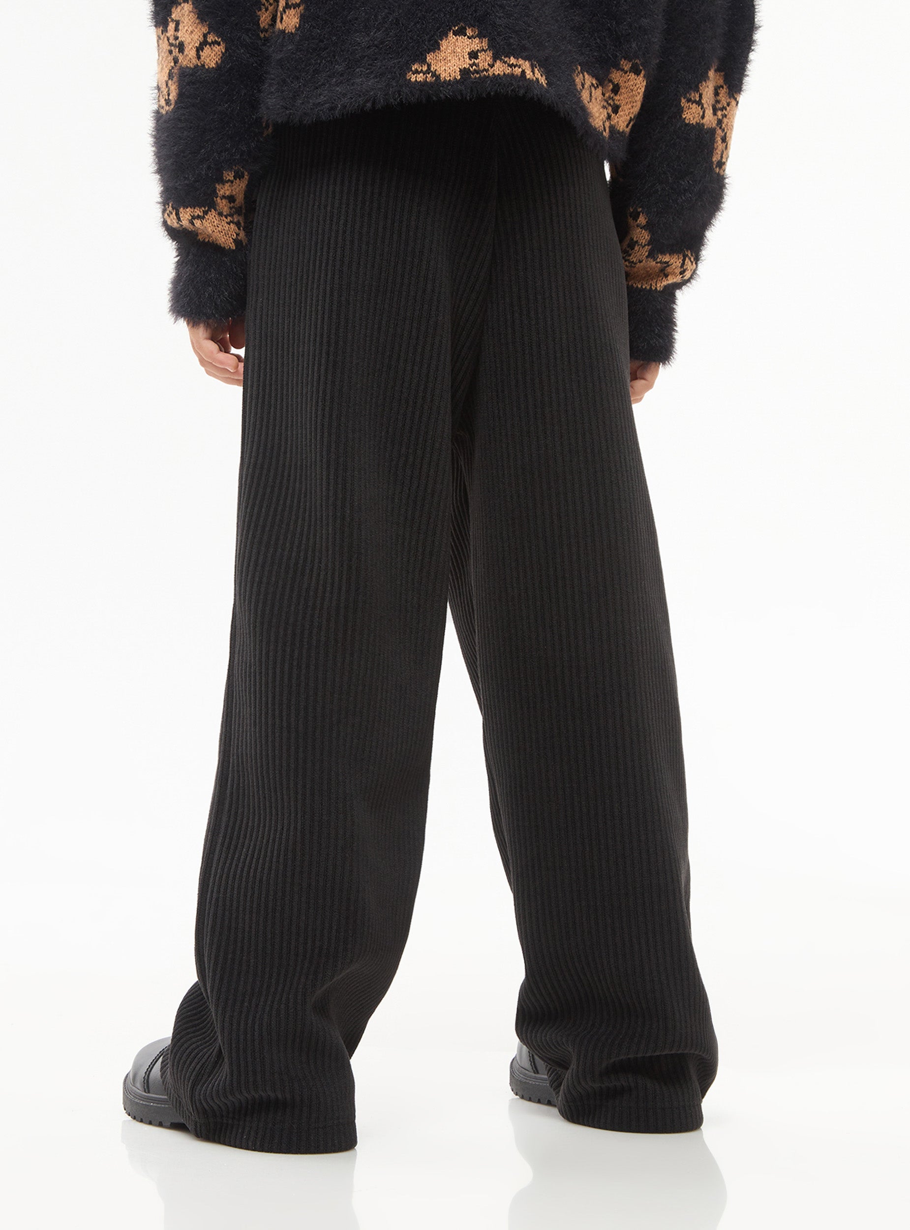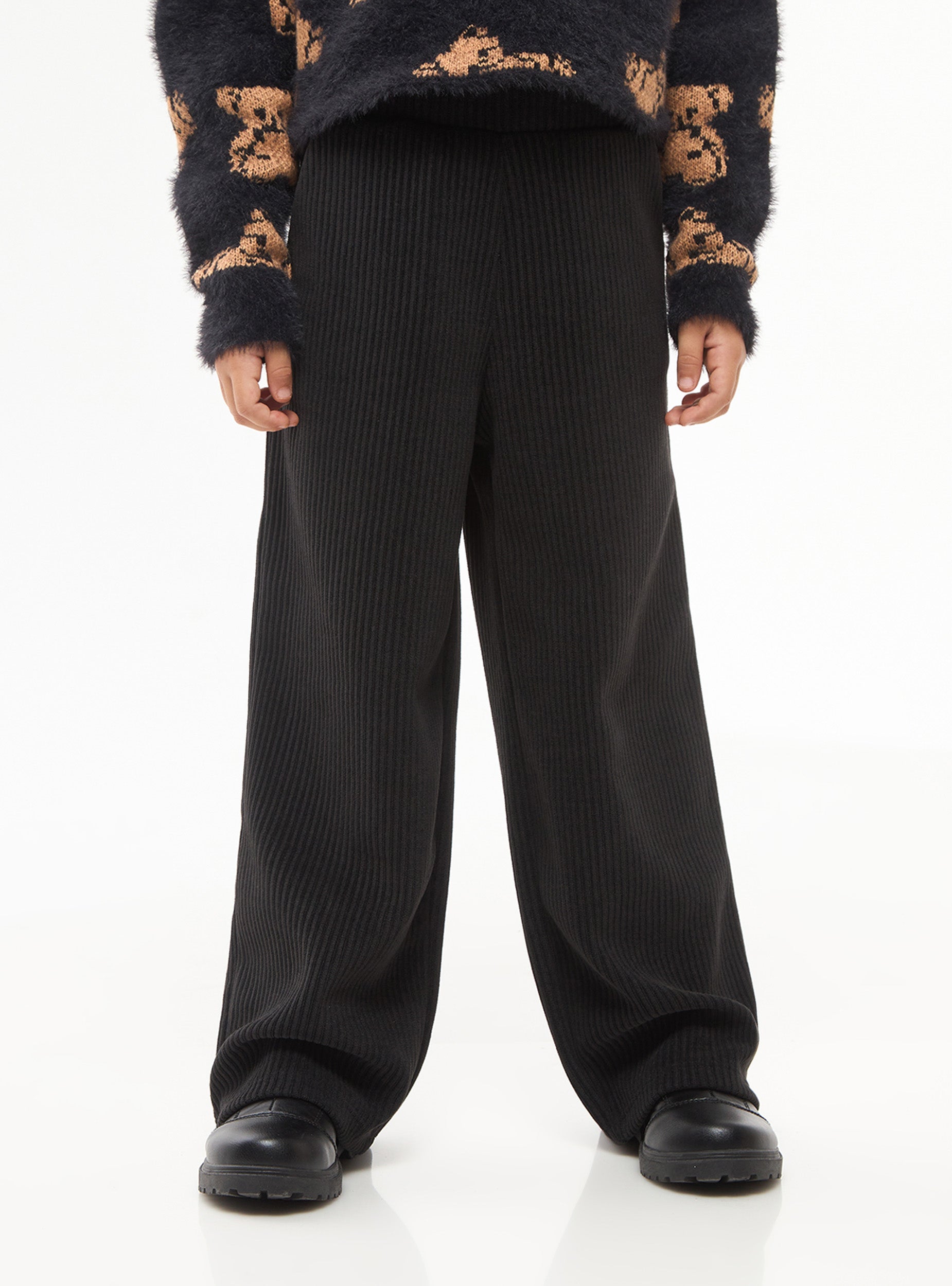 Pantaloni lunghi da bambina modello wide leg. Elastico in vita, tessuto tinta unita a coste.Detaily
