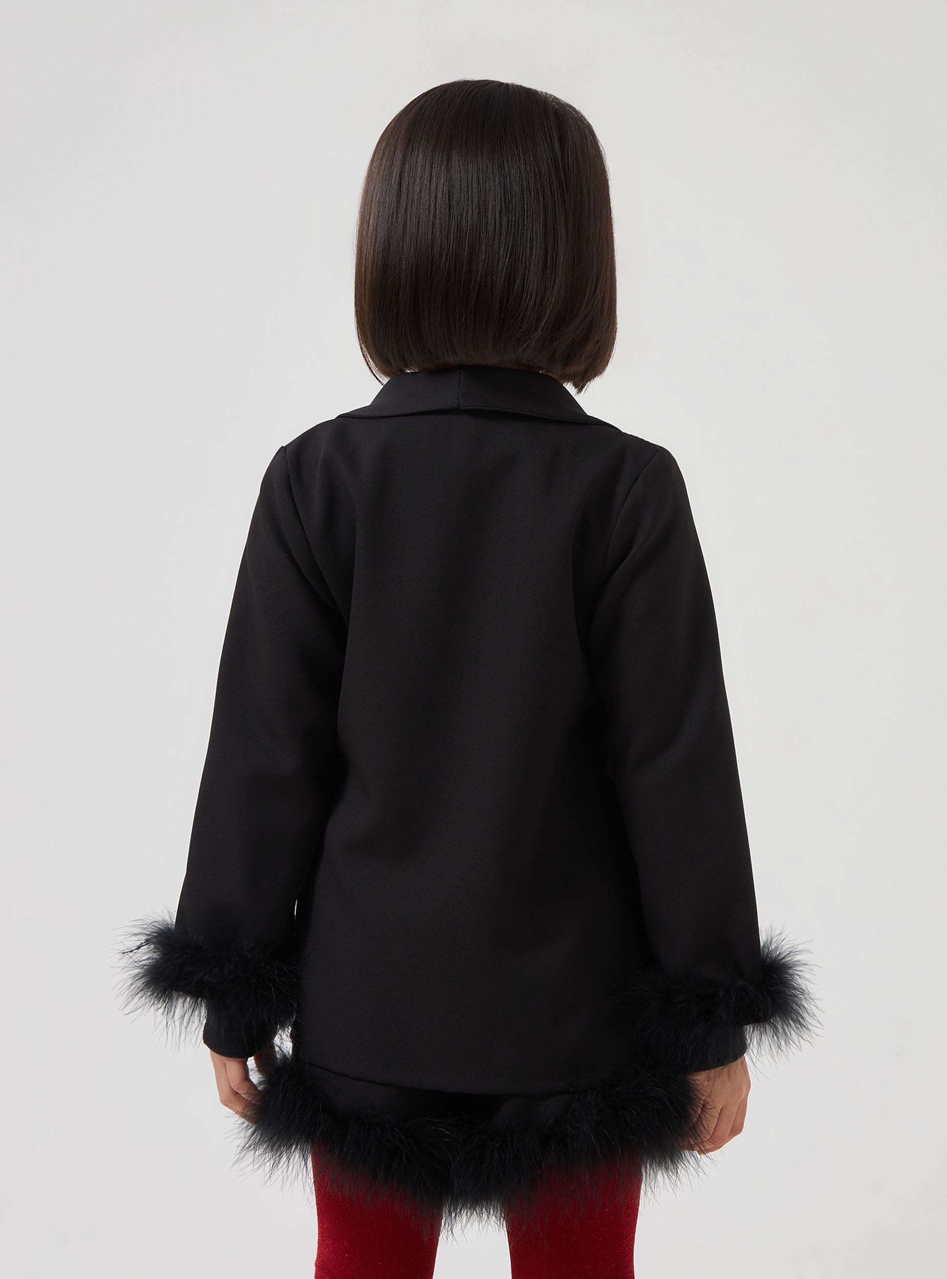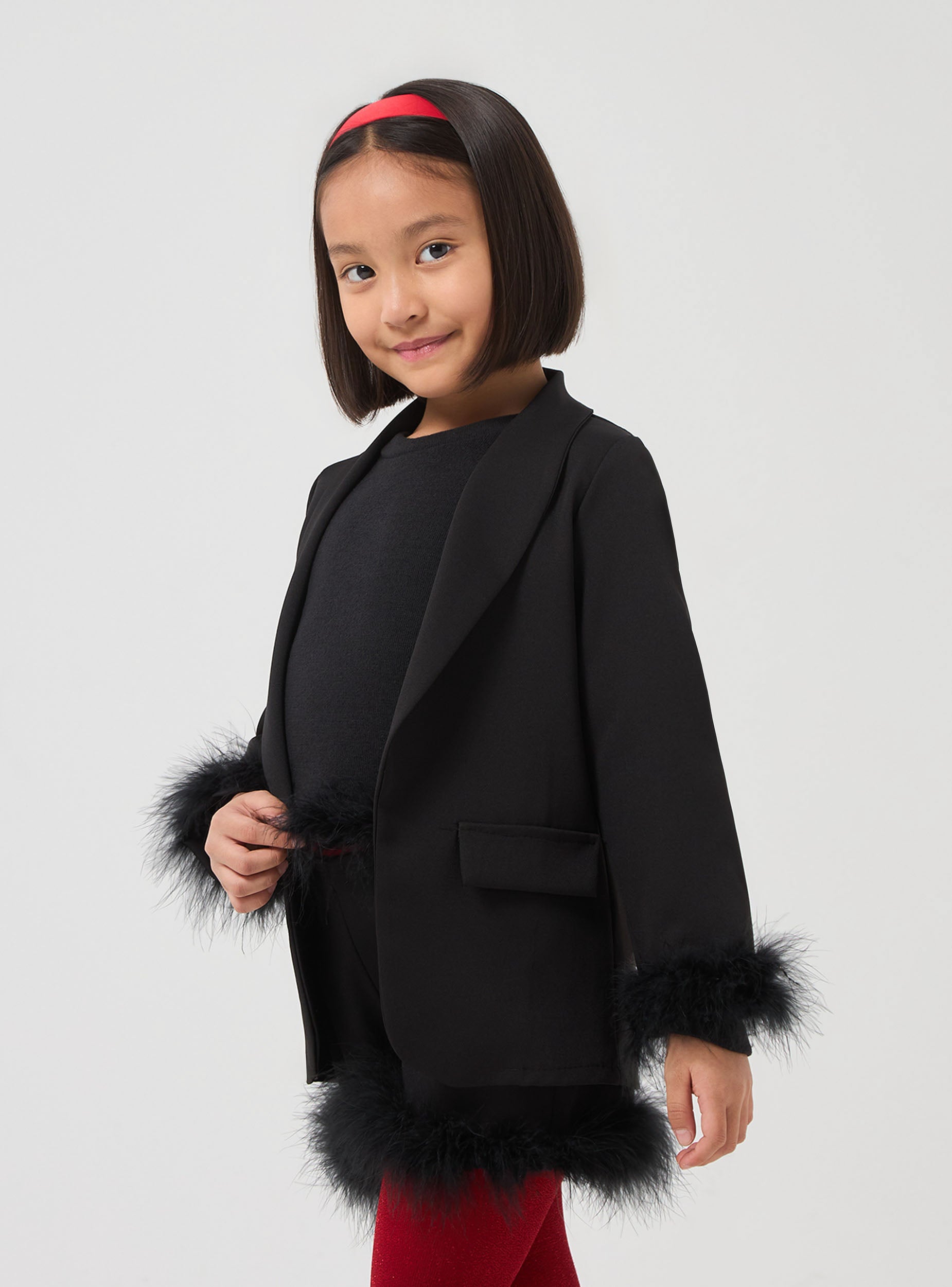 Giacca elegante da bambina con inserti piume sul bordo delle manicheDetaily