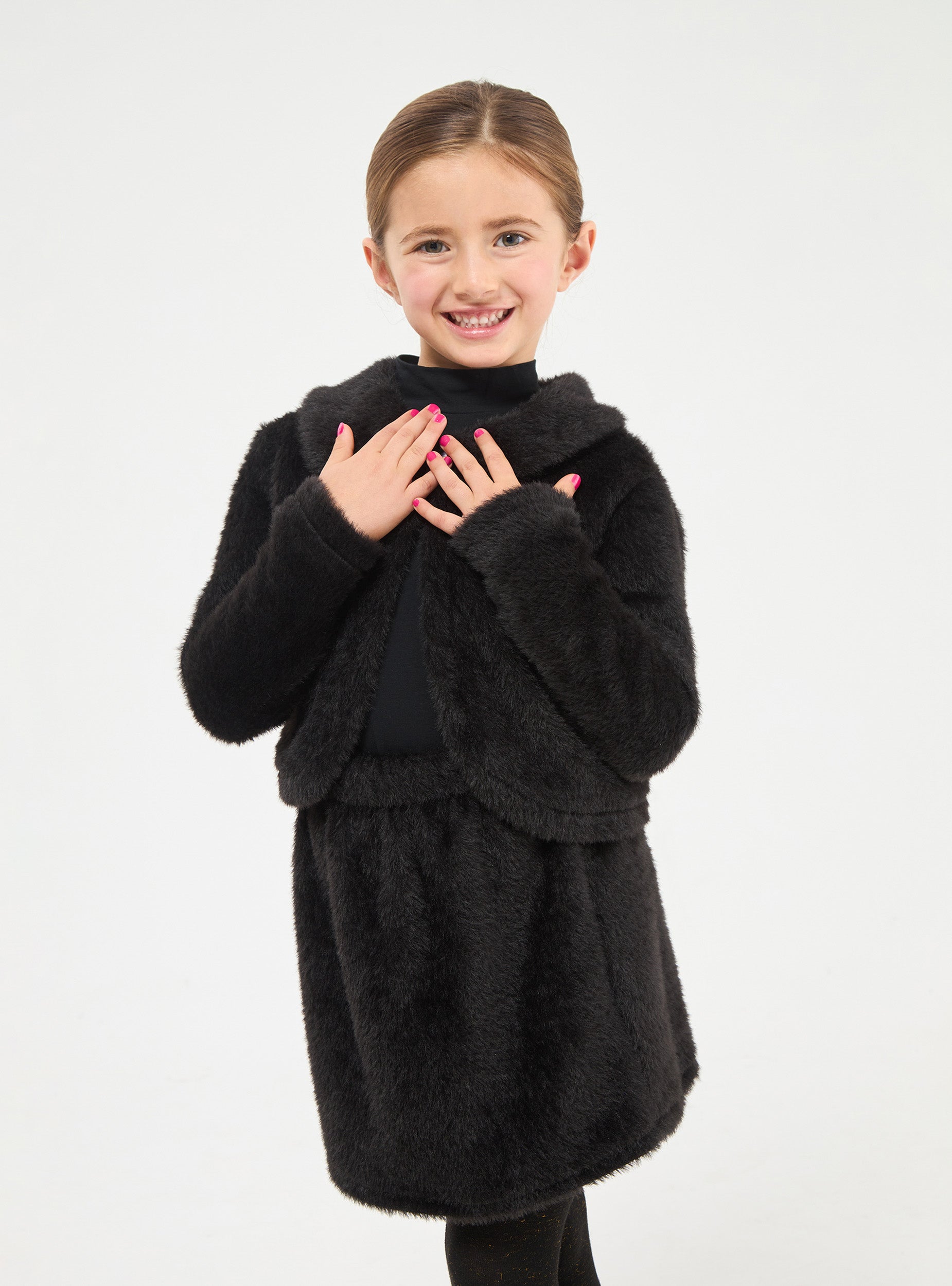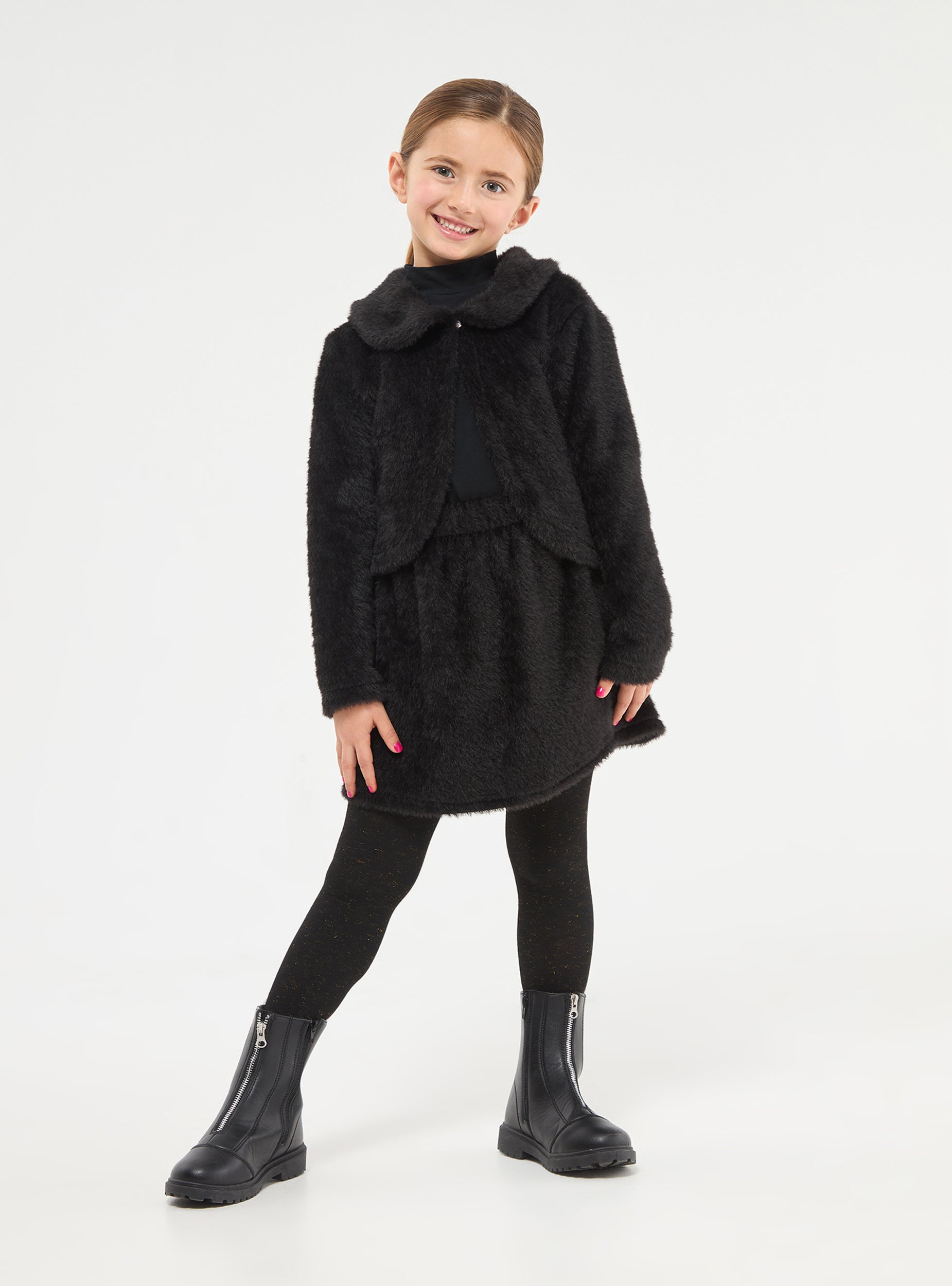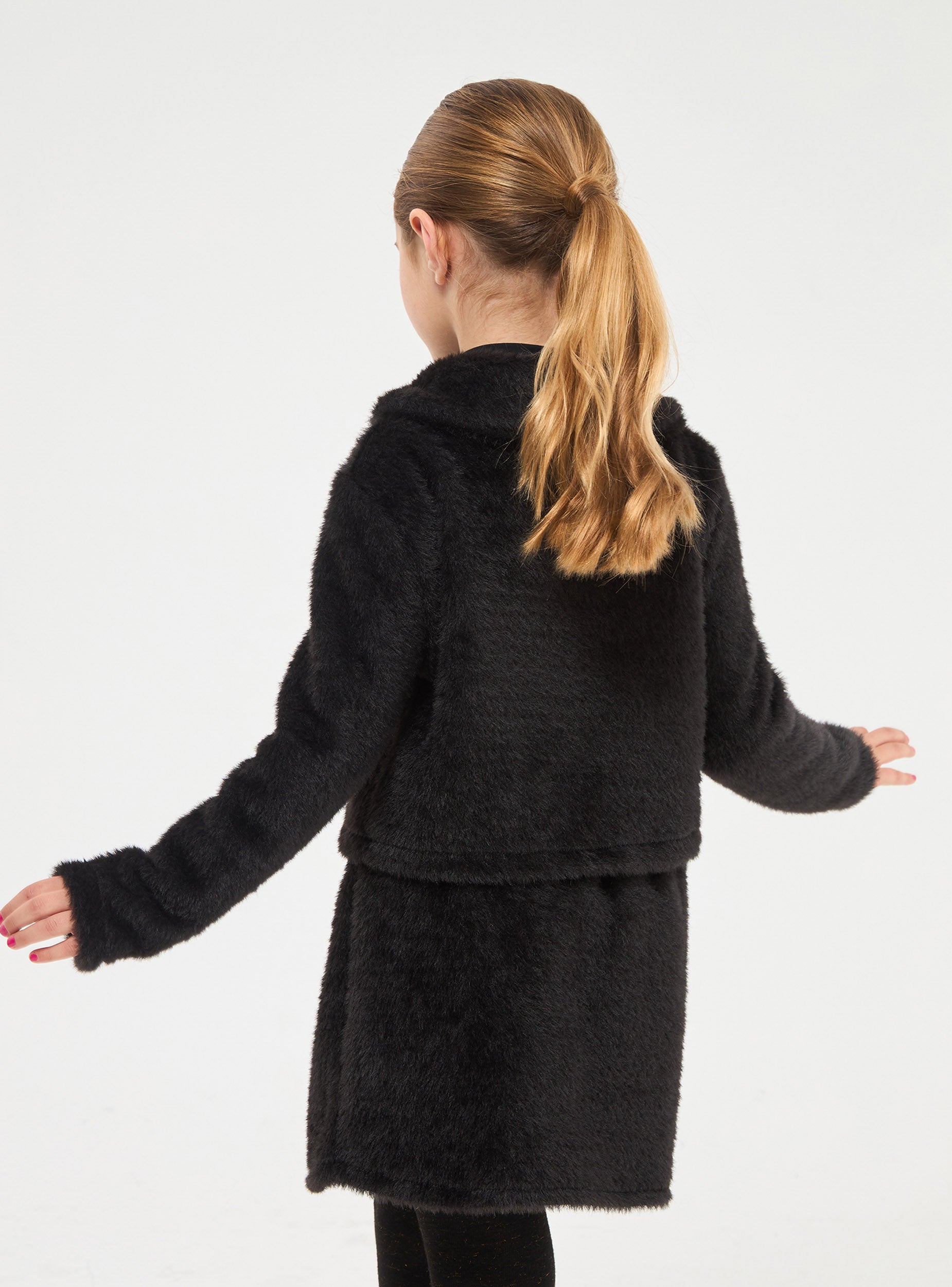 Giacchina da bambina in maglia effetto pelliccia . Chiusura con bottone gioielloDetaily