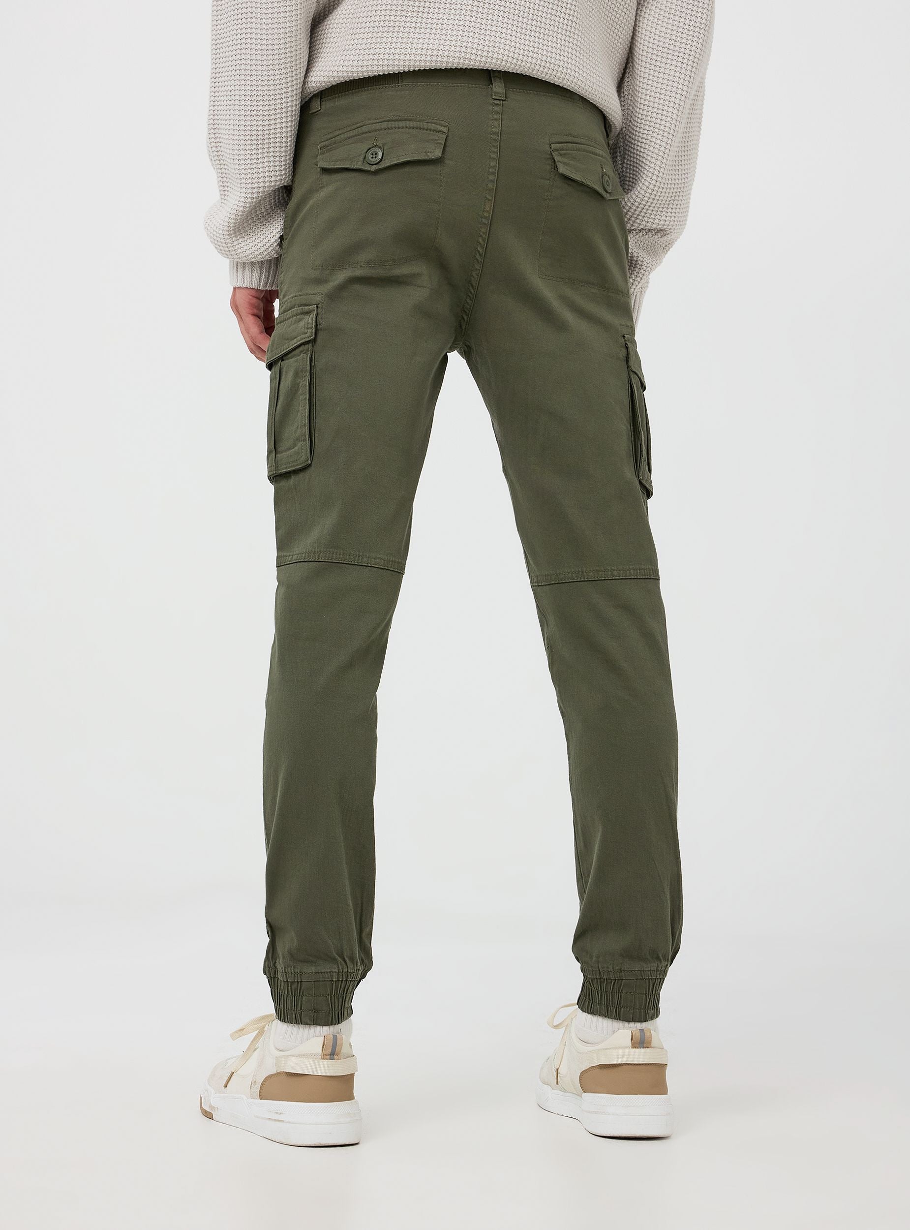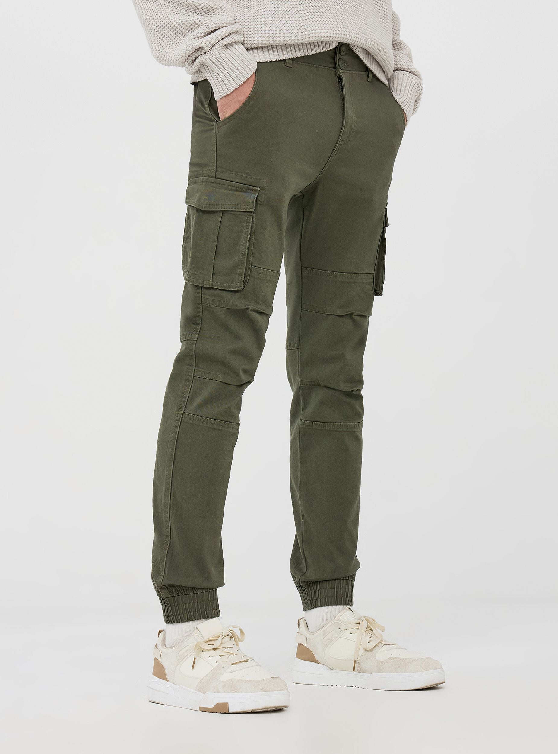 Pánské cargo kalhoty se skinny střihem, vyrobené z elastického twill materiálu, který nabízí pohodlí a volnost pohybu. Tyto kalhoty mají několik funkčních kapes: dvě cargo kapsy s klopou, dvě zadní kapsy s knoflíkem a dvě boční kapsy. Design zahrnuje zapínání na zip a knoflíky a vnitřní elastický pás a manžety, což zaručuje těsný a pohodlný střih. Ideální pro neformální a dynamické looky, tyto cargo kalhoty jsou perfektní pro volný čas, outdoorové aktivity nebo pro vytváření módních městských outfitů. Univerzálnost tohoto kousku ho činí vhodným pro kombinaci s tričky, mikinami nebo lehkými bundami, jak během chladnějších, tak i mírnějších ročních období.
