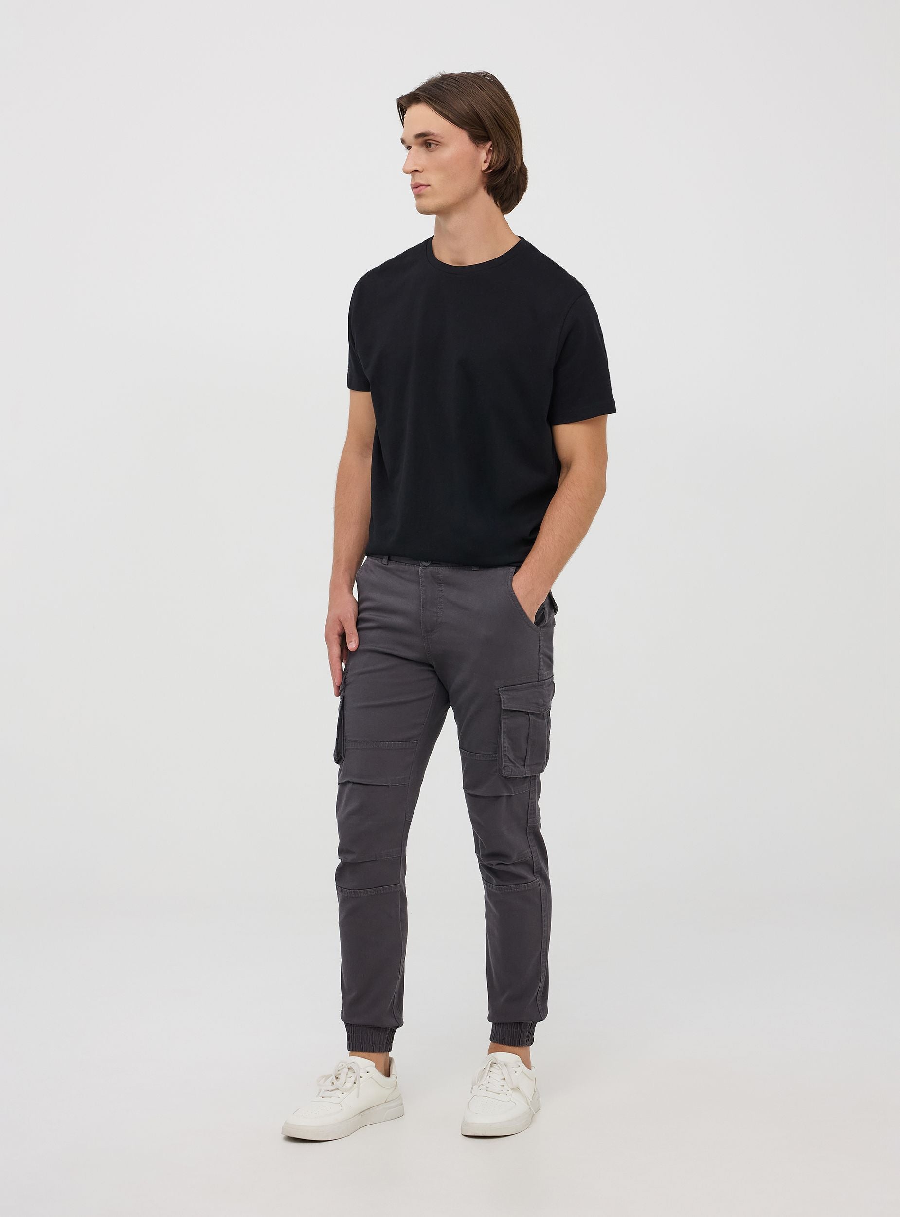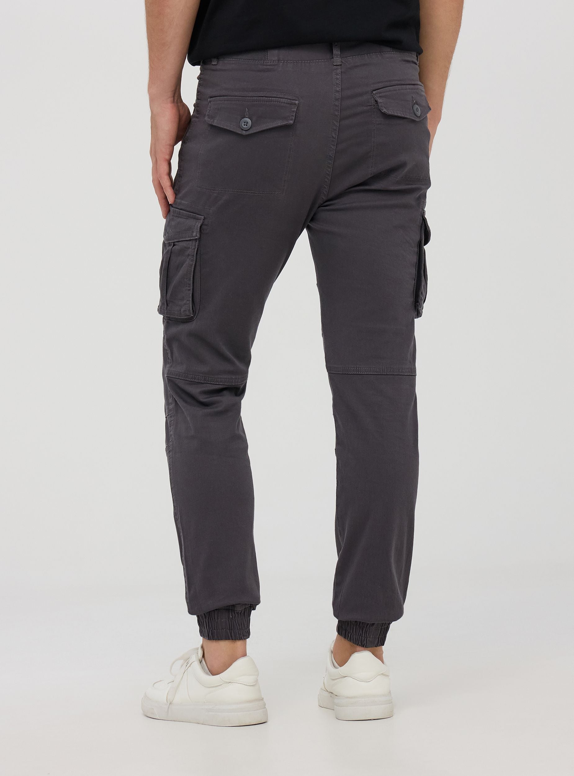Pánské cargo kalhoty s úzkým střihem, vyrobené z elastického twill materiálu, který poskytuje pohodlí a volnost pohybu. Tyto kalhoty mají několik funkčních kapes: dvě cargo kapsy s klopou, dvě zadní kapsy na knoflík a dvě boční kapsy. Design zahrnuje zip a knoflíky a vnitřní elastický pás a manžety, což zajišťuje přiléhavé a pohodlné nošení. Ideální pro ležérní a dynamické vzhledy, tyto cargo kalhoty jsou perfektní pro volný čas, venkovní aktivity nebo pro vytváření módních městských outfitů. Univerzálnost tohoto kousku ho činí vhodným pro kombinaci s tričky, mikinami nebo lehkými bundami, a to jak během chladnějších, tak i mírnějších ročních období.