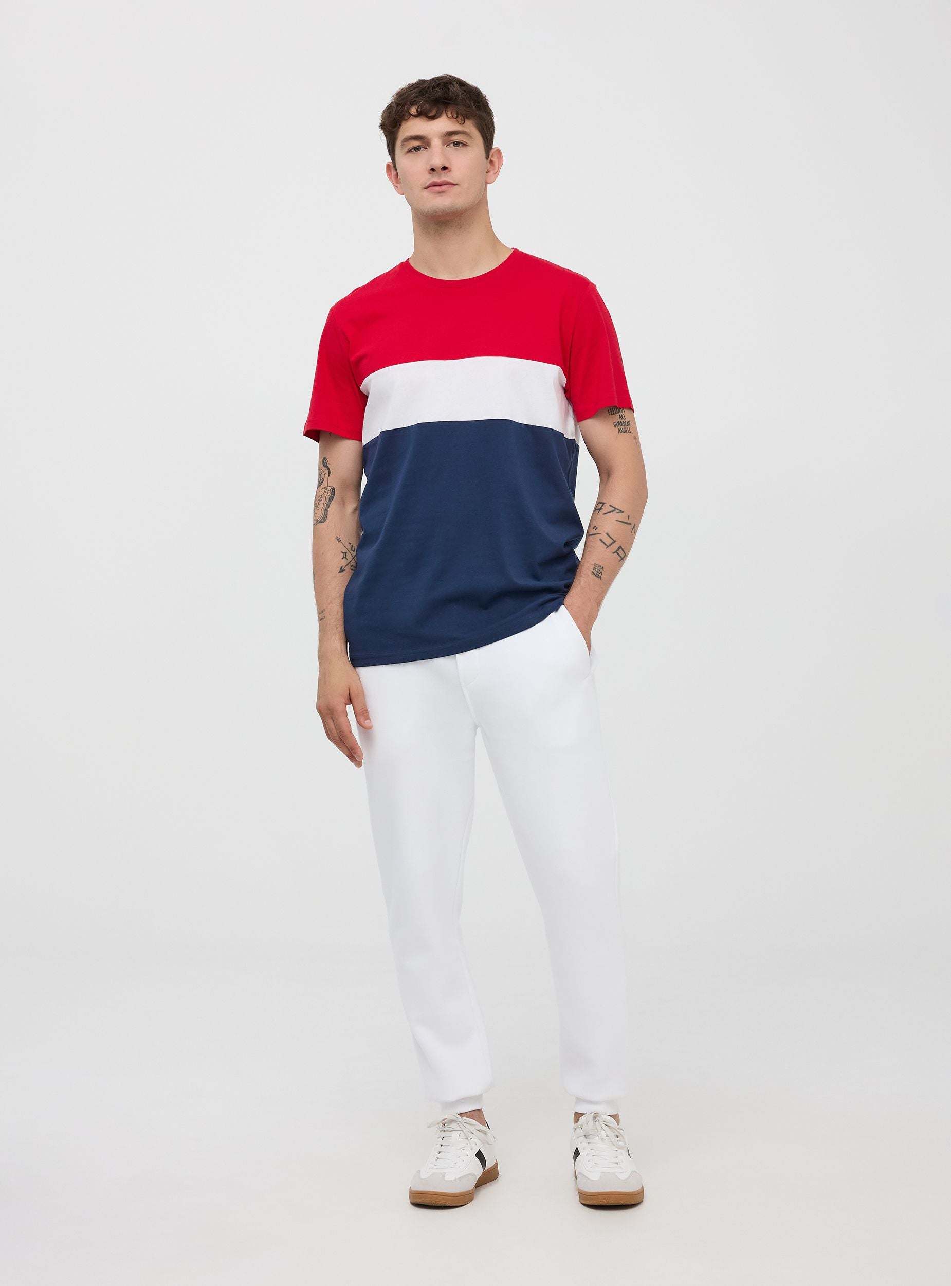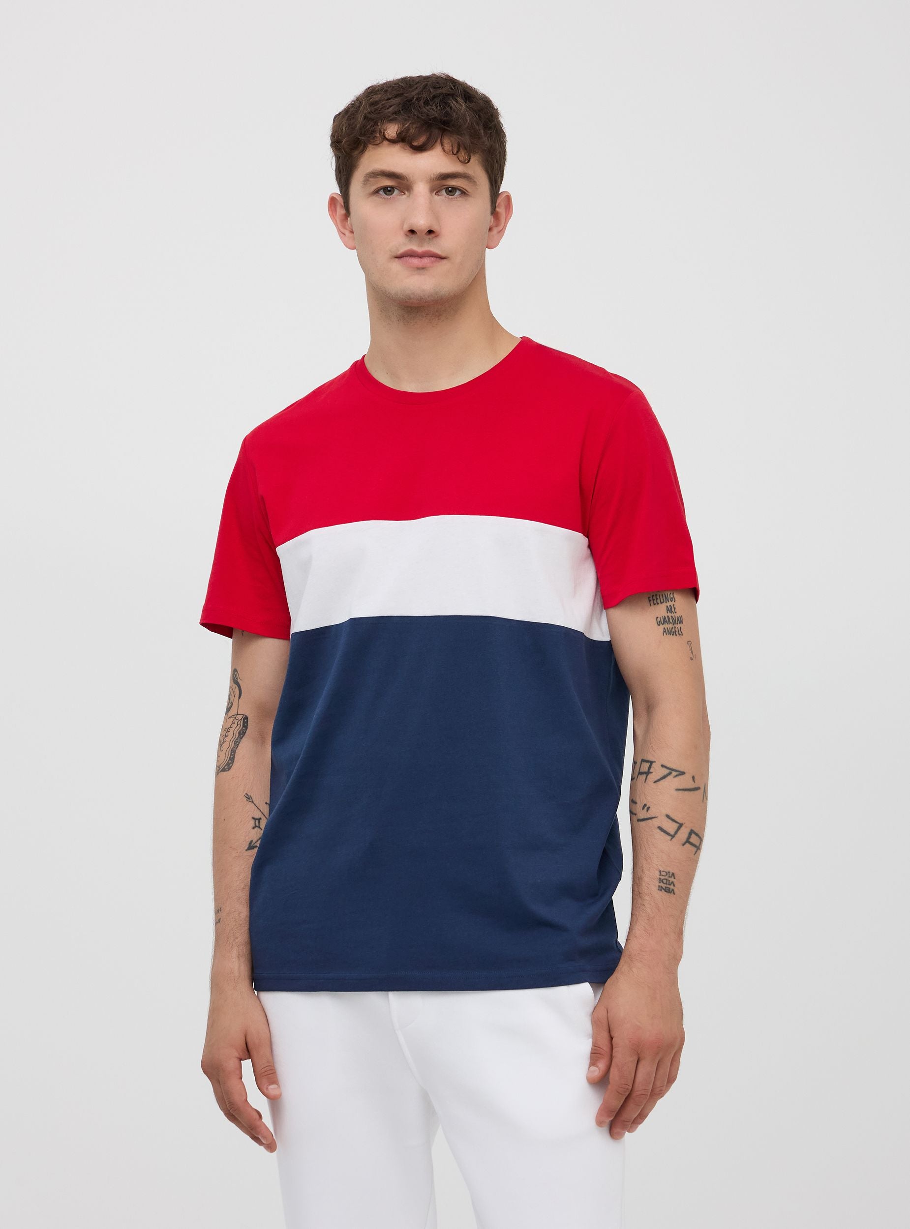 Pánské tričko z bavlněného žerzeje s blokovým barevným vzorem. Model s kulatým výstřihem a krátkými rukávy. Regular fit.Detaily