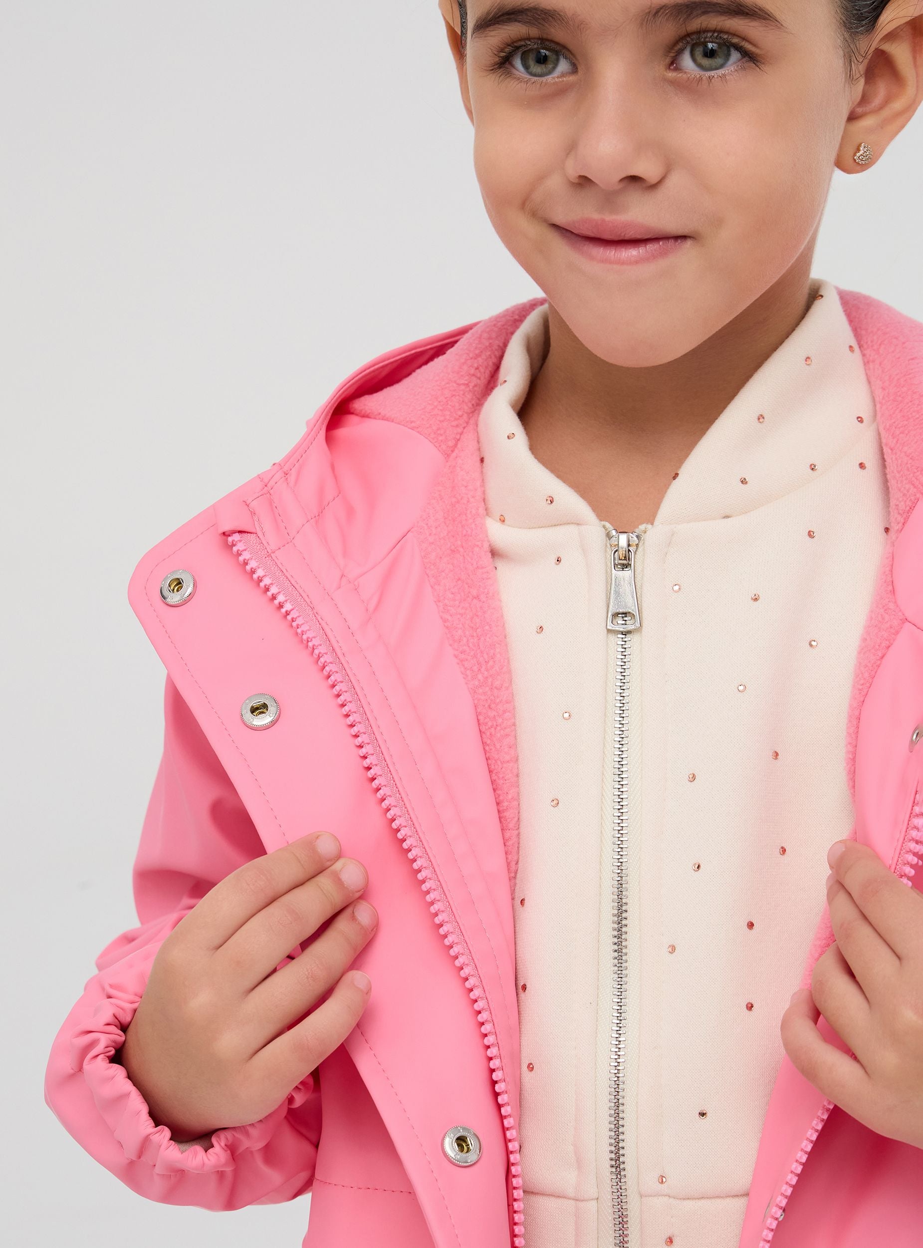 Technická bunda pro dívky odolná vůči vodě, nabízí účinnou ochranu proti větru a dešti, ideální pro zimní období. Vnitřek bundy je podšitý fleecem, aby zaručil teplo a pohodlí i v nejchladnějších dnech. Bunda má pohodlnou kapuci, která je ideální pro ochranu před nepřízní počasí. Má přední zapínání na zip a patentky a je vybavena prostornými bočními kapsami na uložení drobných předmětů. Manžety jsou elastické, aby se zabránilo pronikání studeného vzduchu. Díky svému funkčnímu a odolnému designu je tato bunda ideální pro doprovod vaší dívky na jejích dobrodružstvích venku během zimy.Detaily