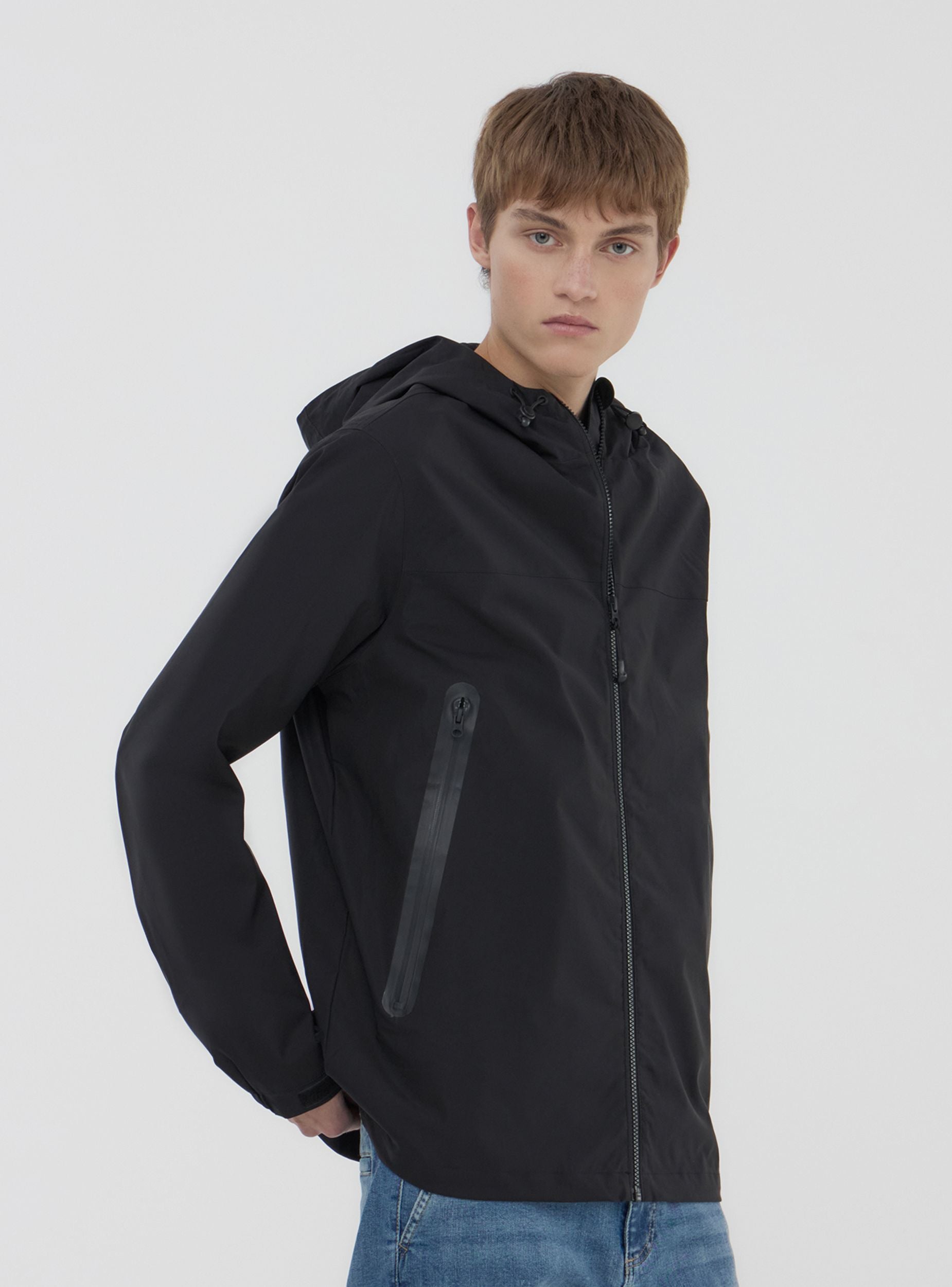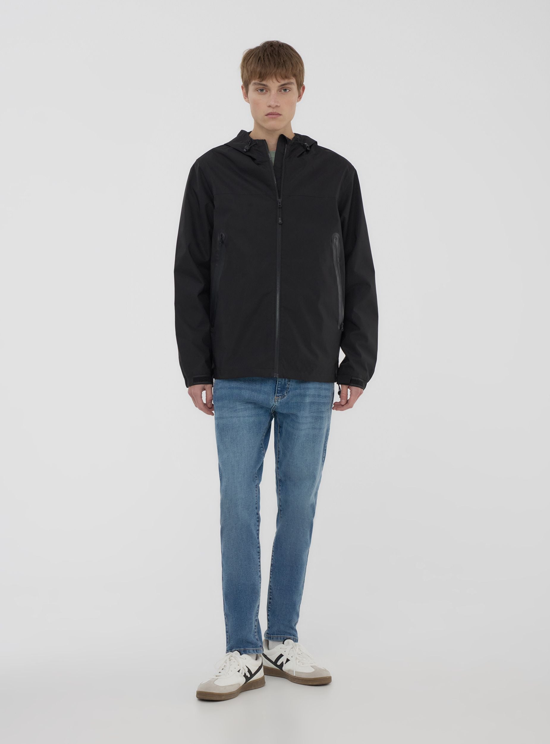 Pánská bunda, model shell, ideální pro zvládání nepříznivého počasí se stylem a funkčností. Vyrobena z technického nylonu s voděodolnou tkaninou, zaručuje ochranu a lehkost. Disponuje předním zipem, nastavitelnou kapucí se stoperem a manžetami na suchý zip pro optimální přiléhavost. Ideální pro venkovní aktivity a sportovní vzhled, hodí se k joggerům a teniskám nebo k džínům a tričku pro ležérní a dynamický outfit.Detaily