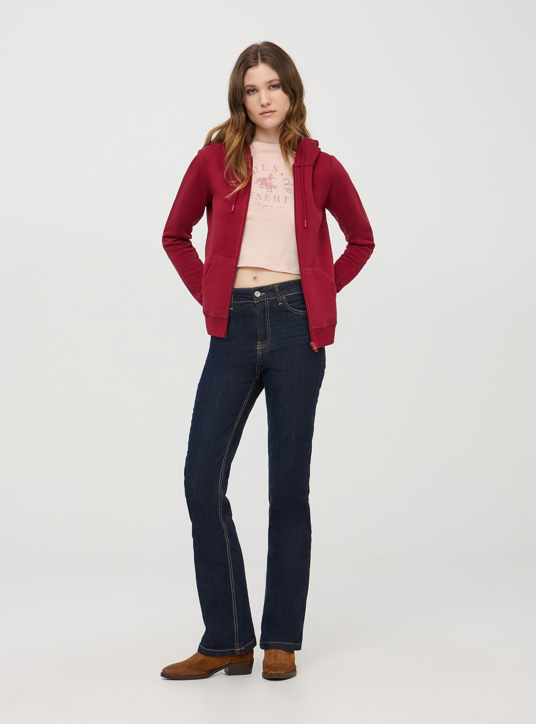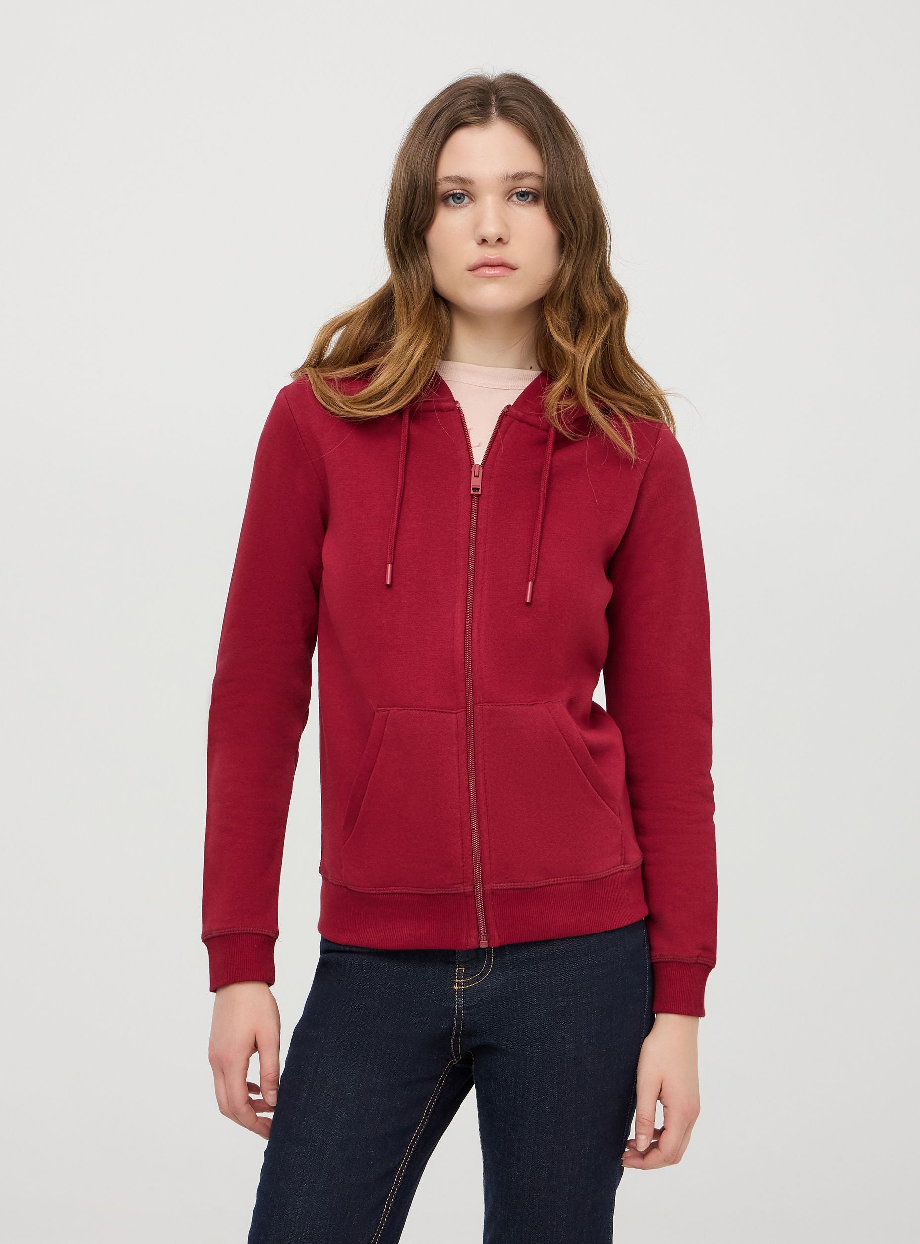 Dámská mikina s kapucí a stahovací šňůrkou, zapínání na zip a přední kapsy klokanka, z těžké jednobarevné tkaniny. Základní kousek, který by neměl chybět ve skříni, ideální pro ležérní vzhled. Regular fit.Detaily