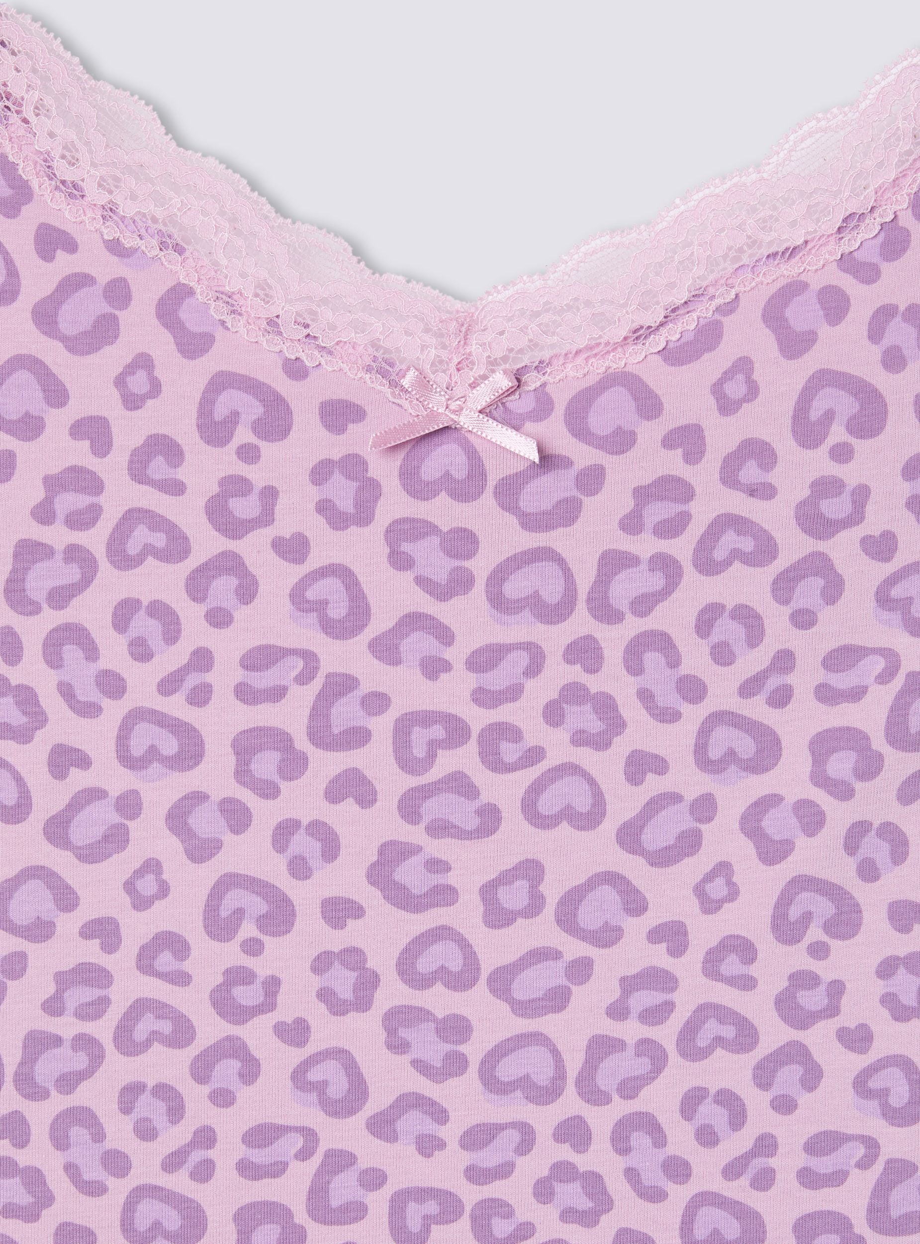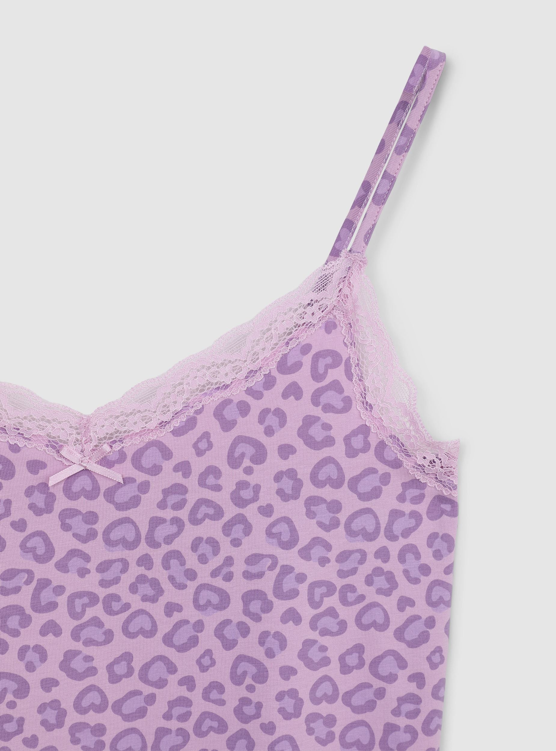 Tílko se zvířecím vzorem, krajkou a mašlí