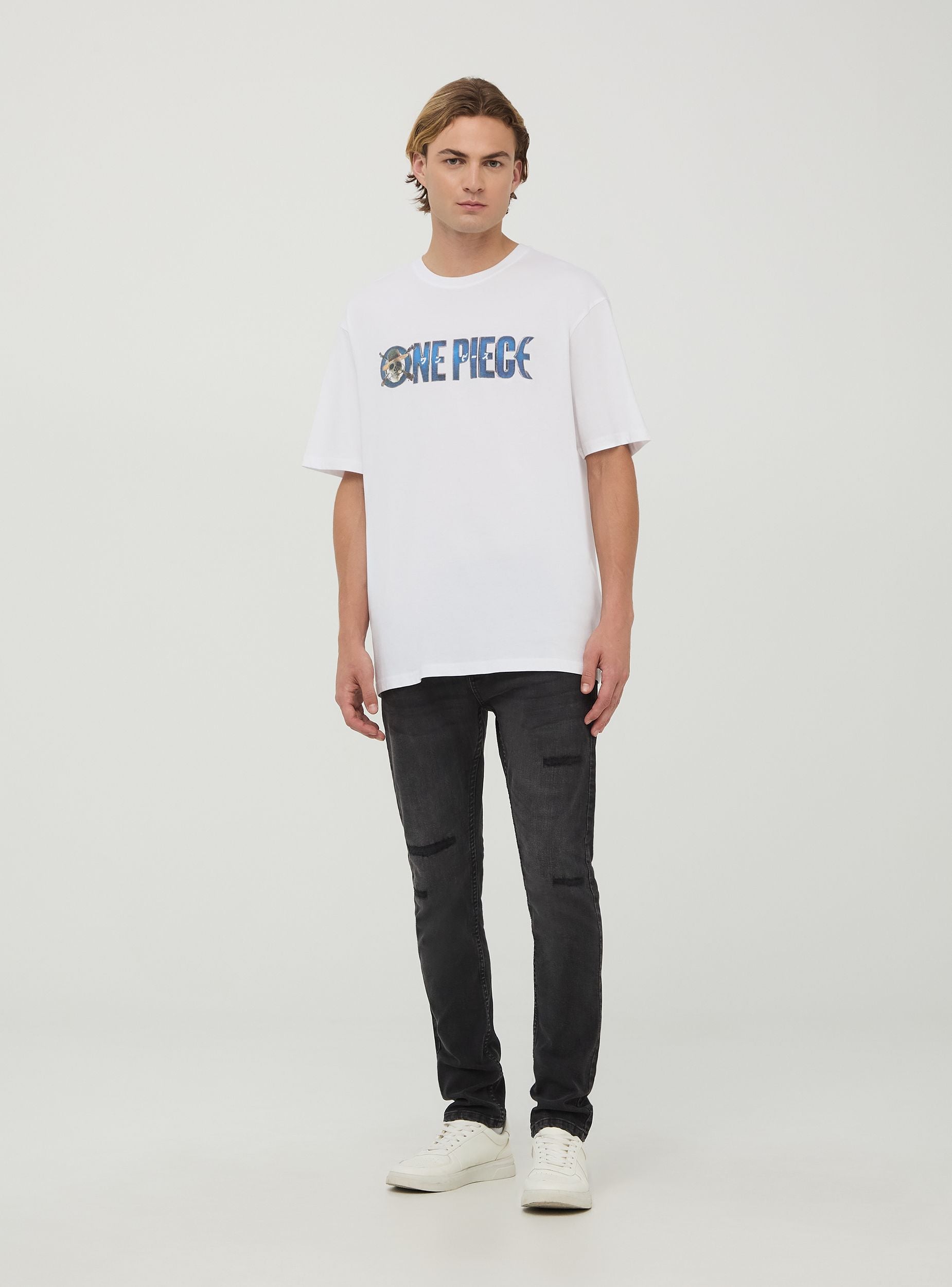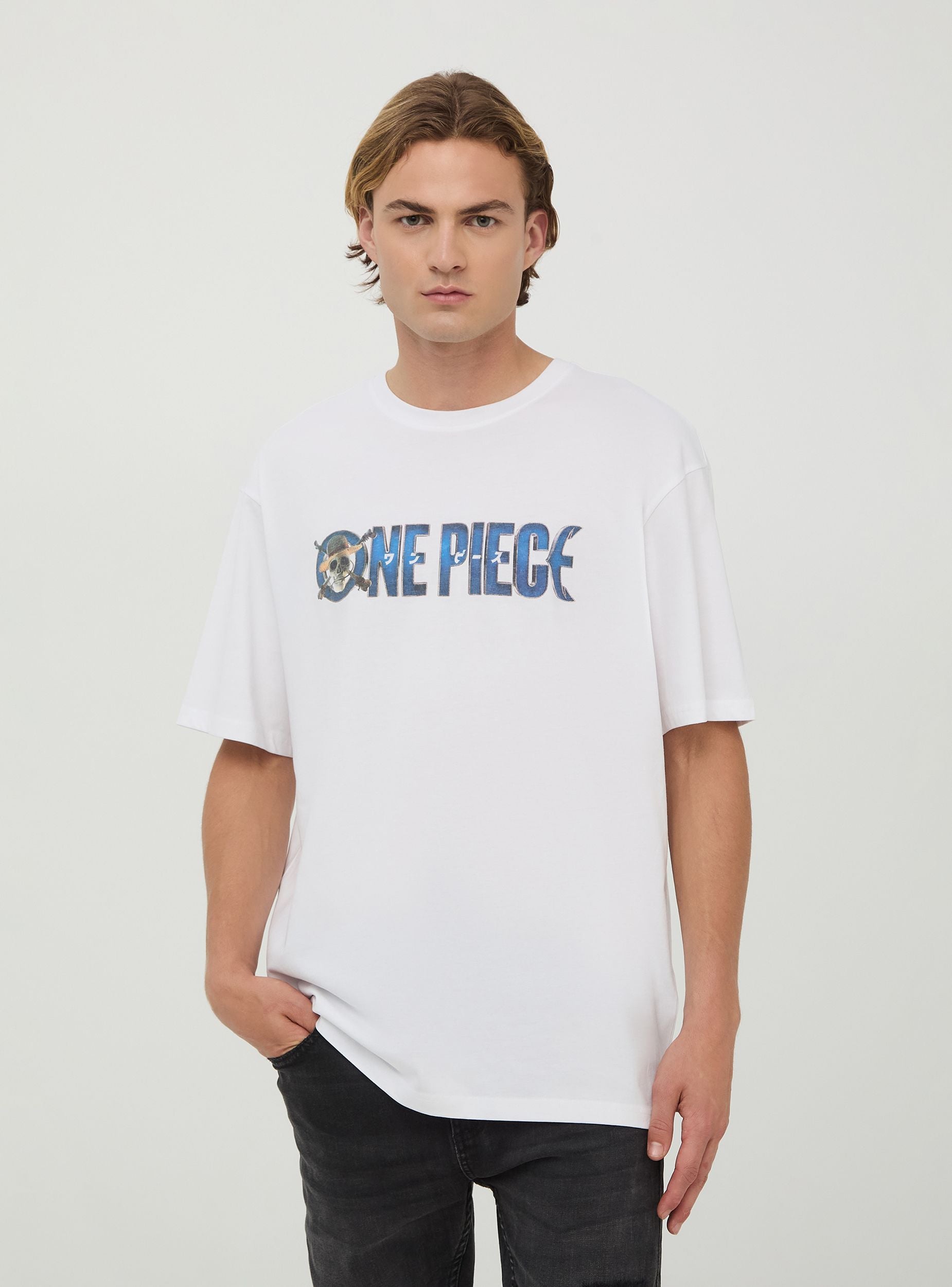 Pánské tričko z bavlněného žerzeje s potiskem One Piece®. Model s kulatým výstřihem a krátkým rukávem. Oversized střih.