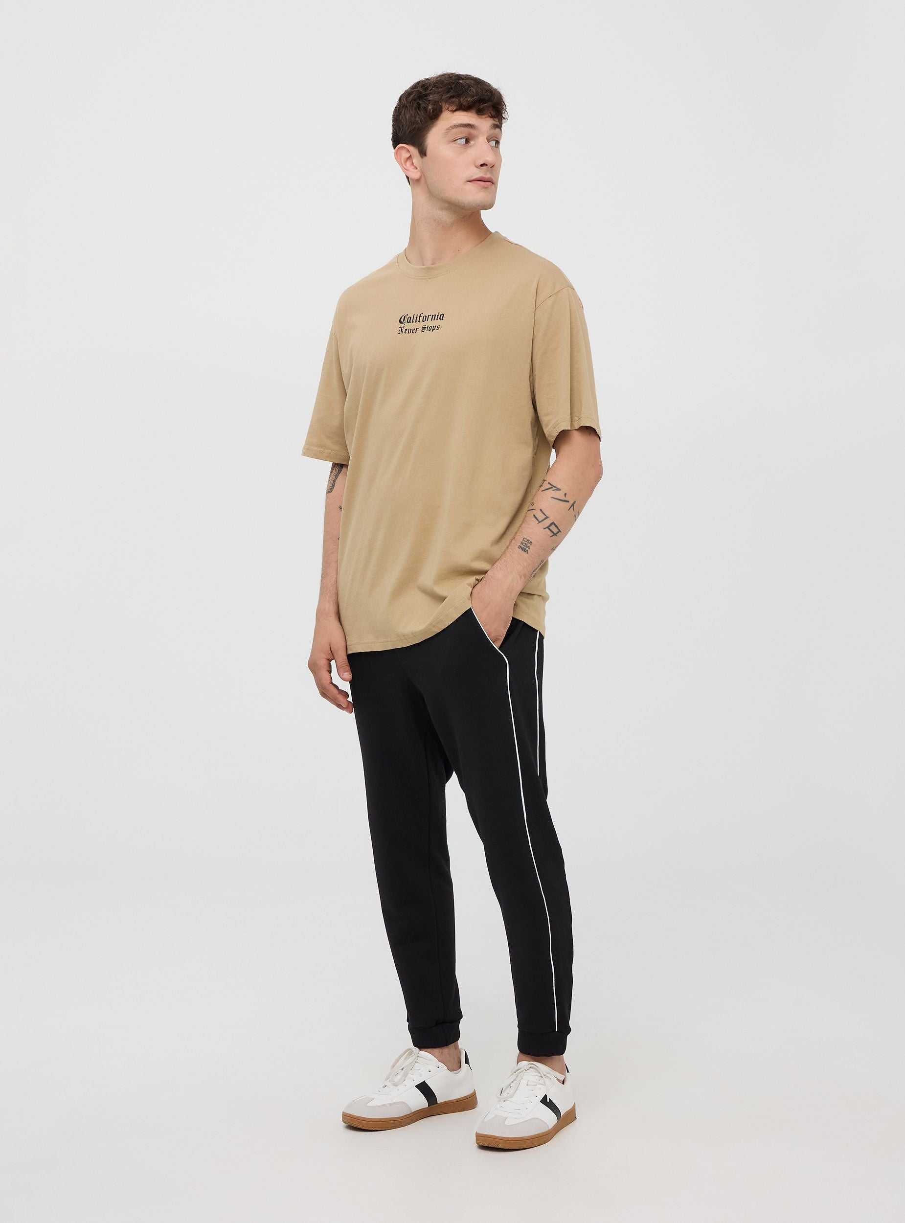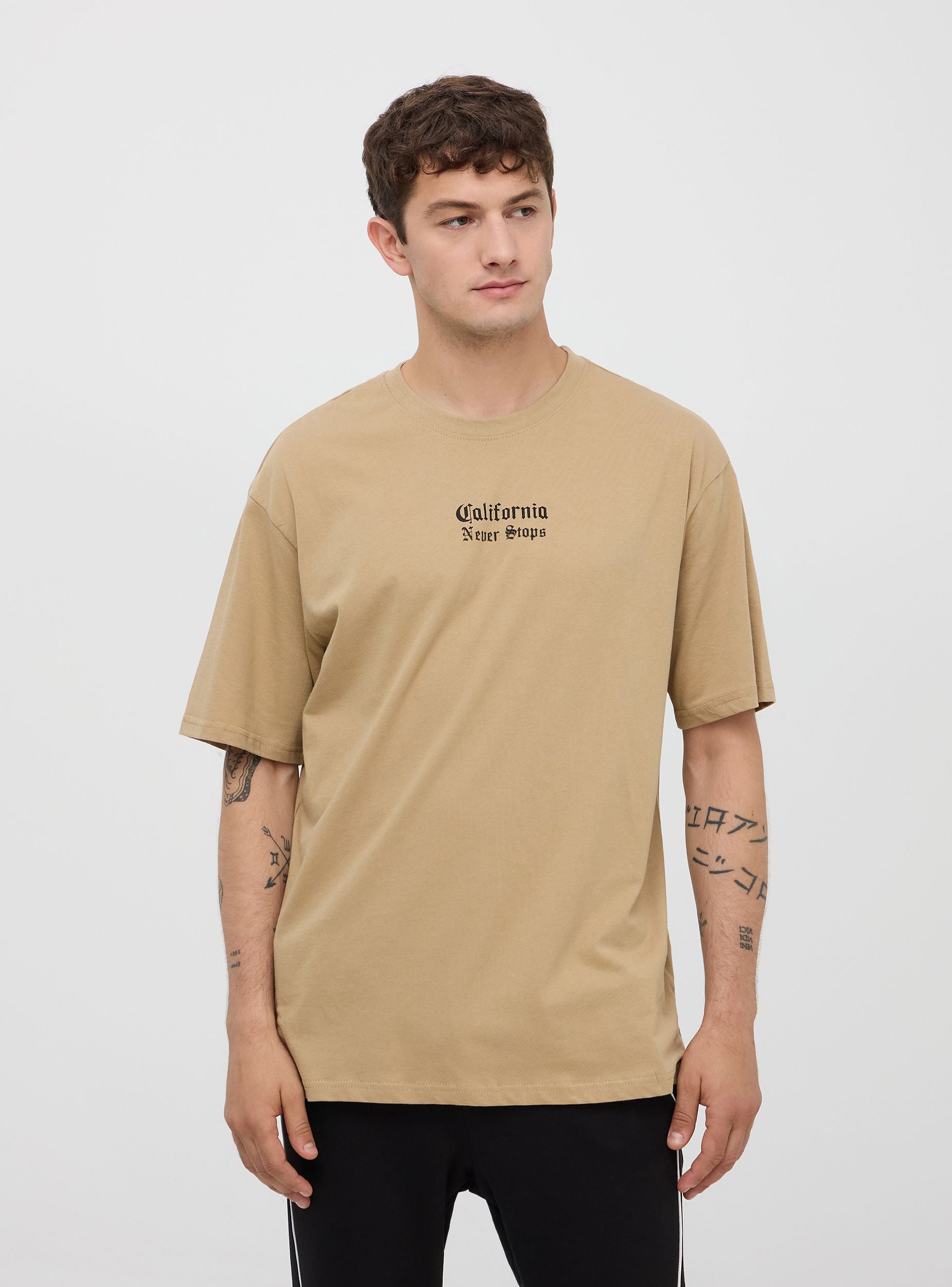 Pánská trička z bavlněného žerzeje s gotickým nápisem na přední i zadní straně. Model s kulatým výstřihem a krátkými rukávy. Oversize střih.Detaily