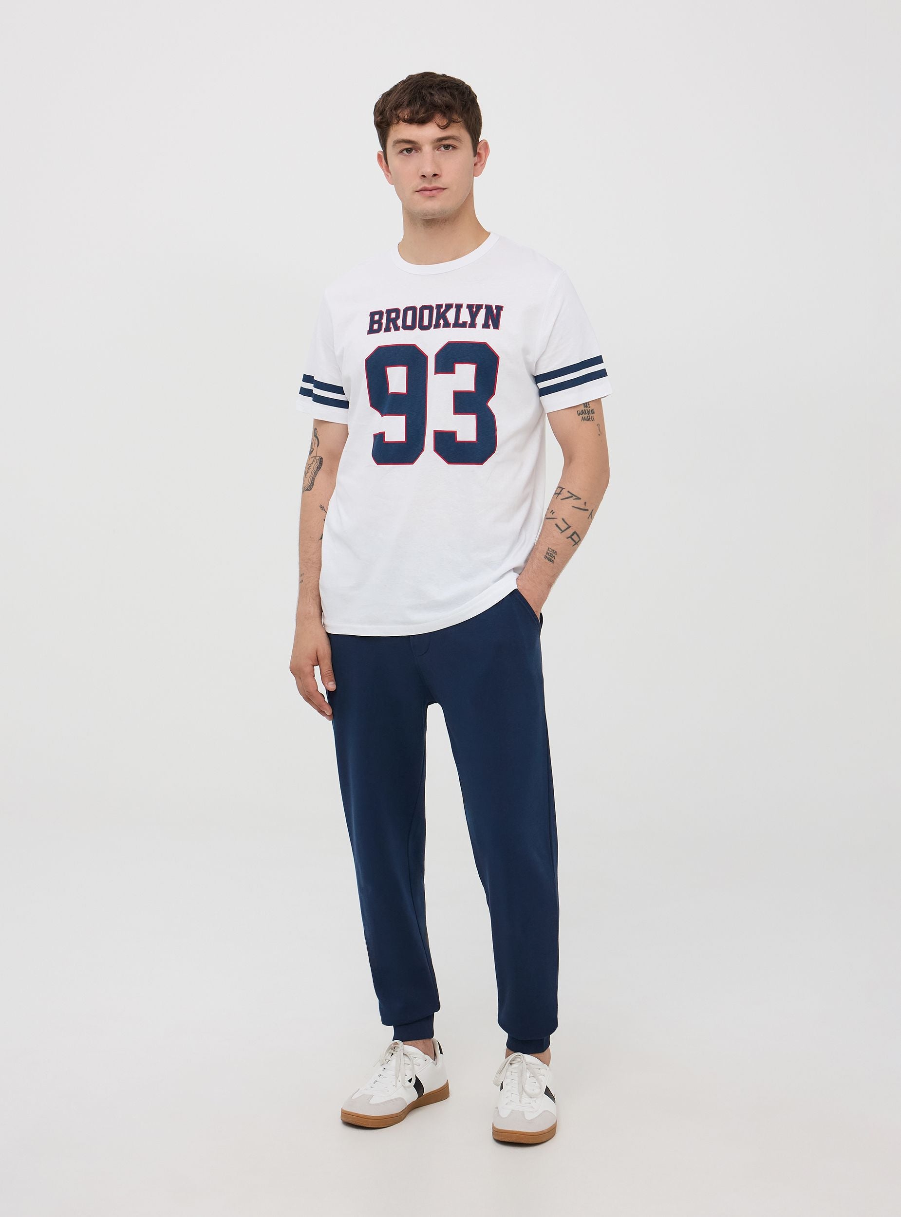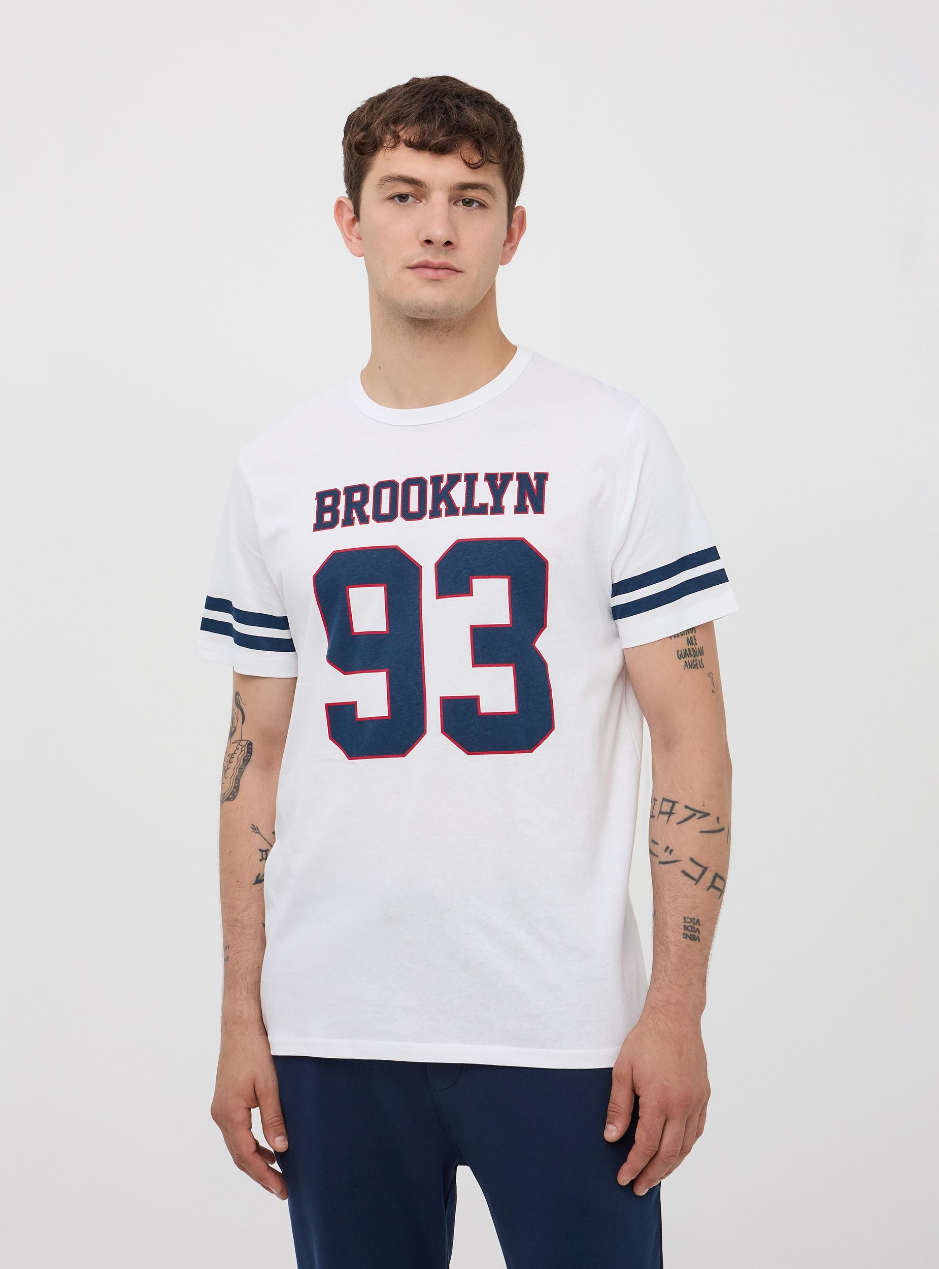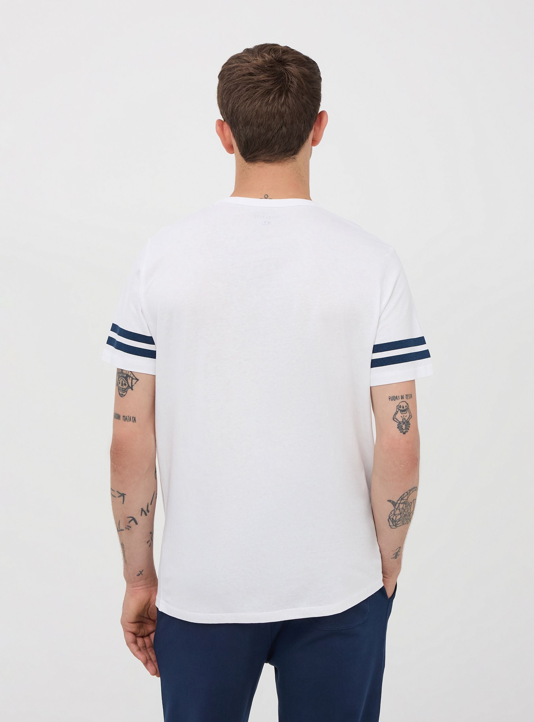 Pánská trička s kulatým výstřihem a krátkým rukávem s kontrastními pruhy. Tisk s nápisem a číslem na přední straně. Regular fit.Detaily