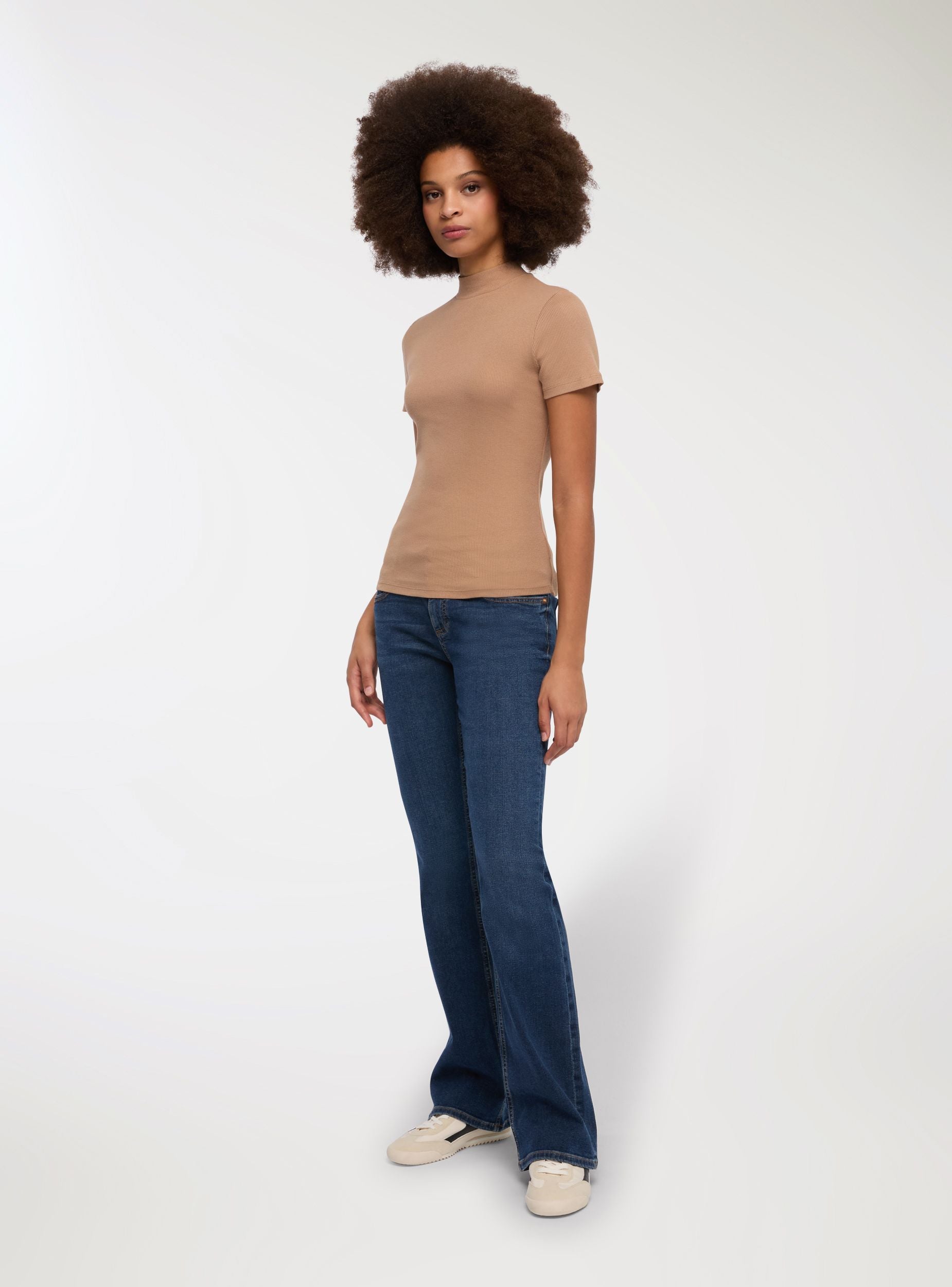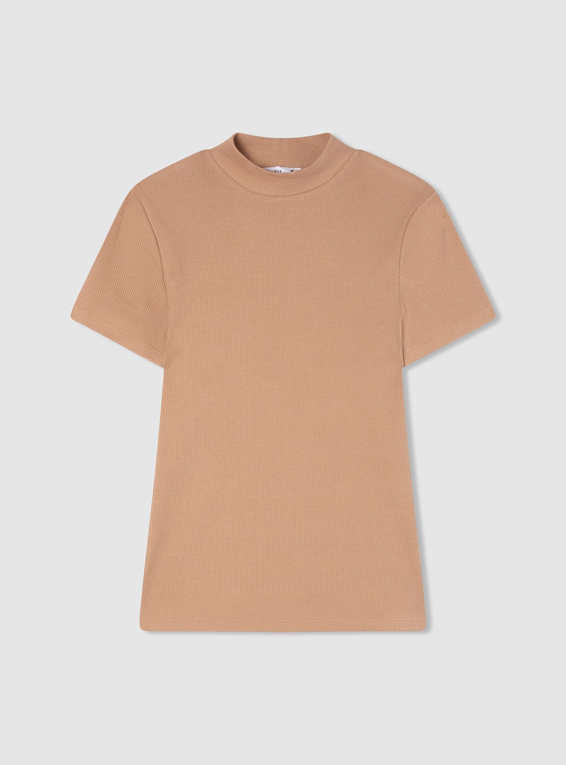Dámské tričko s vysokým límcem z ribu, základní a univerzální. Nezbytné a vždy aktuální, toto tričko je základní kousek, který nesmí chybět ve vašem šatníku. Vyrobeno z jednobarevné tkaniny, má krátké rukávy a slim fit střih, který diskrétně zvýrazňuje siluetu. Vysoký límec dodává sofistikovaný nádech, ideální pro vytváření minimalistických, čistých a trendy outfitů. Noste ho samostatně v nejvíce casual looku nebo pod blejzry, otevřenými košilemi či oversized svetry pro moderní a funkční vrstvení. Díky své univerzálnosti se snadno přizpůsobí každému ročnímu období a příležitosti, což ho činí nezbytným pro ty, kteří mají rádi jednoduchý, ale pečlivý styl.