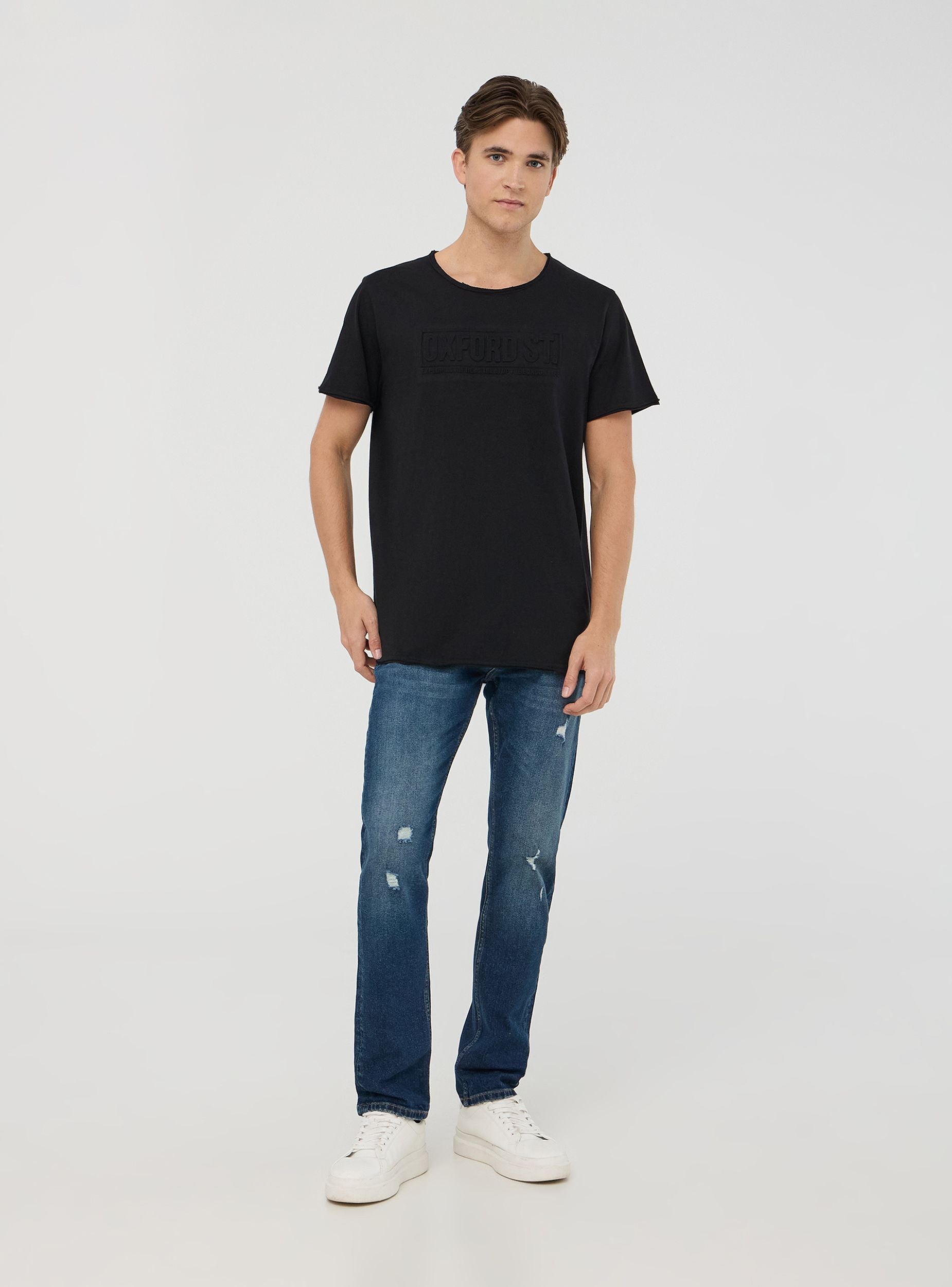 Pánská trička s krátkým rukávem a kulatým výstřihem, obohacená o 3D nápis s reliéfním efektem pro moderní a výrazný vzhled. Ostrý střih zakončení dodává ležérní a uvolněný nádech, ideální pro městské a dynamické outfity. Perfektní k džínům nebo bermudám na volný čas, zaručuje všestranný a módní styl, vhodný jak na den, tak na večer.Detaily
